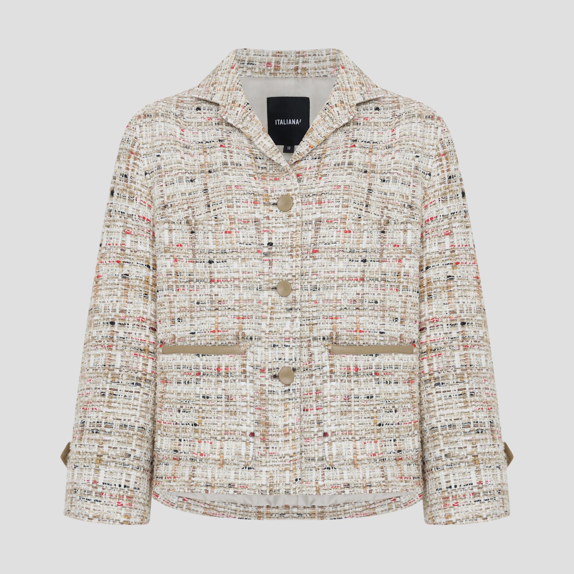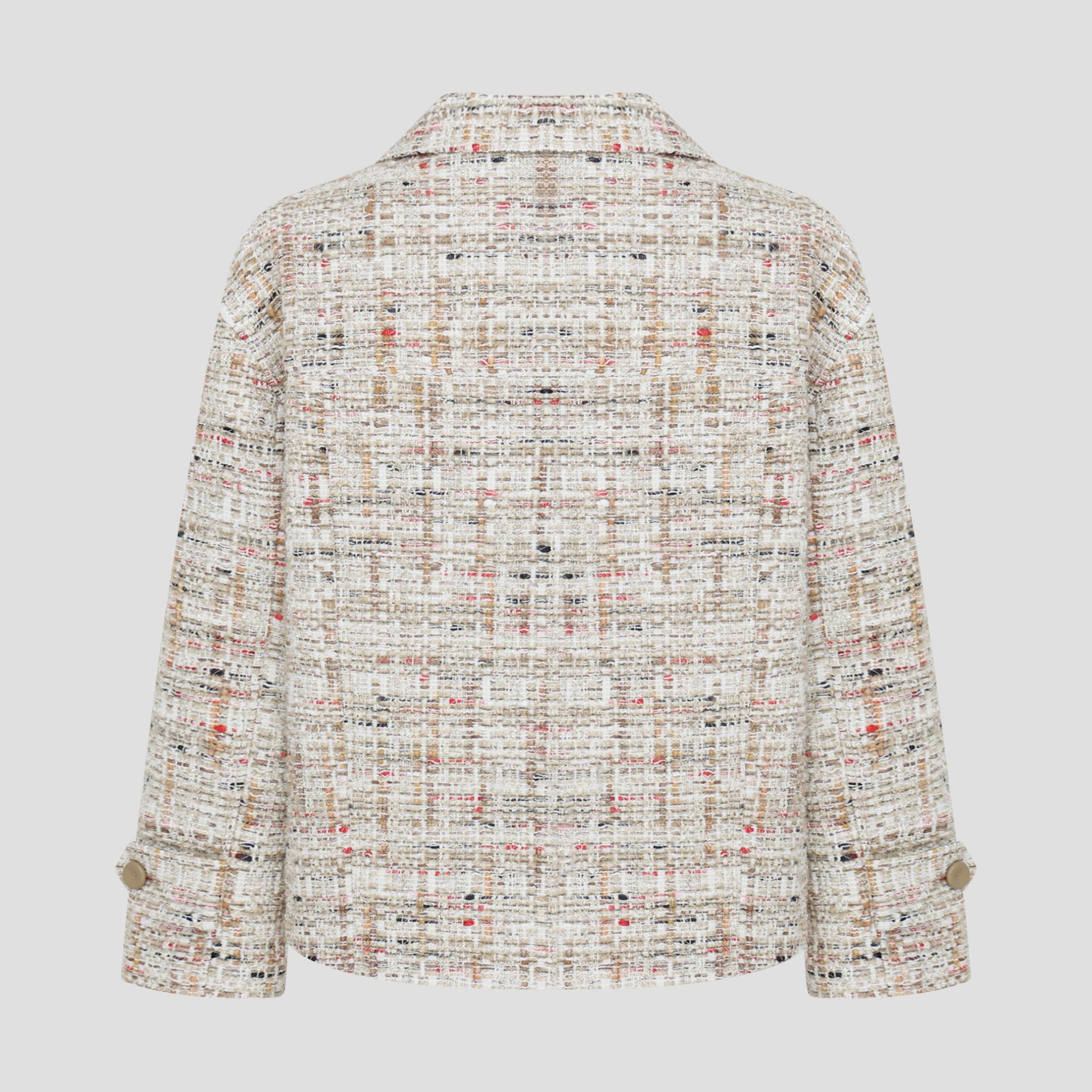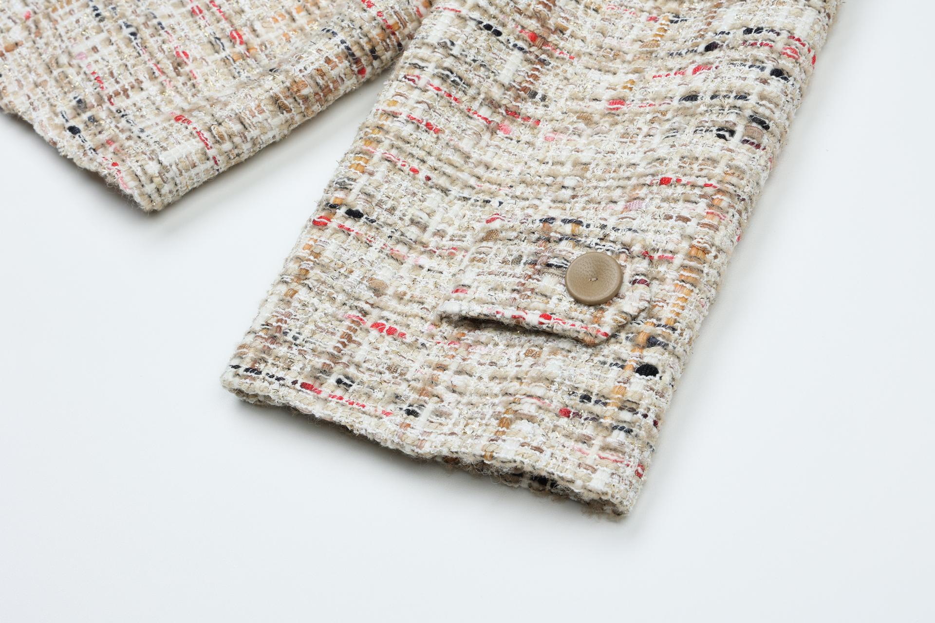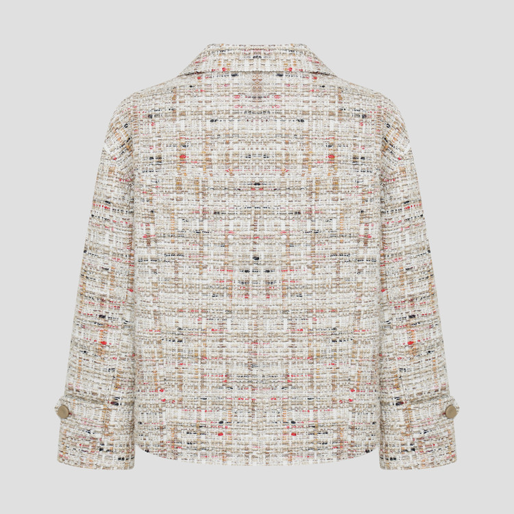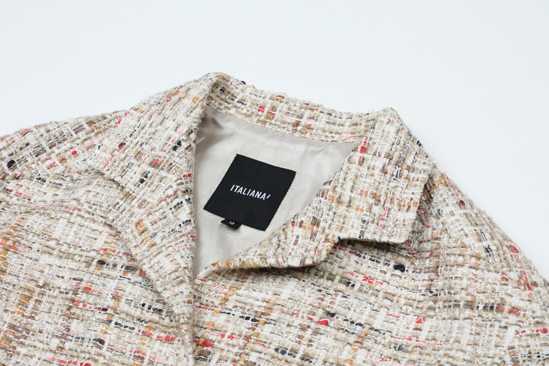 은은하게 반짝이는 트위드 원단을 사용한 자켓입니다.