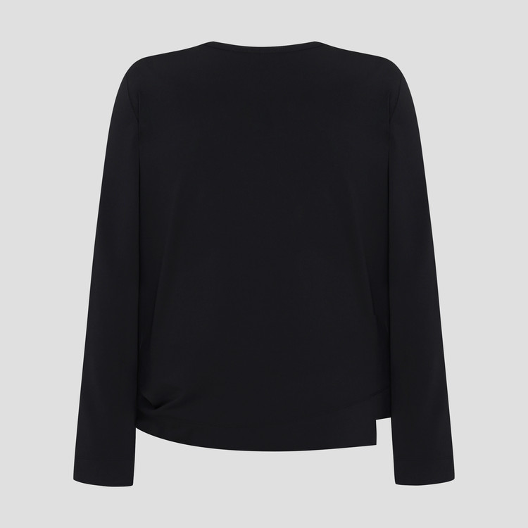 허리 옆선 라인 한쪽이 자연스러운 드레이핑으로 체형 커버를 도와주는 티셔츠입니다.