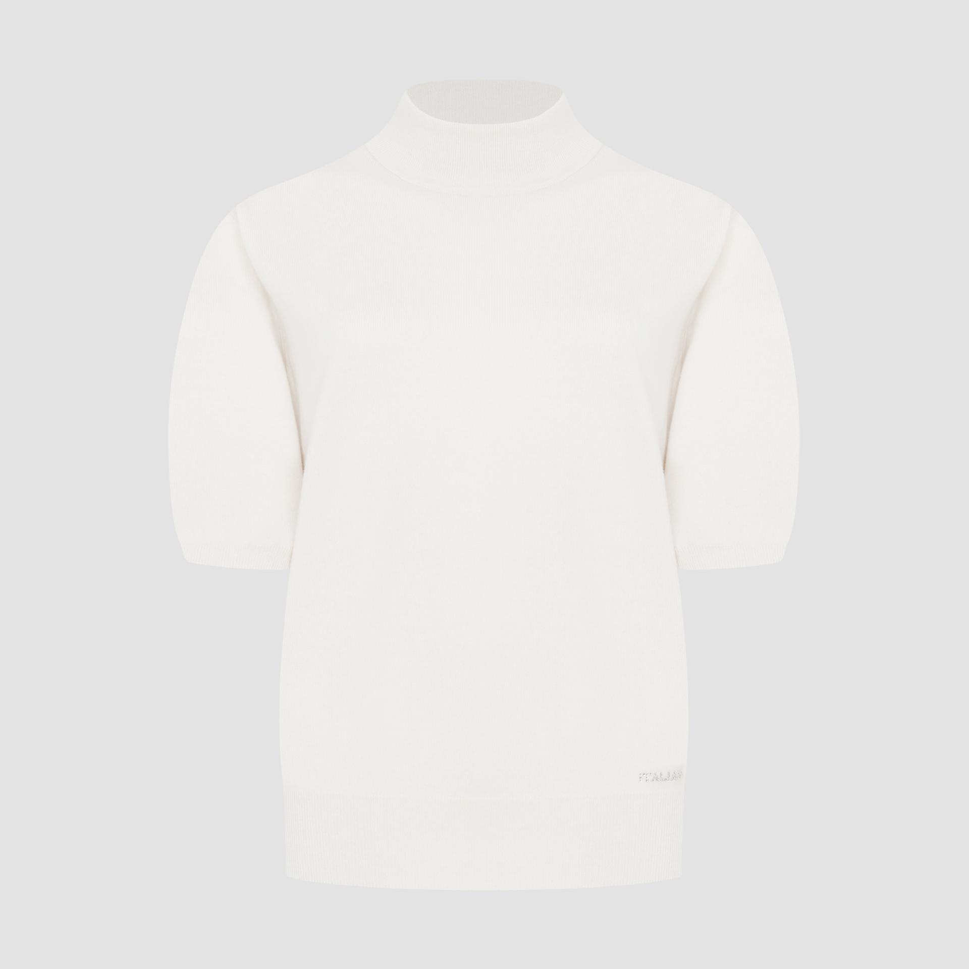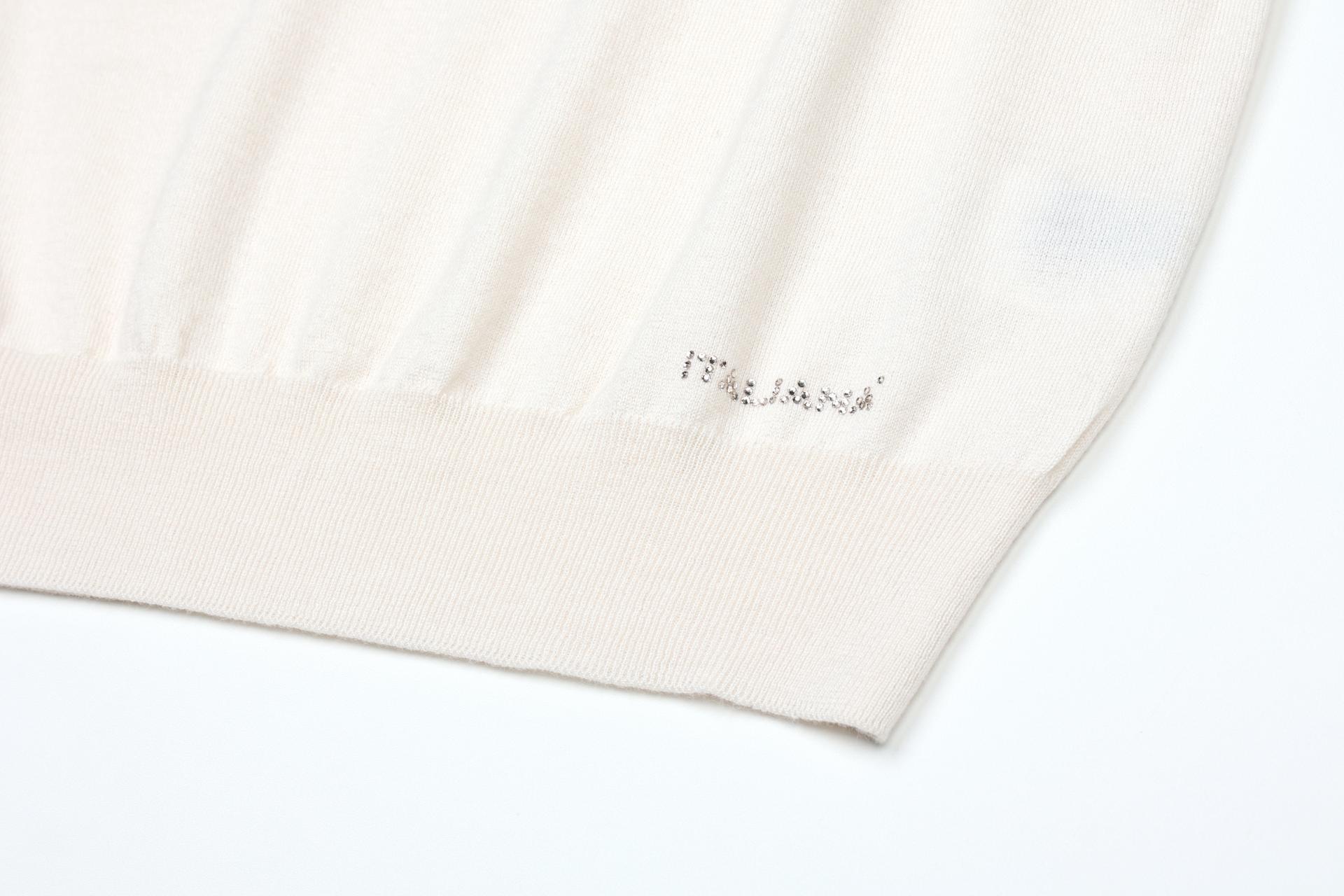 바디 라인을 따라 깔끔하게 핏되는 실루엣의 니트 탑입니다.