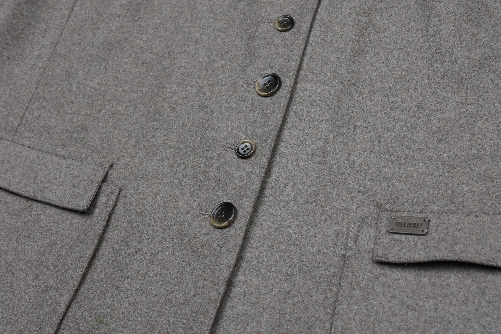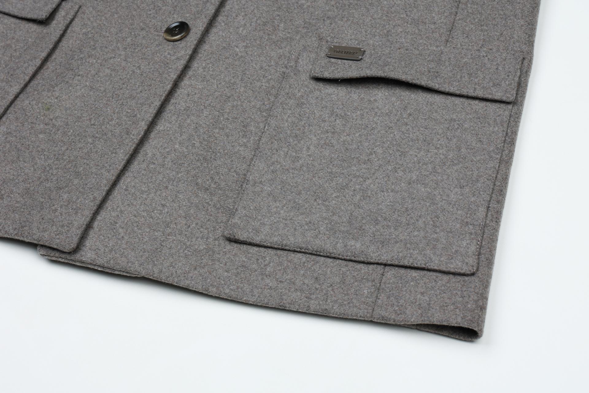 입체적인 포켓과 서로 다른 크기의 단추를 번갈아 달아 디테일을 살렸으며