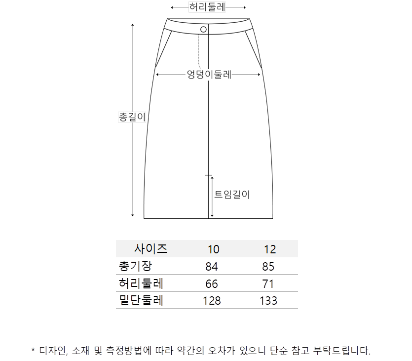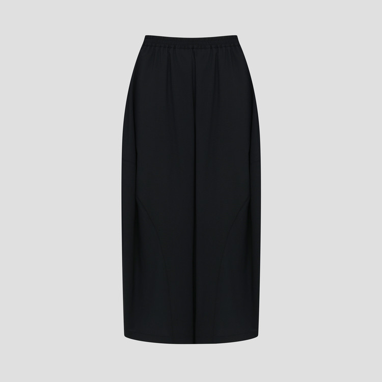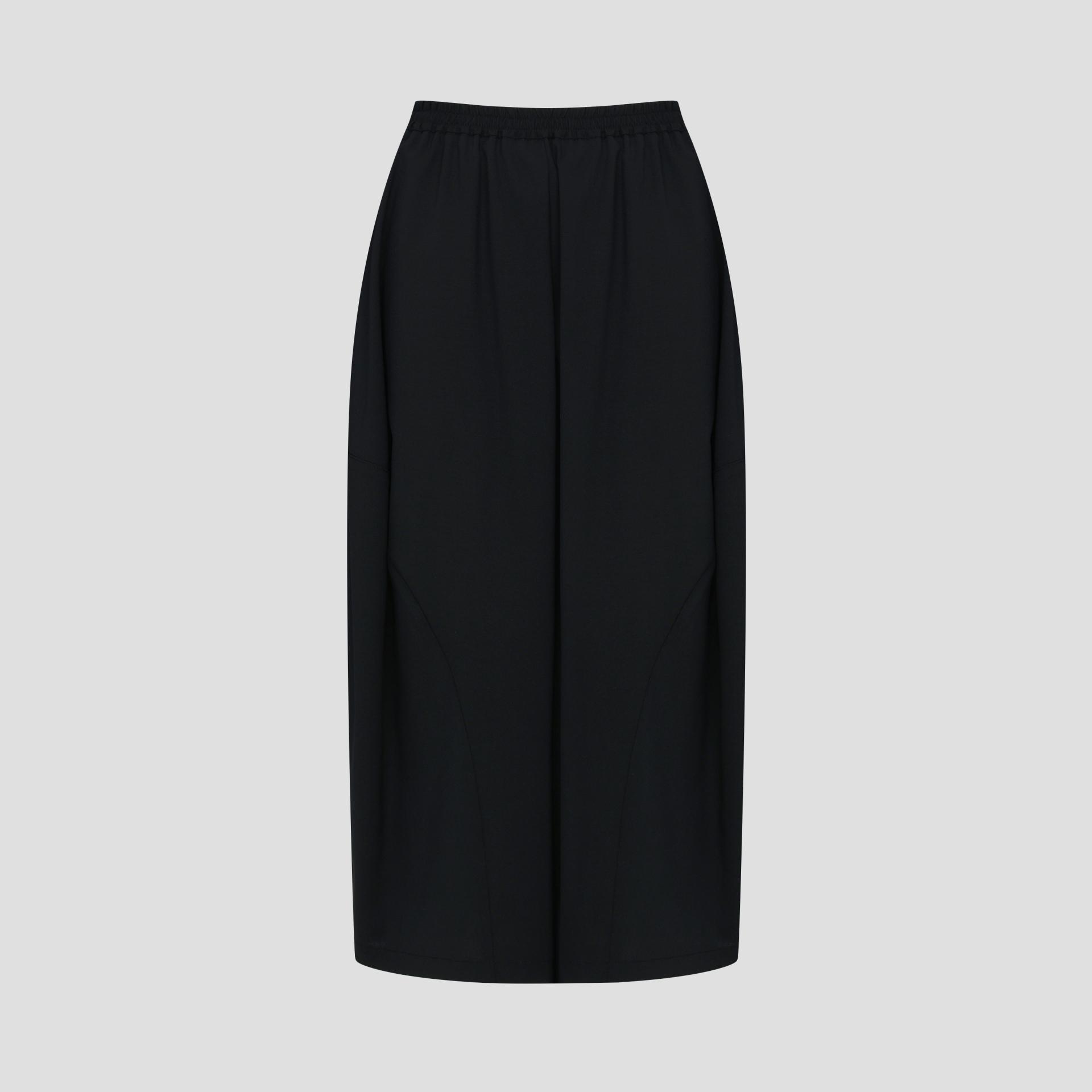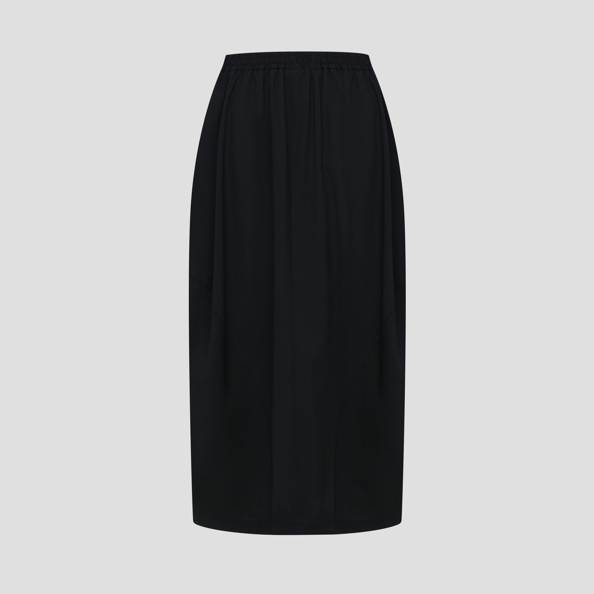 아래로 실루엣이 살짝 좁아지며 둥근 항아리 형태의 곡선미를 이루는 훌 스커트 입니다.