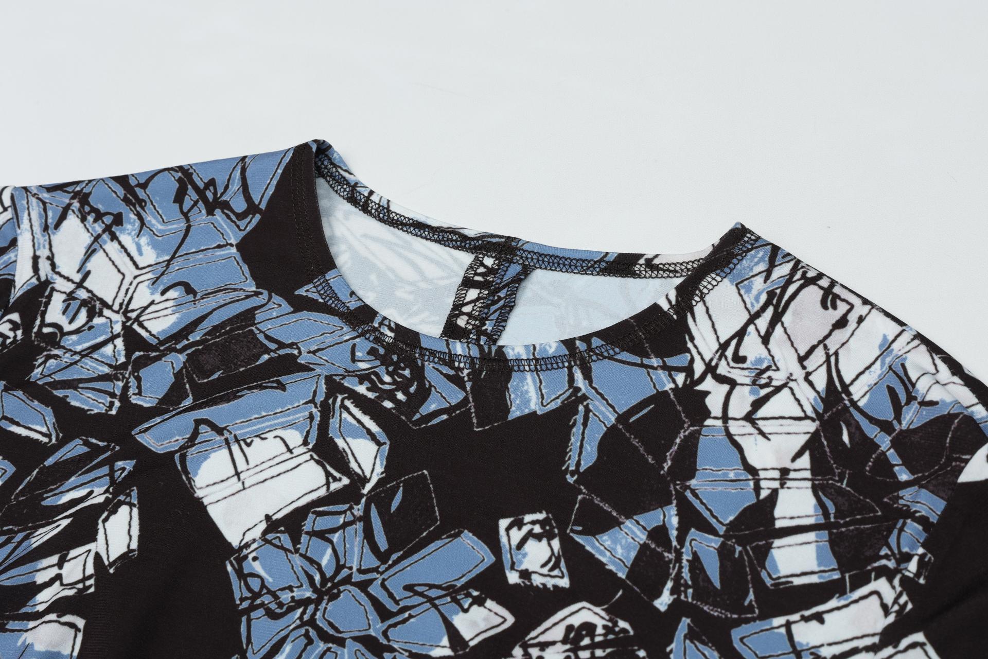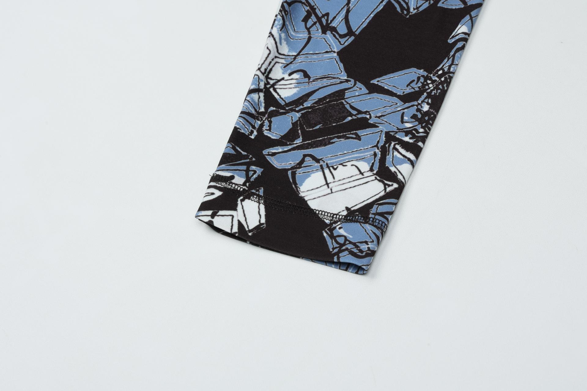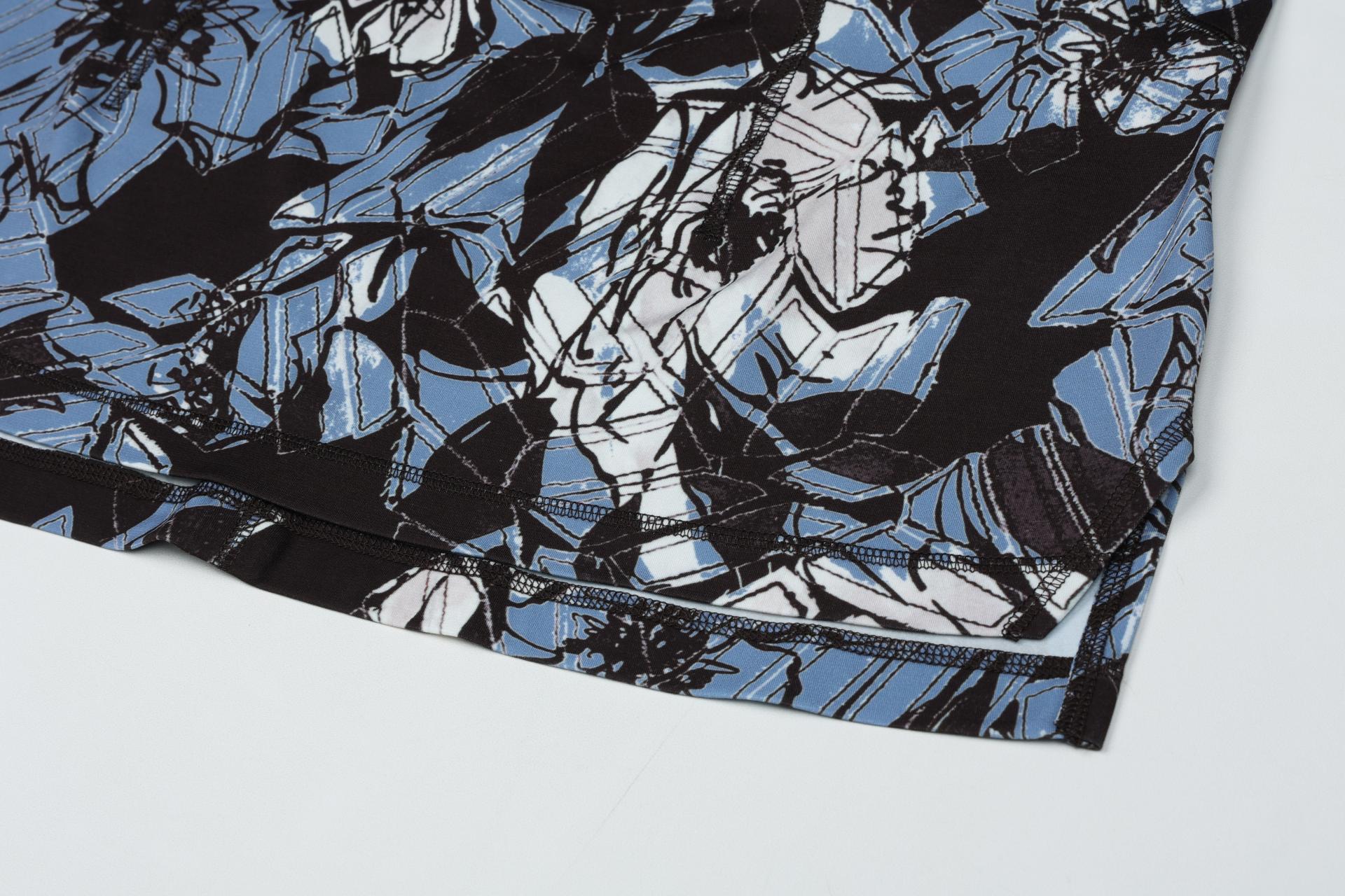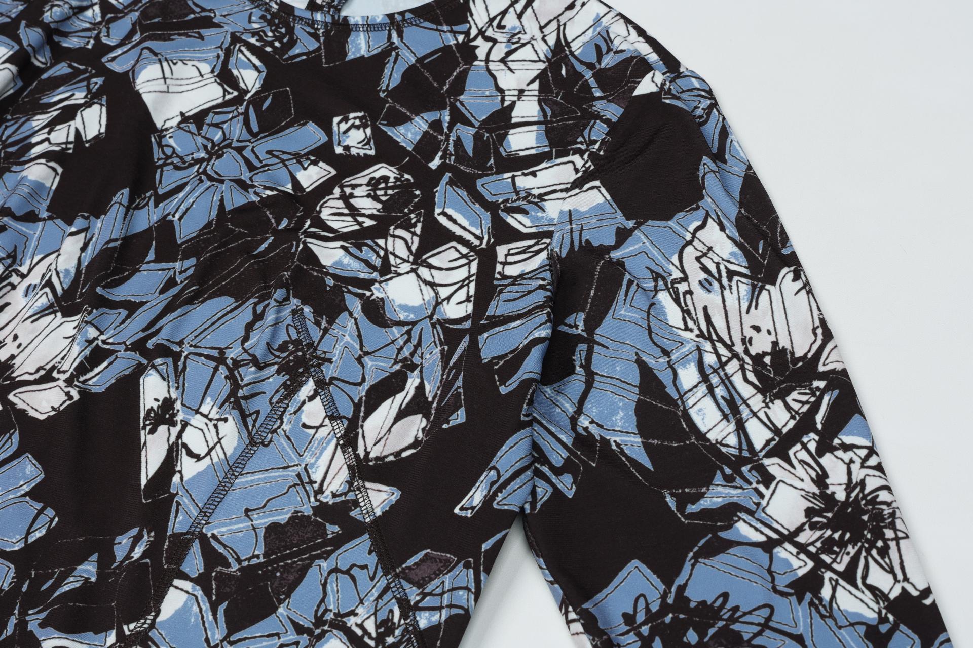 보온성있는 백기모된 폴리스판 져지바닥의 추상적인 변형 플라워 패턴의 프린트물 티셔츠입니다.