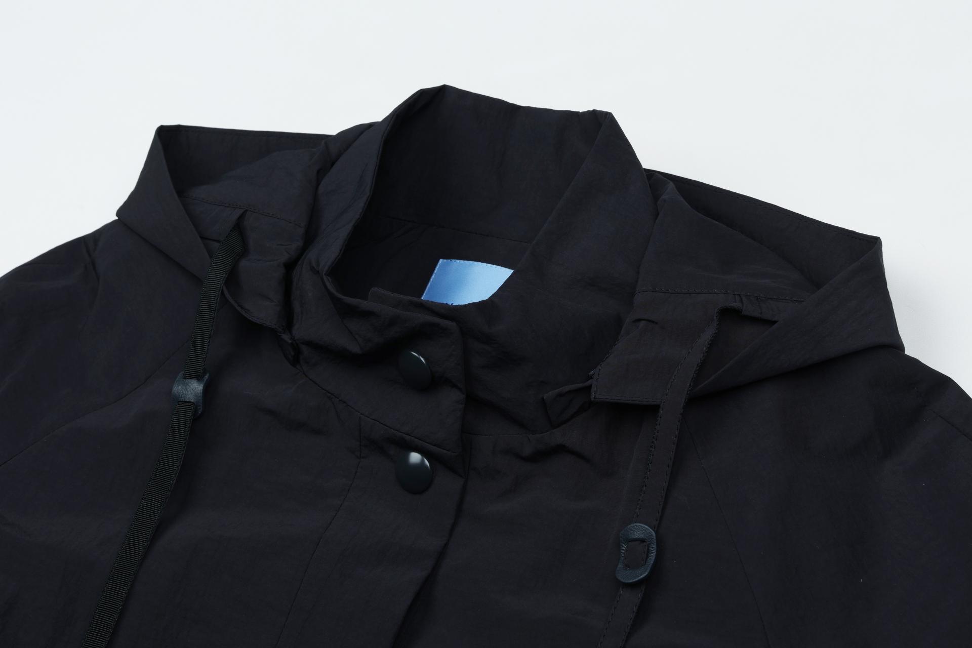 나일론 혼방의 바스락한 터치감이 캐주얼한 느낌을 더해주며 탈착 가능한 후드가 적용되어있습니다.
