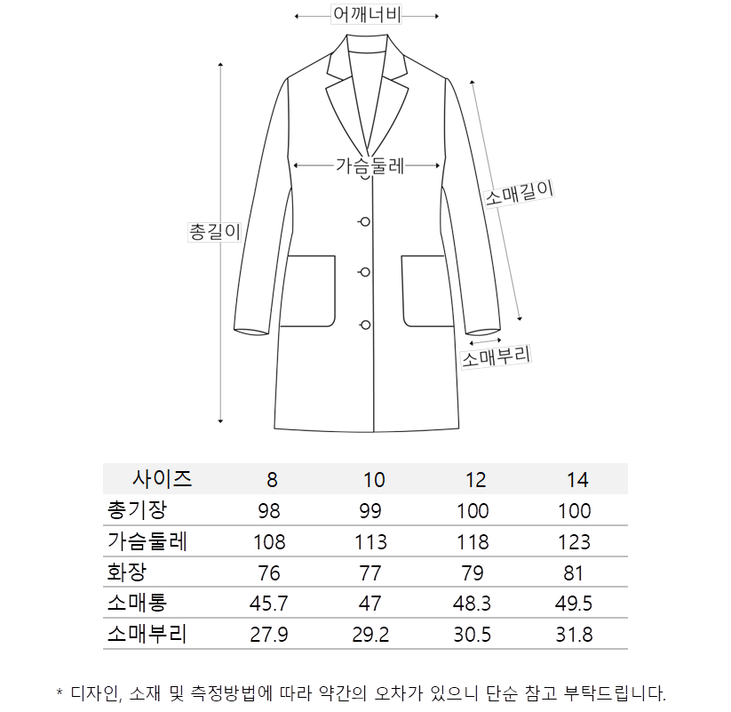 세탁 잘못으로 인한 변형에 대해서는 보상의 책임을 지지 않으며,