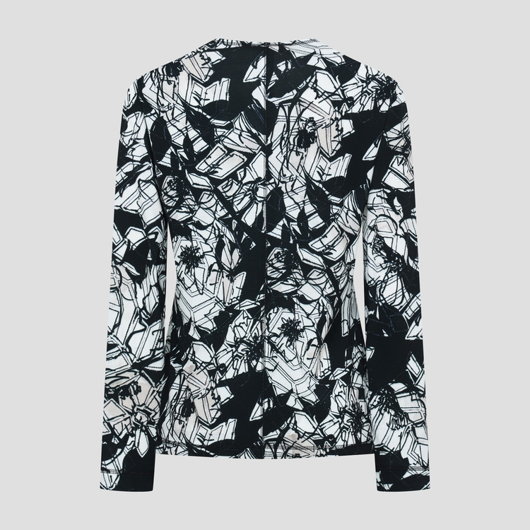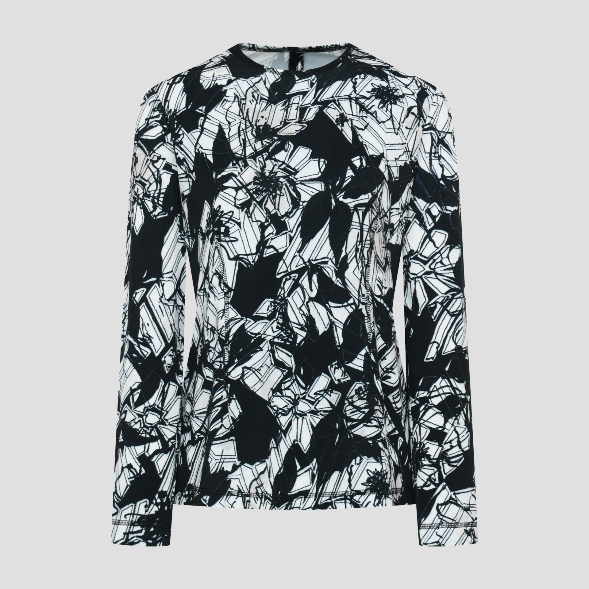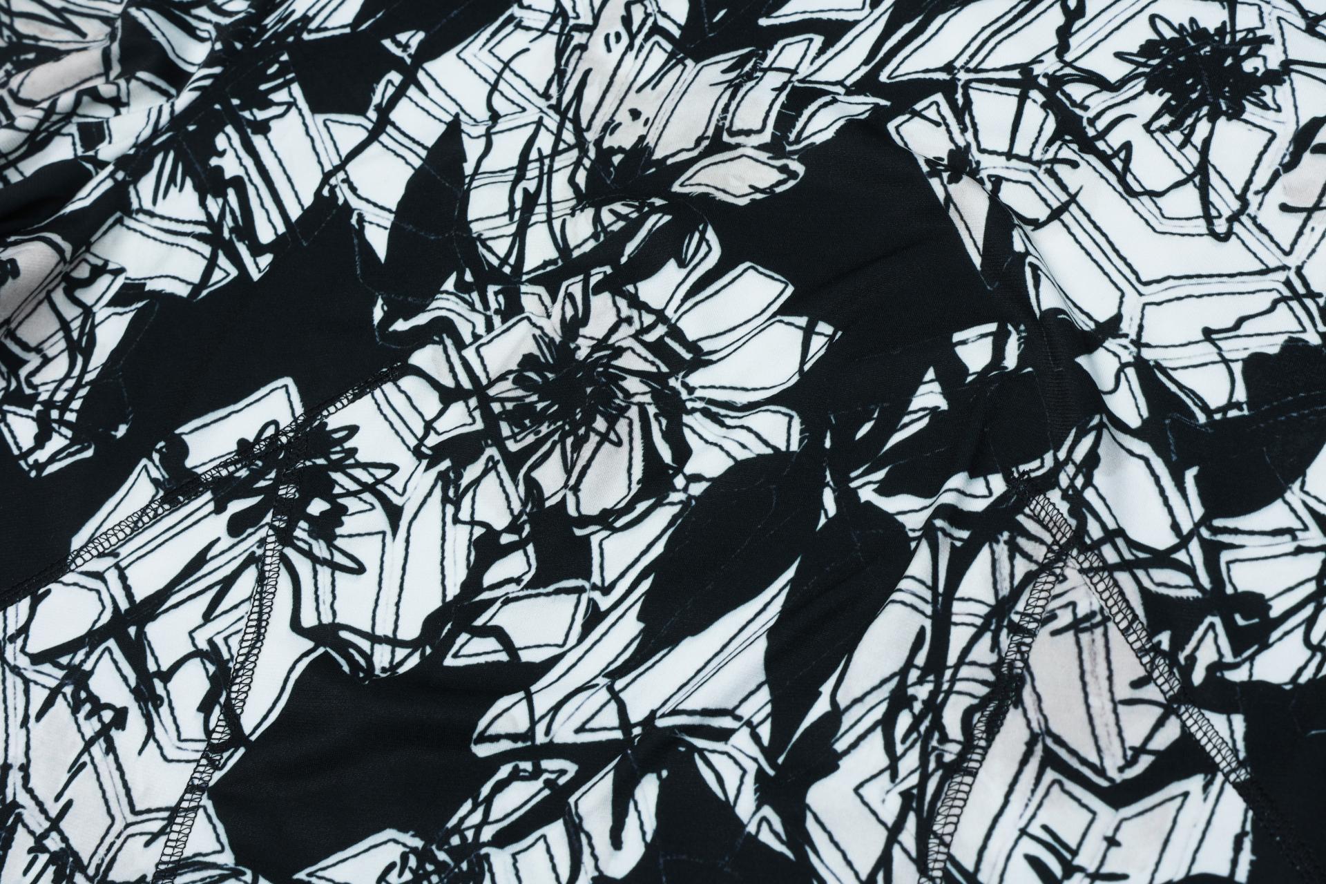 보온성있는 백기모된 폴리스판 져지바닥의 추상적인 변형 플라워 패턴의 프린트물 티셔츠입니다.
