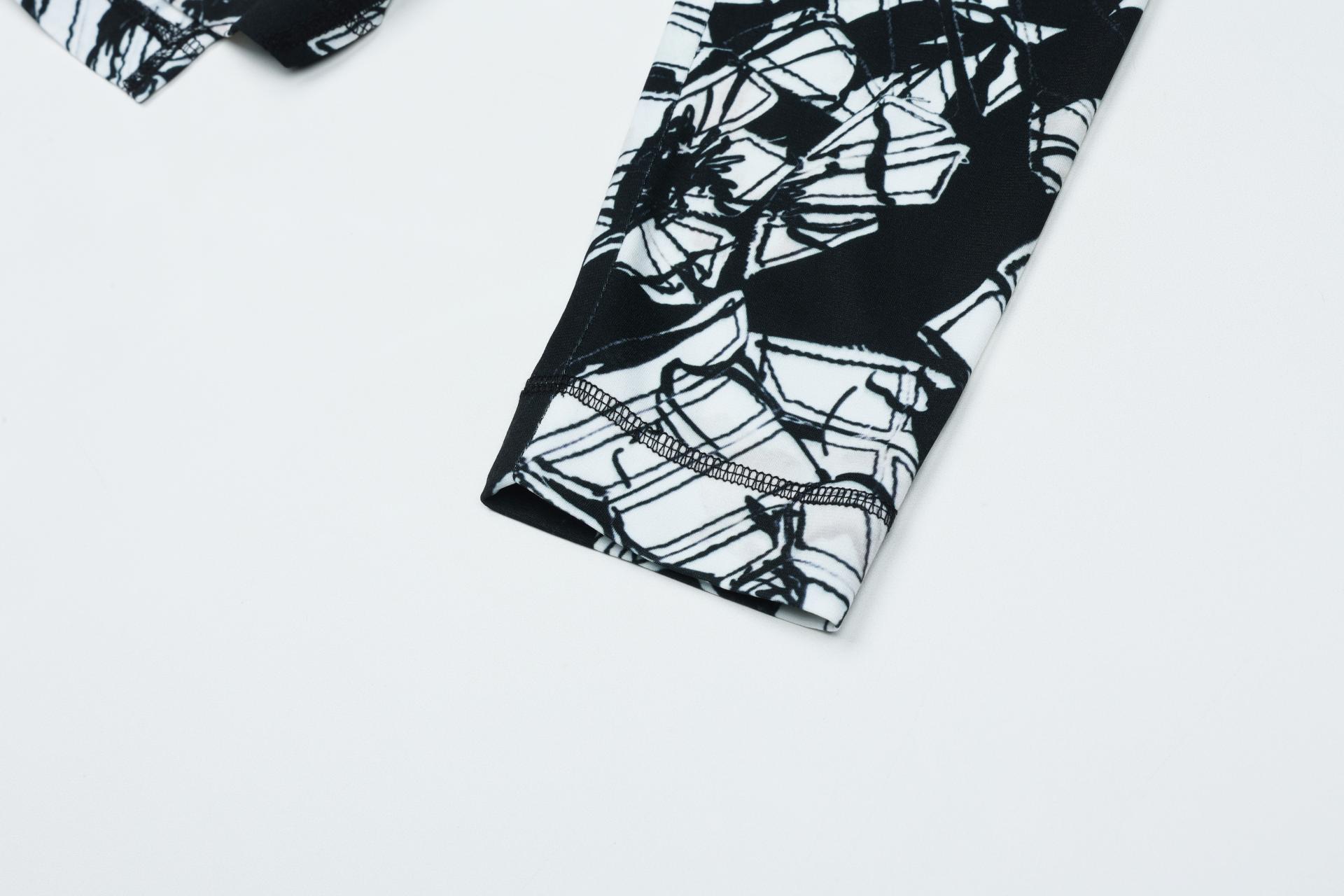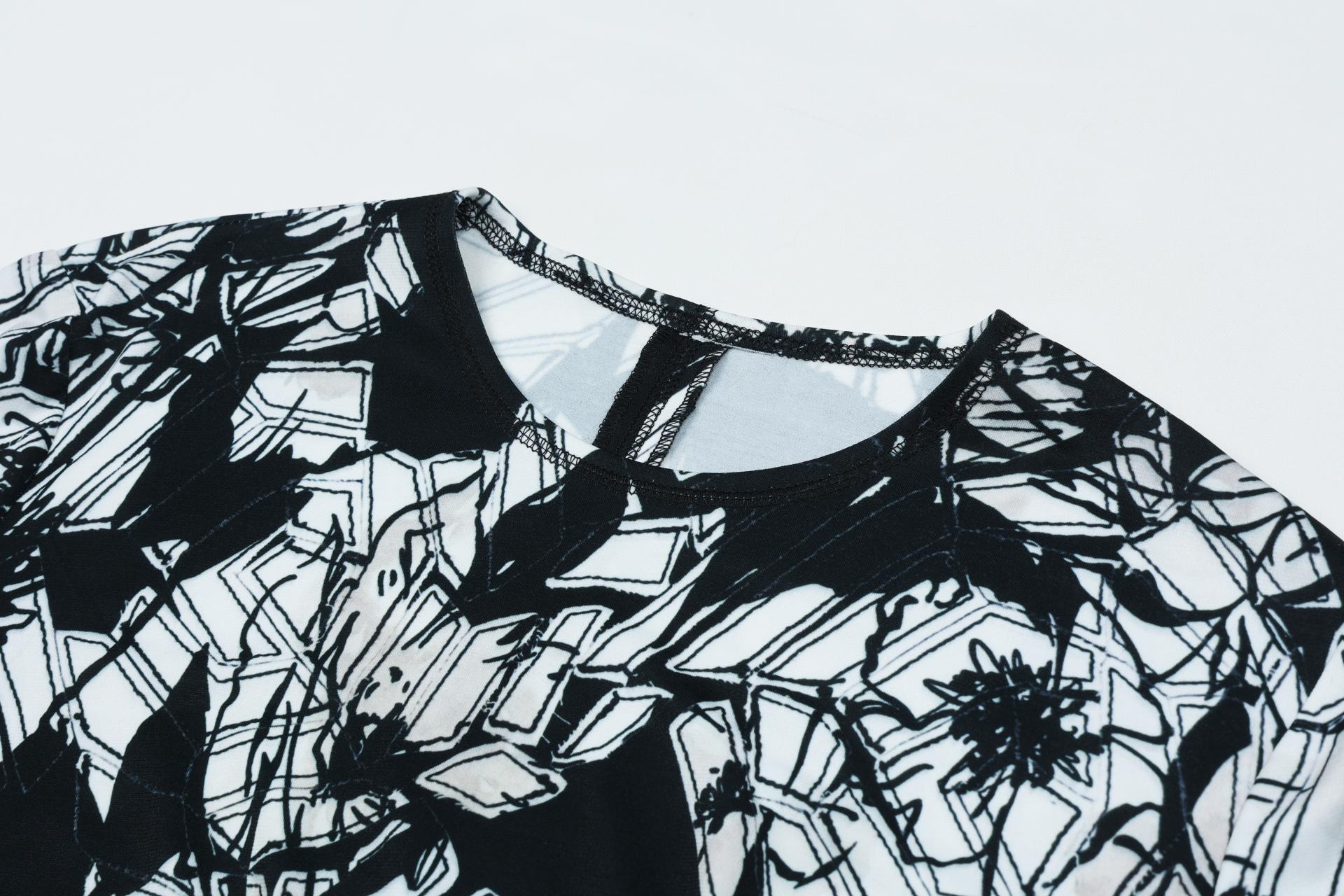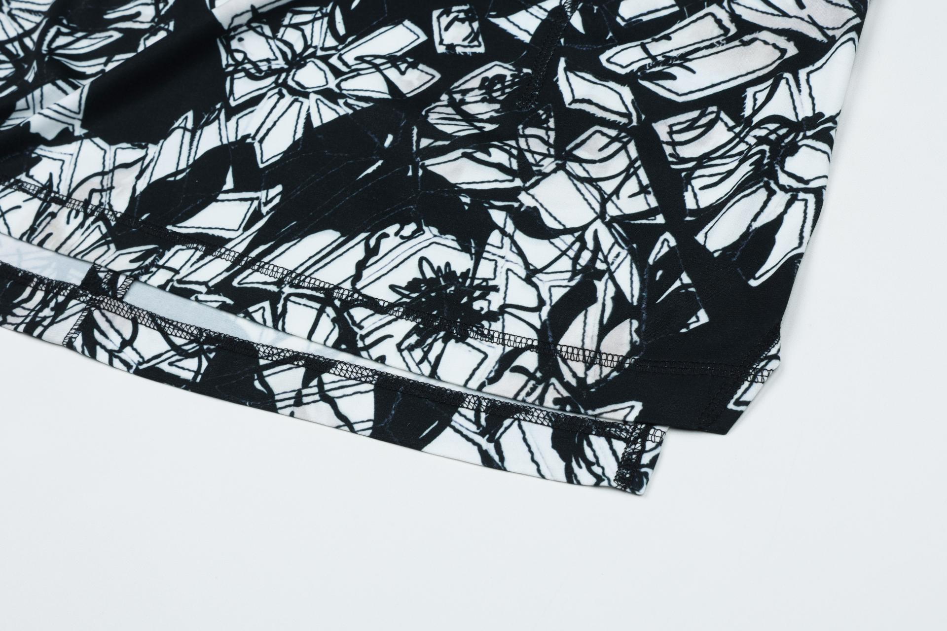 보온성있는 백기모된 폴리스판 져지바닥의 추상적인 변형 플라워 패턴의 프린트물 티셔츠입니다.