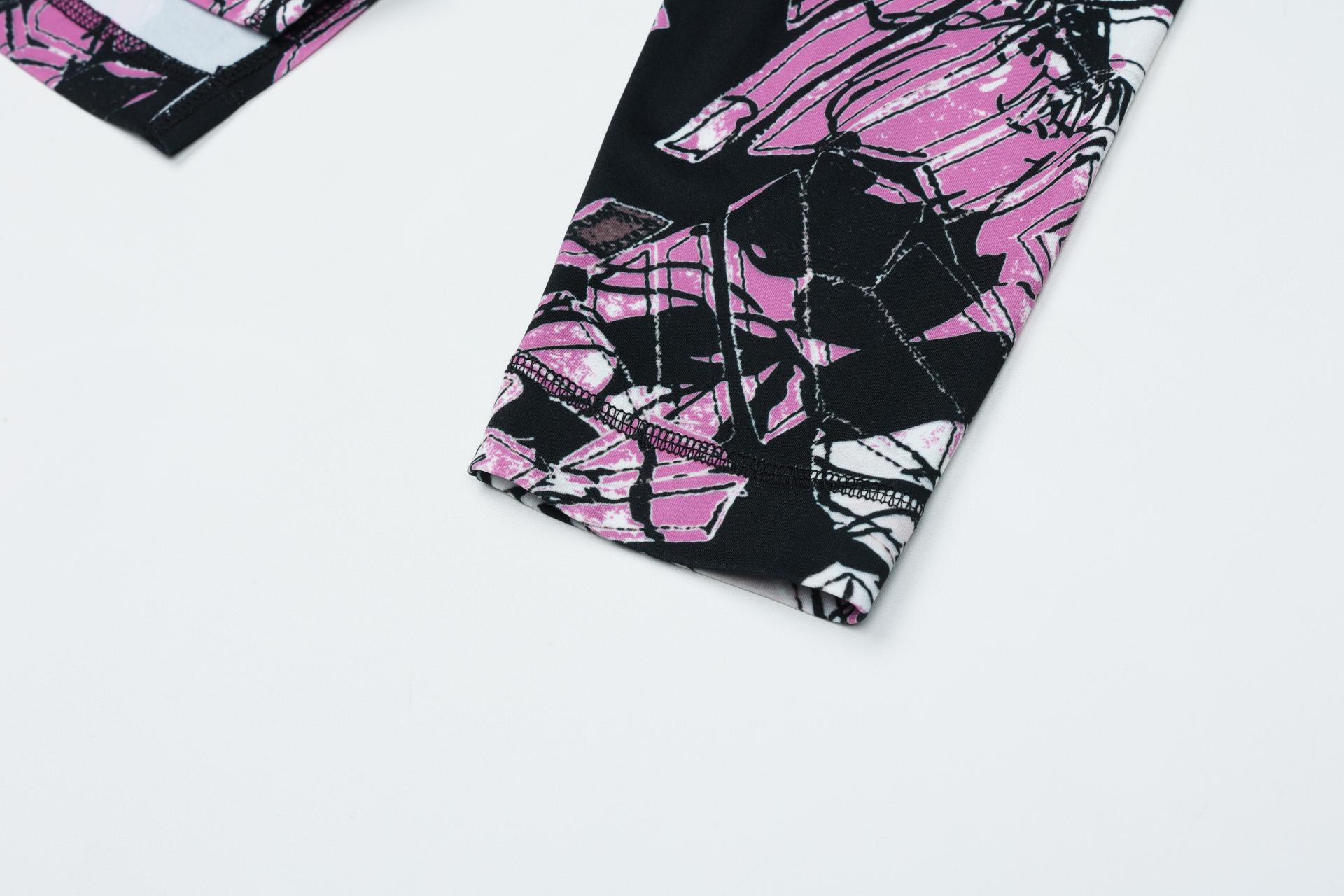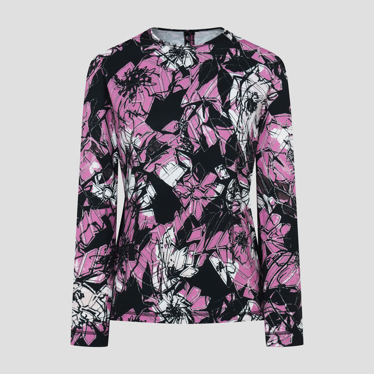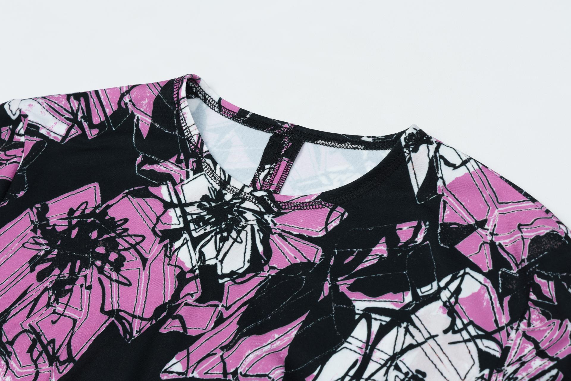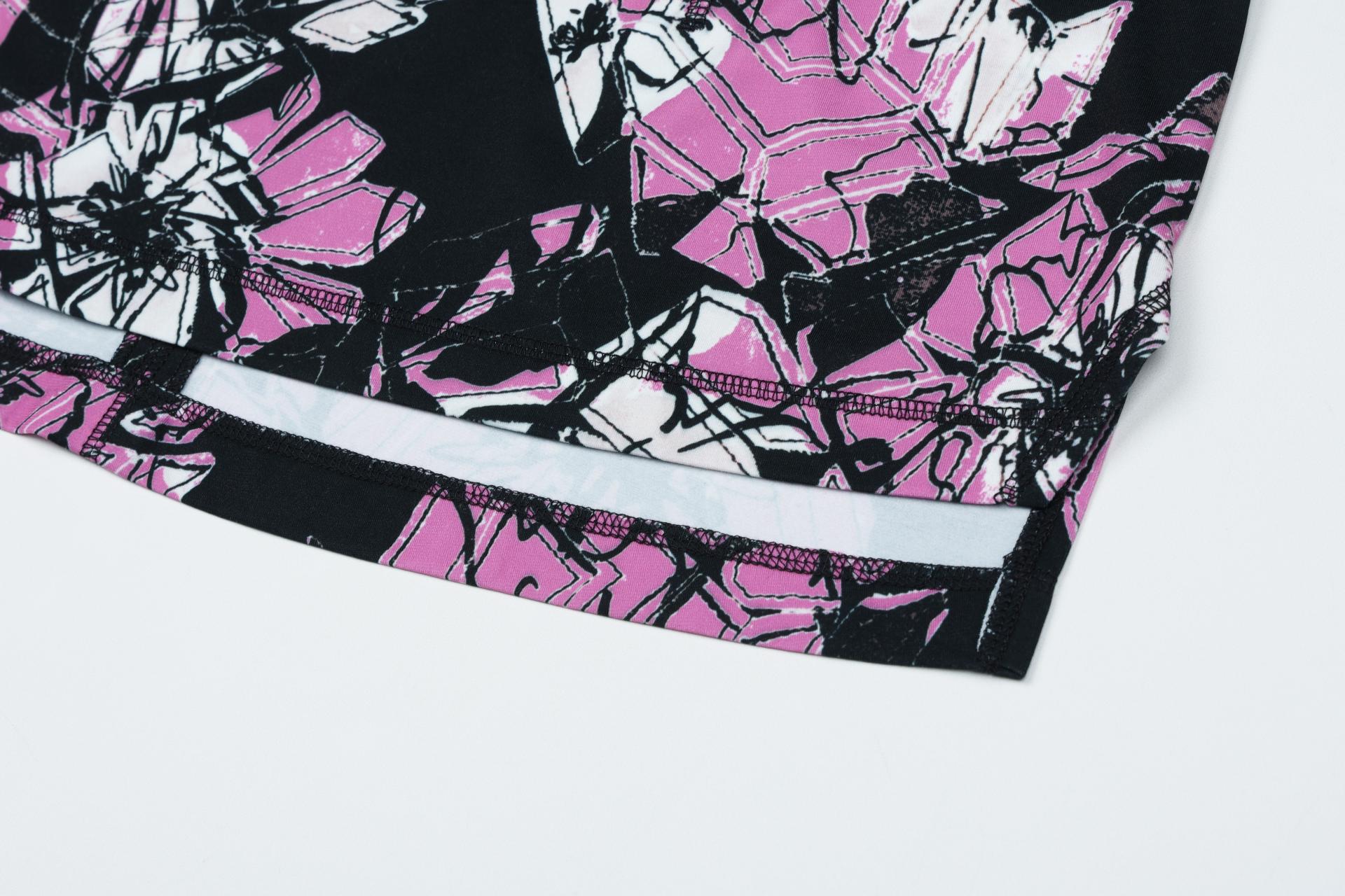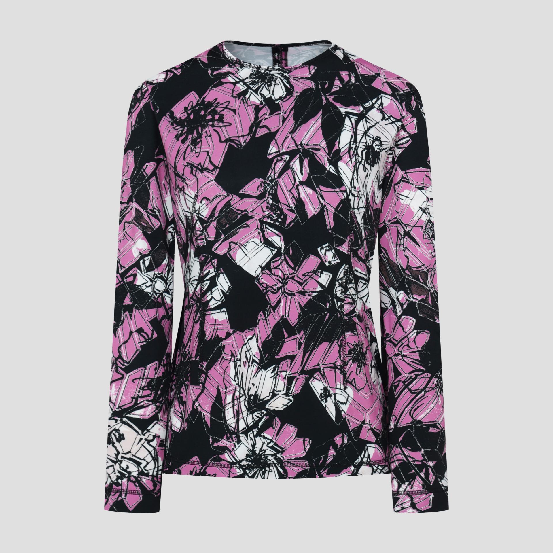 보온성있는 백기모된 폴리스판 져지바닥의 추상적인 변형 플라워 패턴의 프린트물 티셔츠입니다.