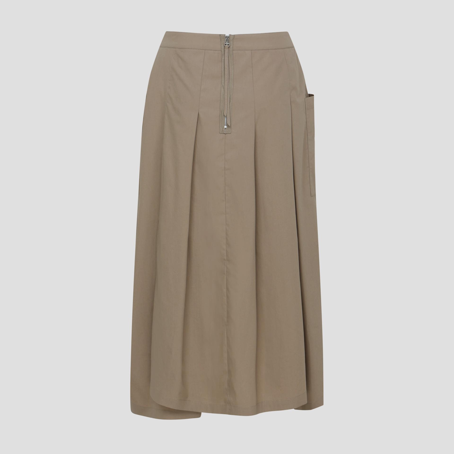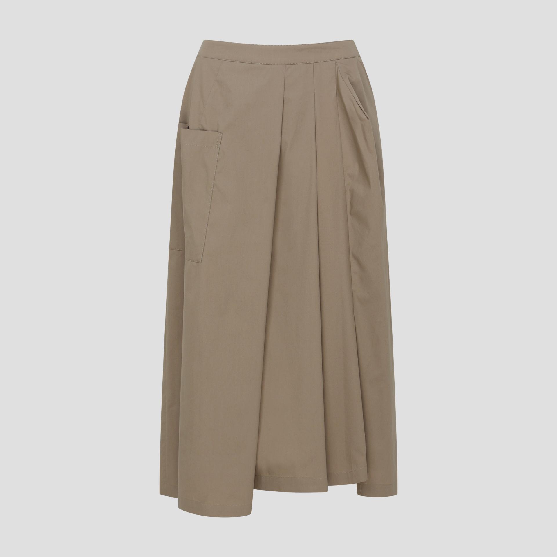 비대칭으로 디자인된 코튼 혼방의 스커트입니다.