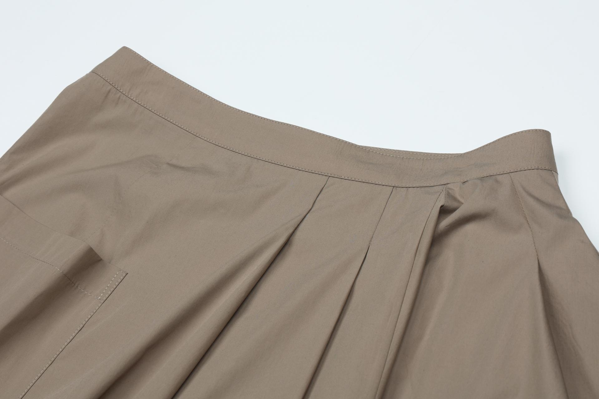 한쪽 옆선에는 빅 포켓으로 되어 있고, 반대편은 비대칭 라인으로 잡혀진 핀턱 디테일이