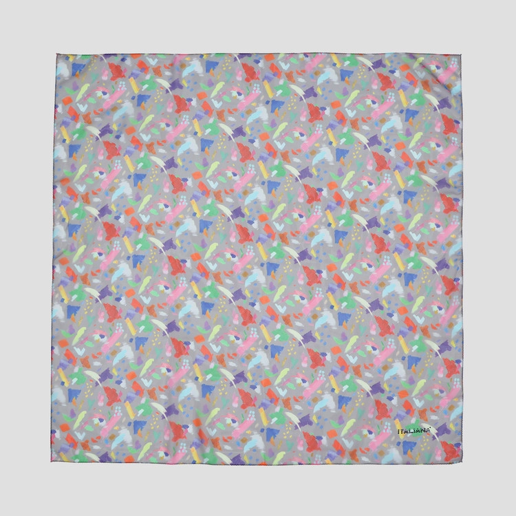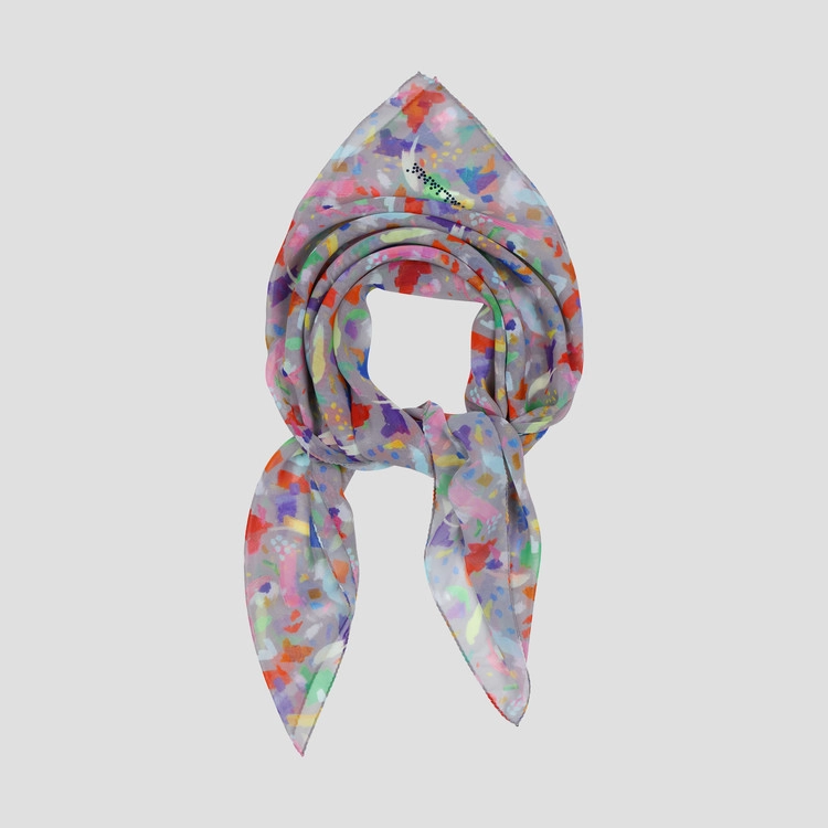 추상적인 아트 패턴의 스카프로, 비비드 컬러감을 이용해 스타일링에 포인트를 줄 수 있습니다.