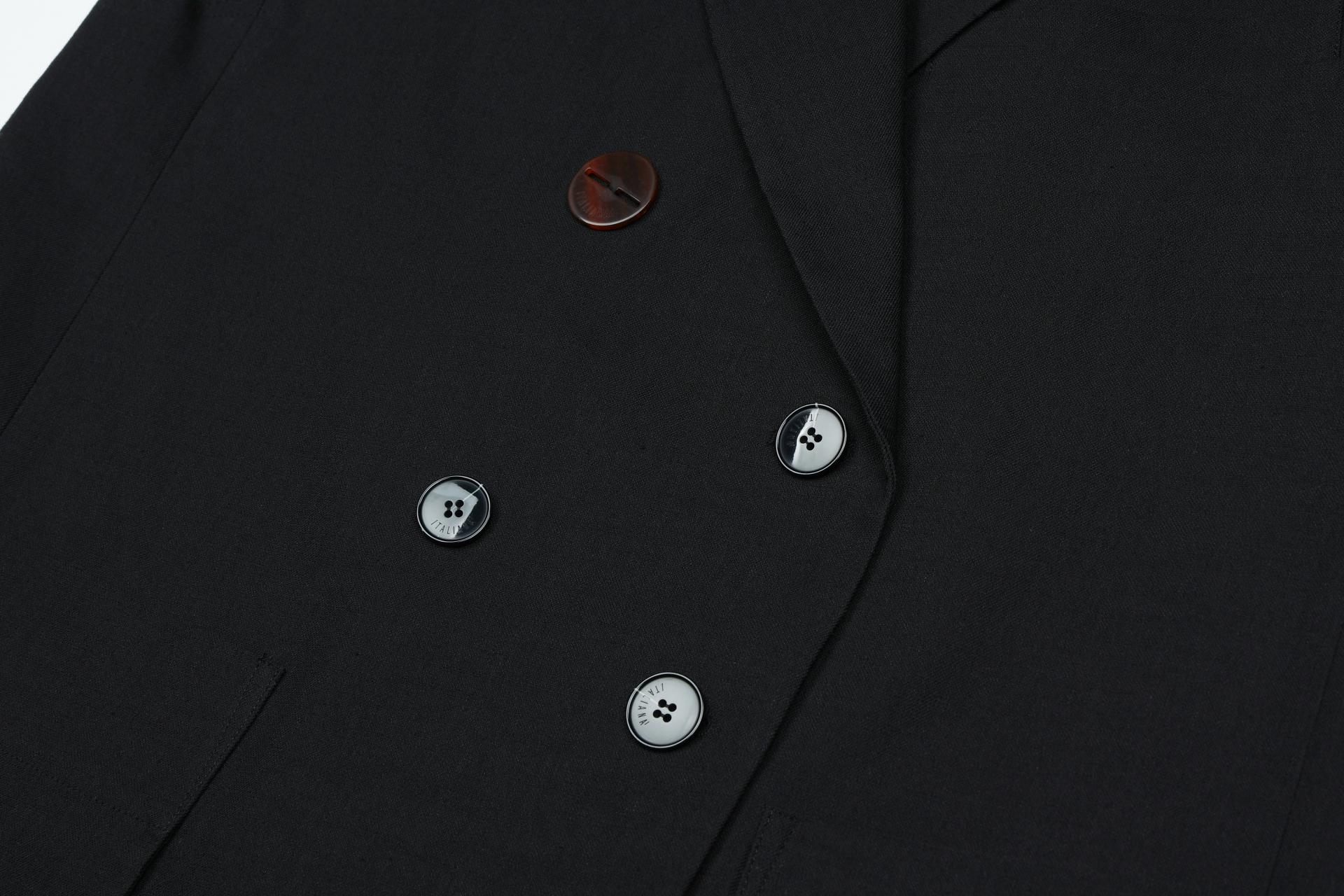 버튼을 열어 착용하시면 좀 더 캐주얼한 룩으로 코디 가능하며, 어깨에 얆은 어깨패드가 덧대어져 있어