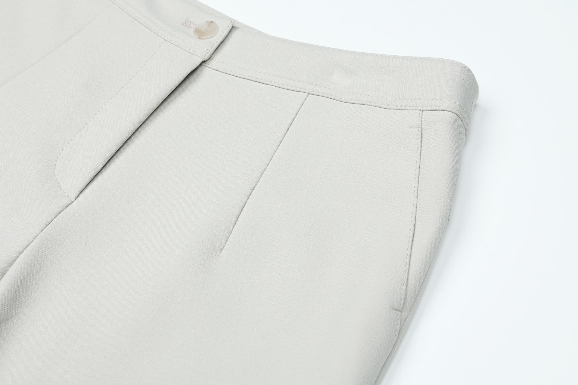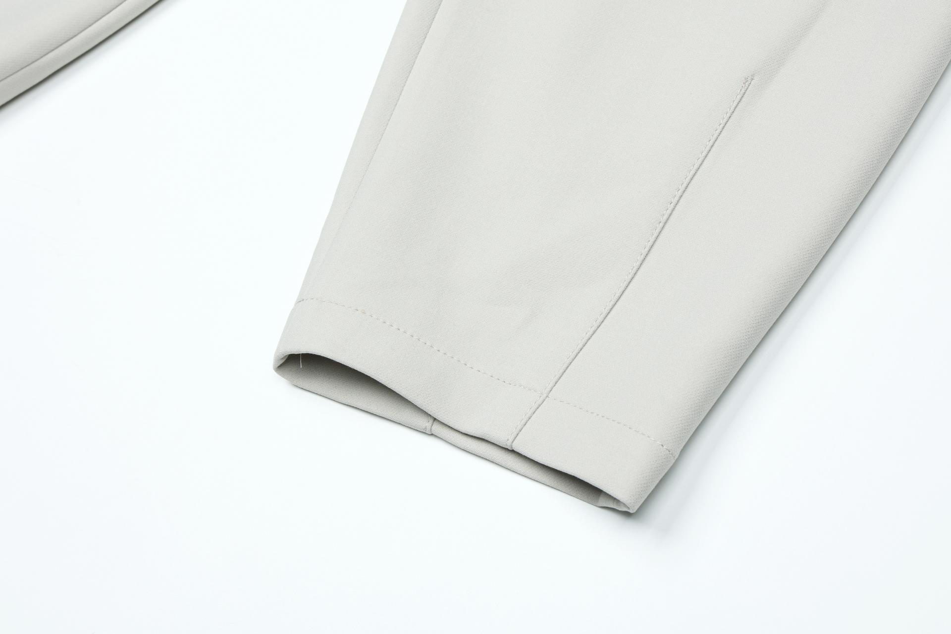 상단은 여유롭고 밑단에서 살짝 좁아지는 테이퍼드 실루엣이며 전체적으로 두꺼운 스티치로