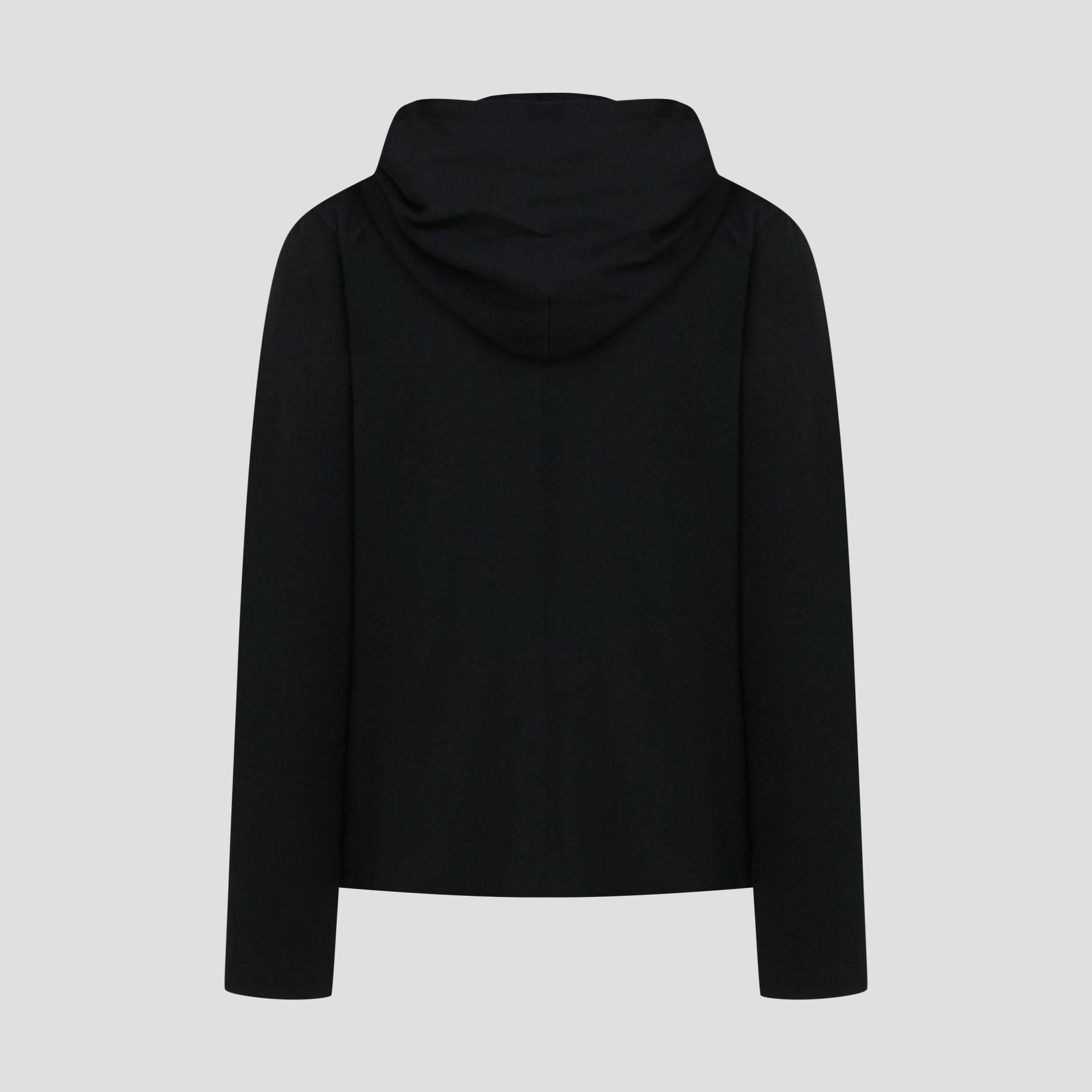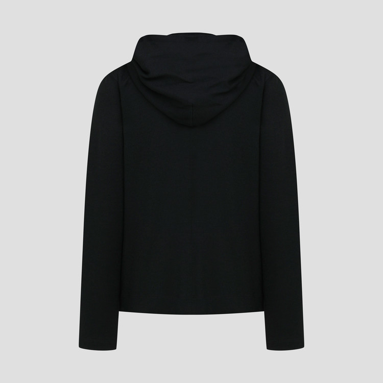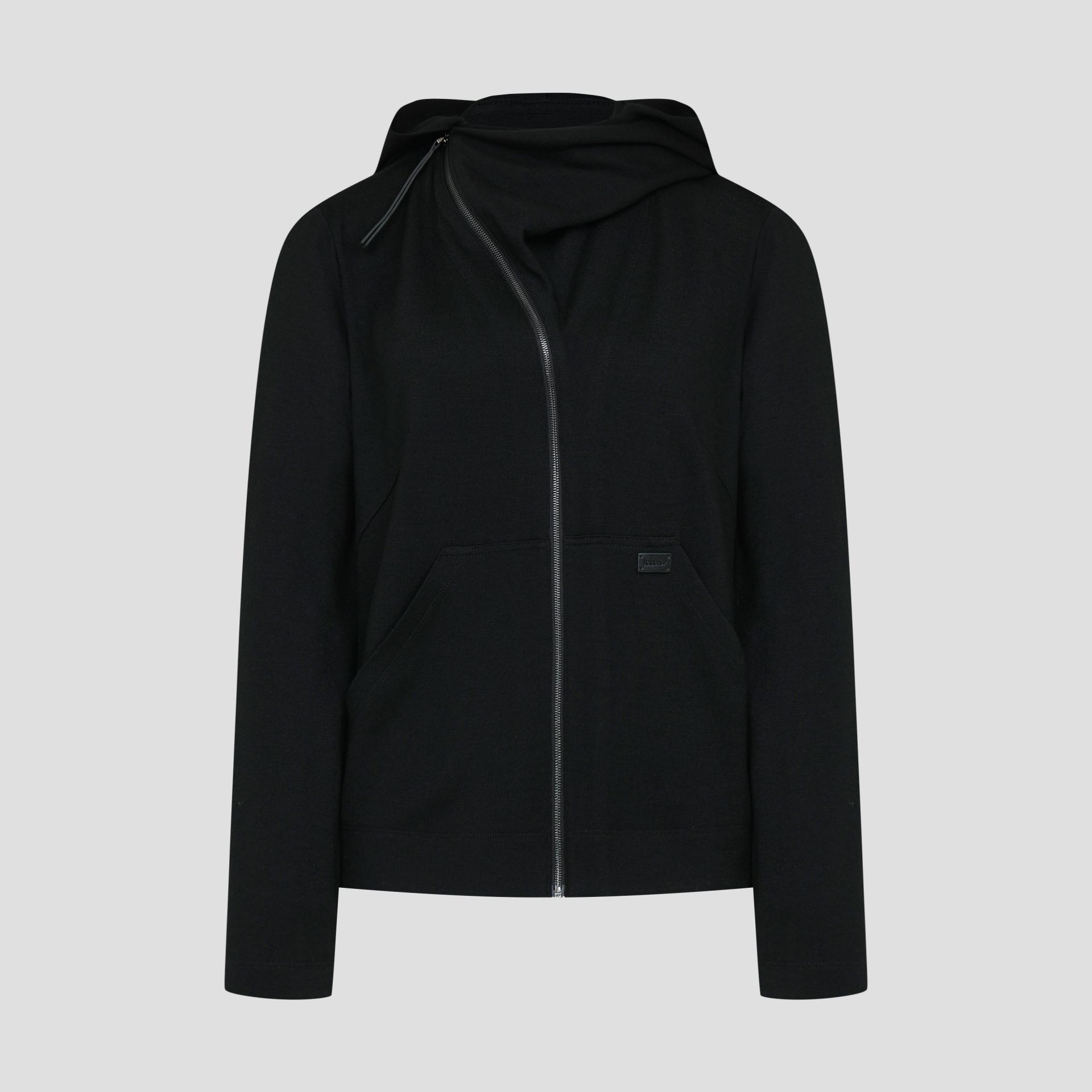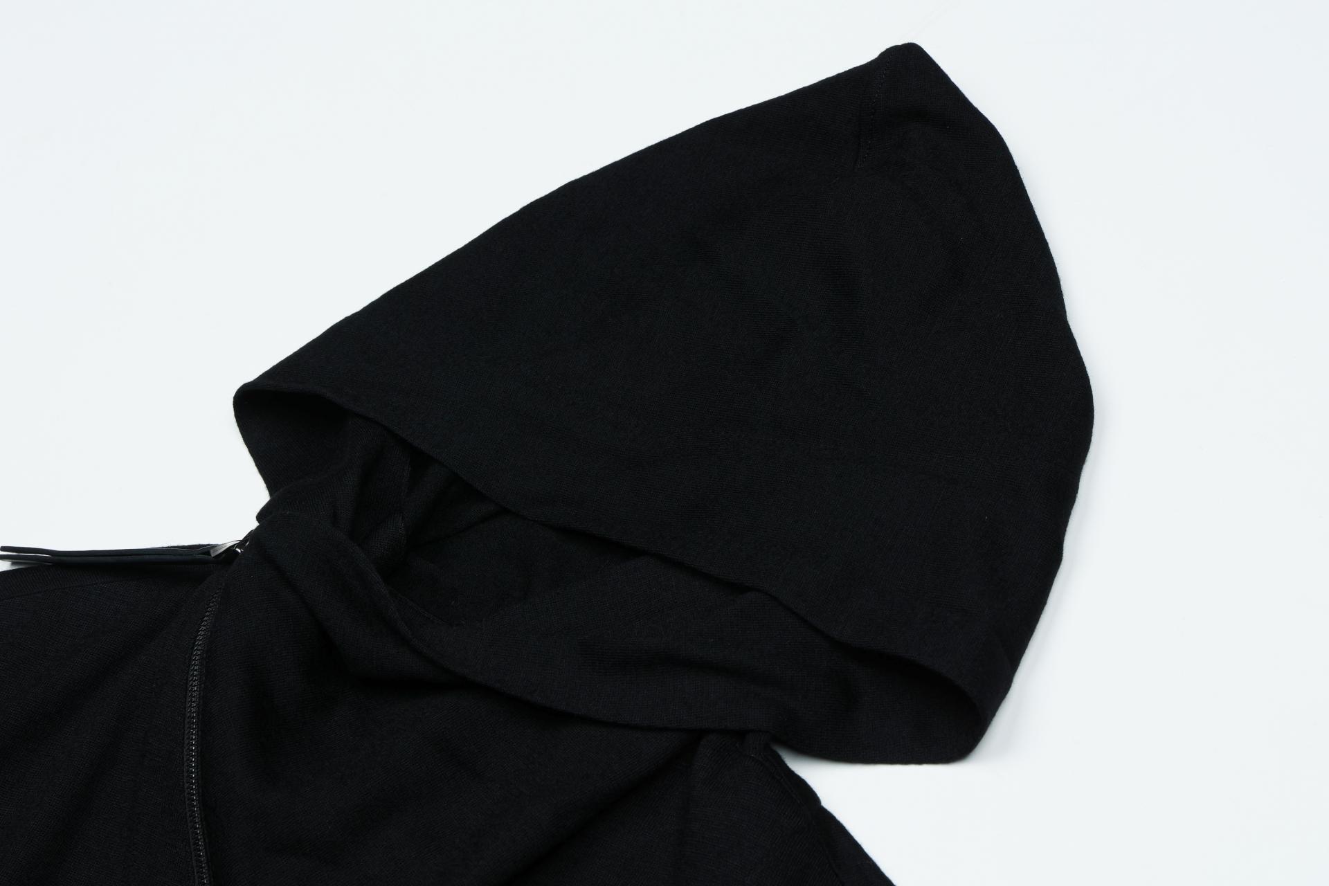 앞중심 지퍼가 비대칭 라인으로 들어가 디테일적 요소가 돋보이는 후디 블라우스입니다.