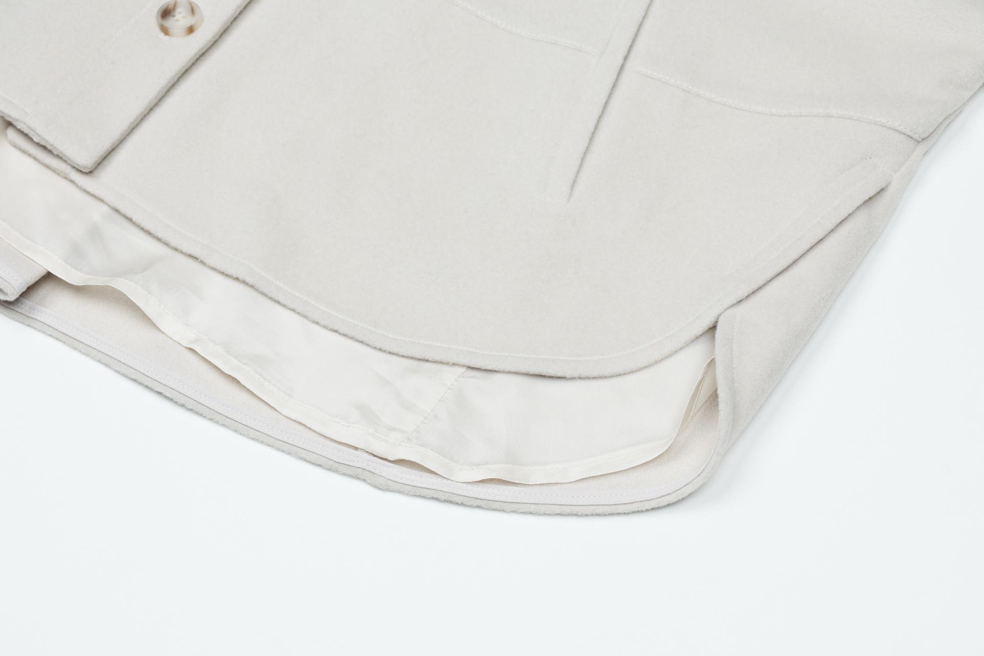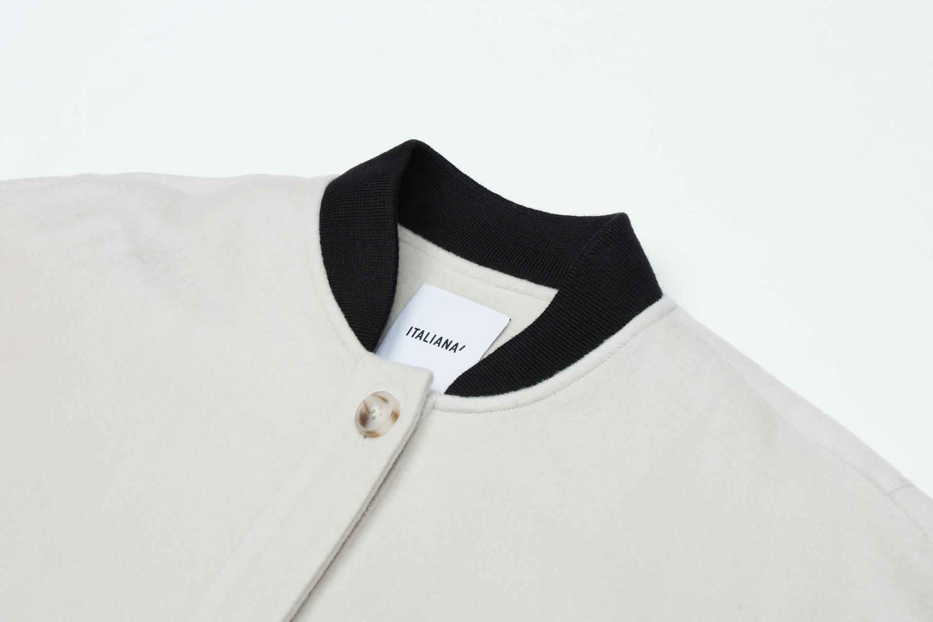 돌먼 슬리브 디자인으로 여유있는 실루엣과 핸드메이드의 심리스 봉제로 섬세하게 작업된 캐시미어 혼방 자켓입니다.