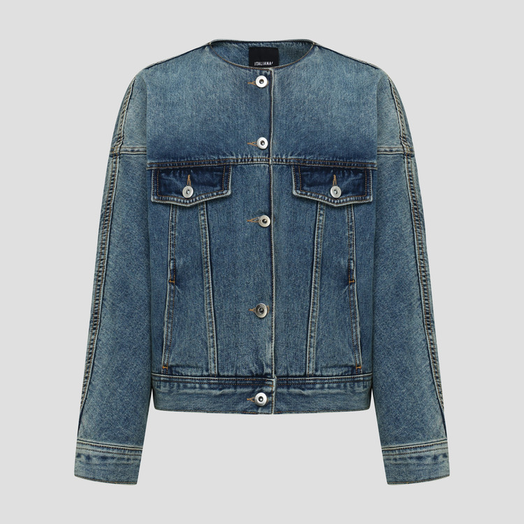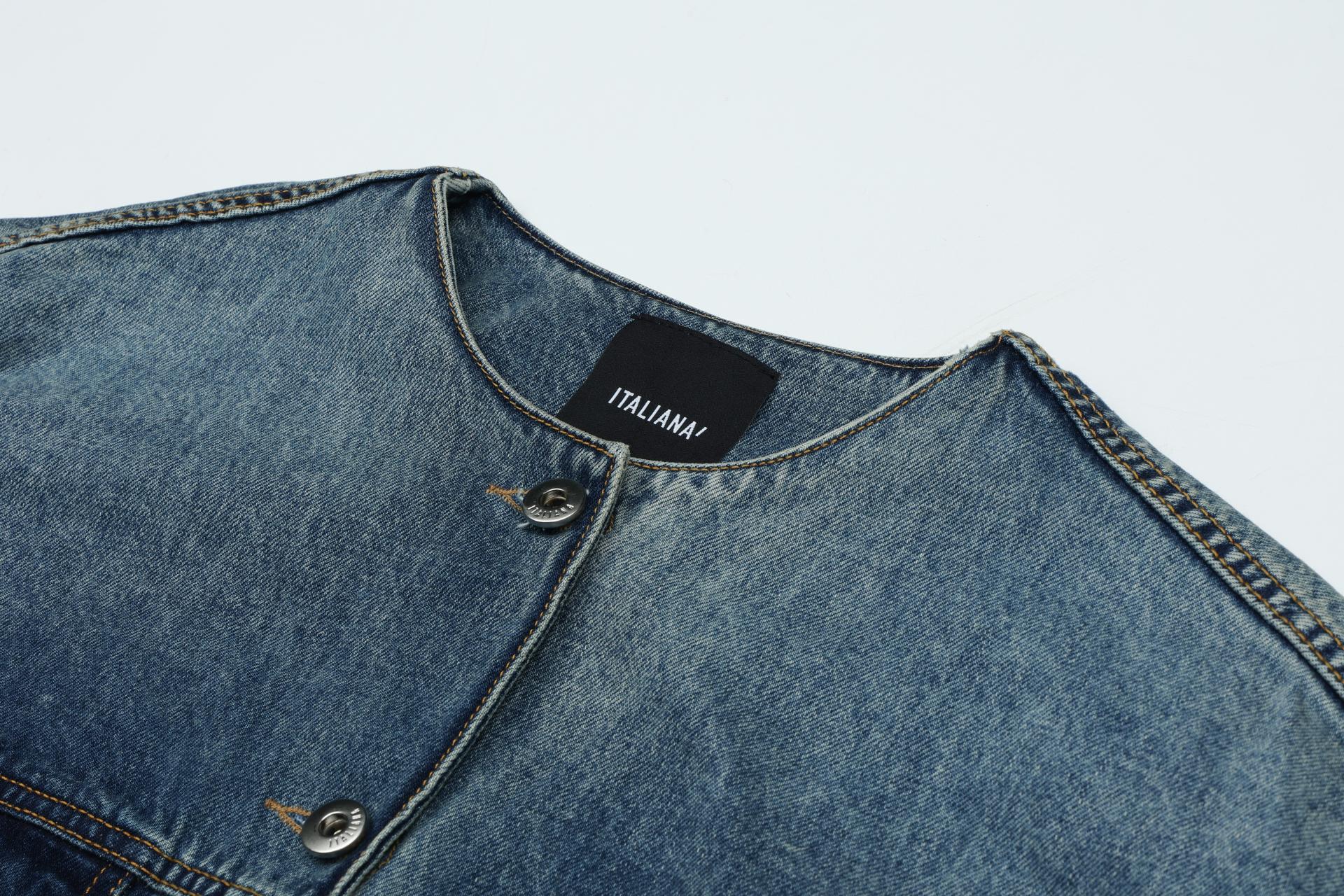간결한 카라 리스 디자인으로 캐쥬얼한 데님 소재로 완성된 데님 자켓입니다.