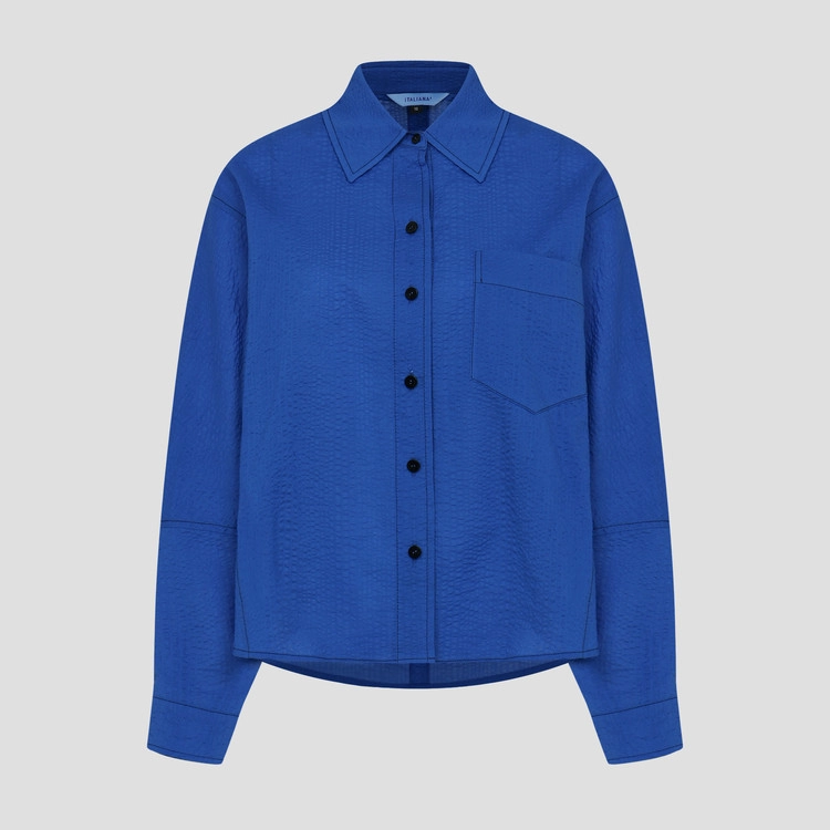 오버핏의 형태로 잔잔하게 주름진 조직감이 한층 더 산뜻하고 여성스러운 핏으로 연출 할 수 있습니다.