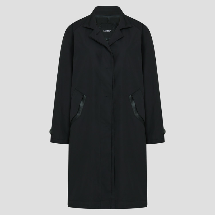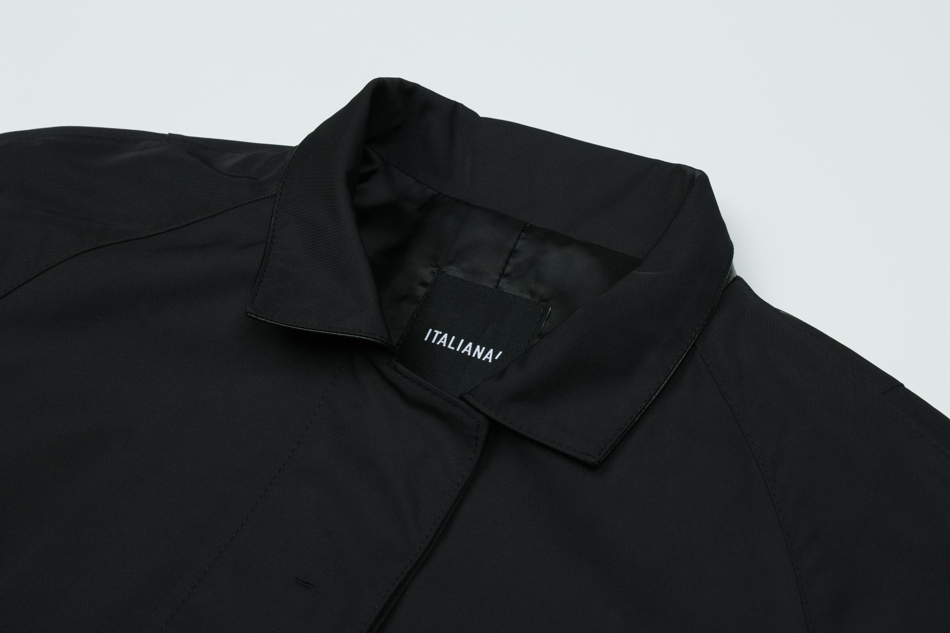 은은한 트윌의 광택과 적당한 고시감이 있어 디자인의 형태감을 살려주는 소재이며, 고급스러운 양가죽으로 카라와 포켓, 소매비죠를 포인트로 사용한 바바리입니다.