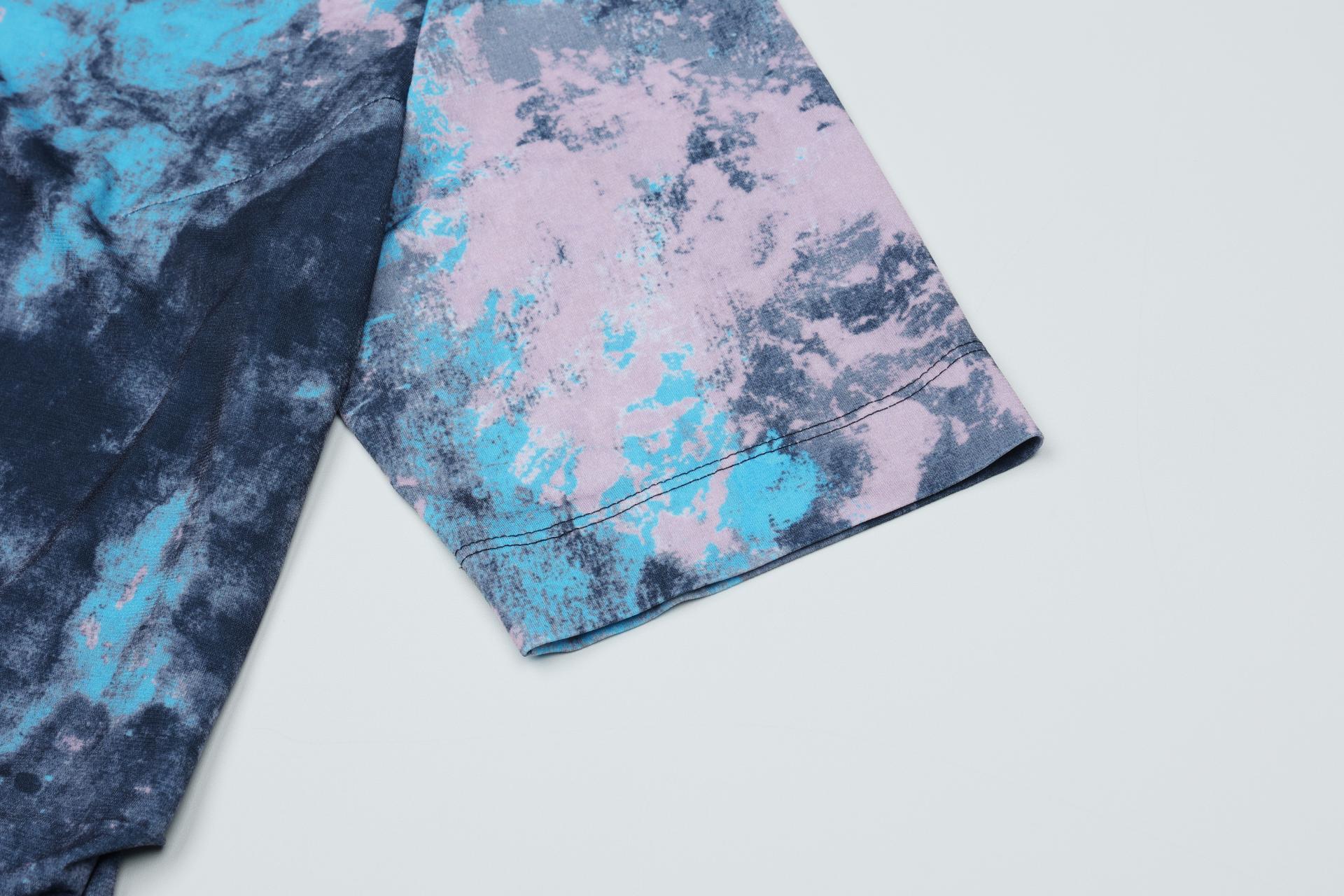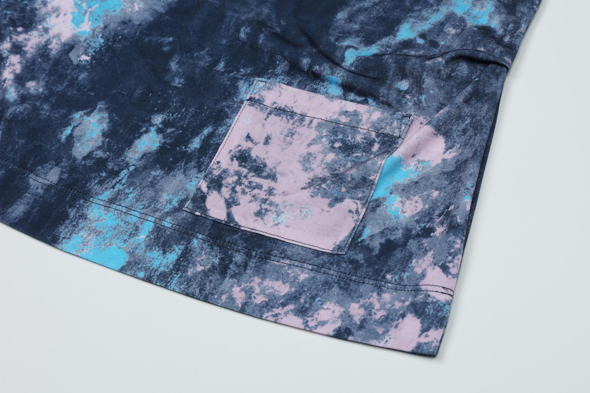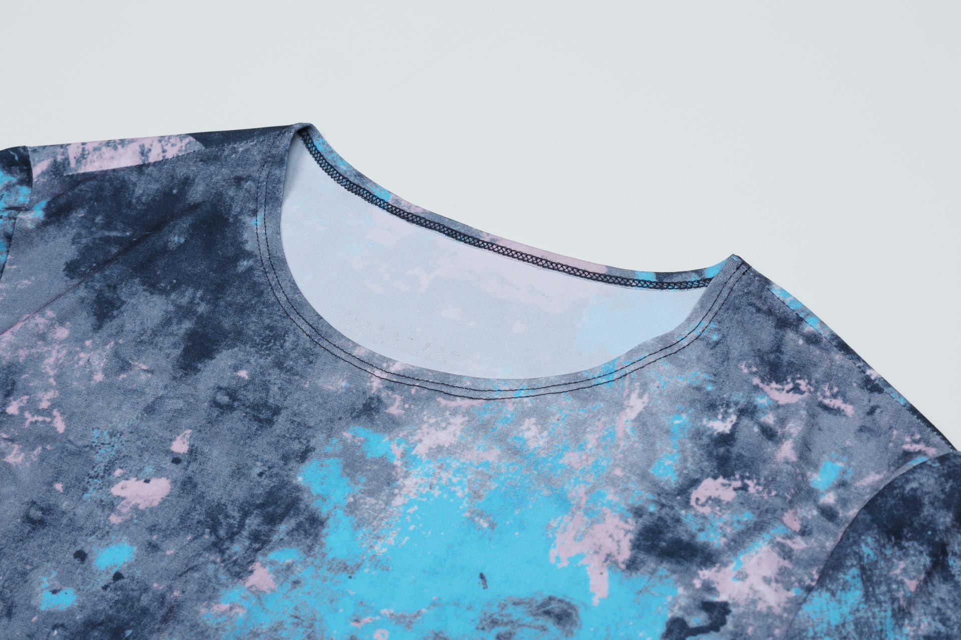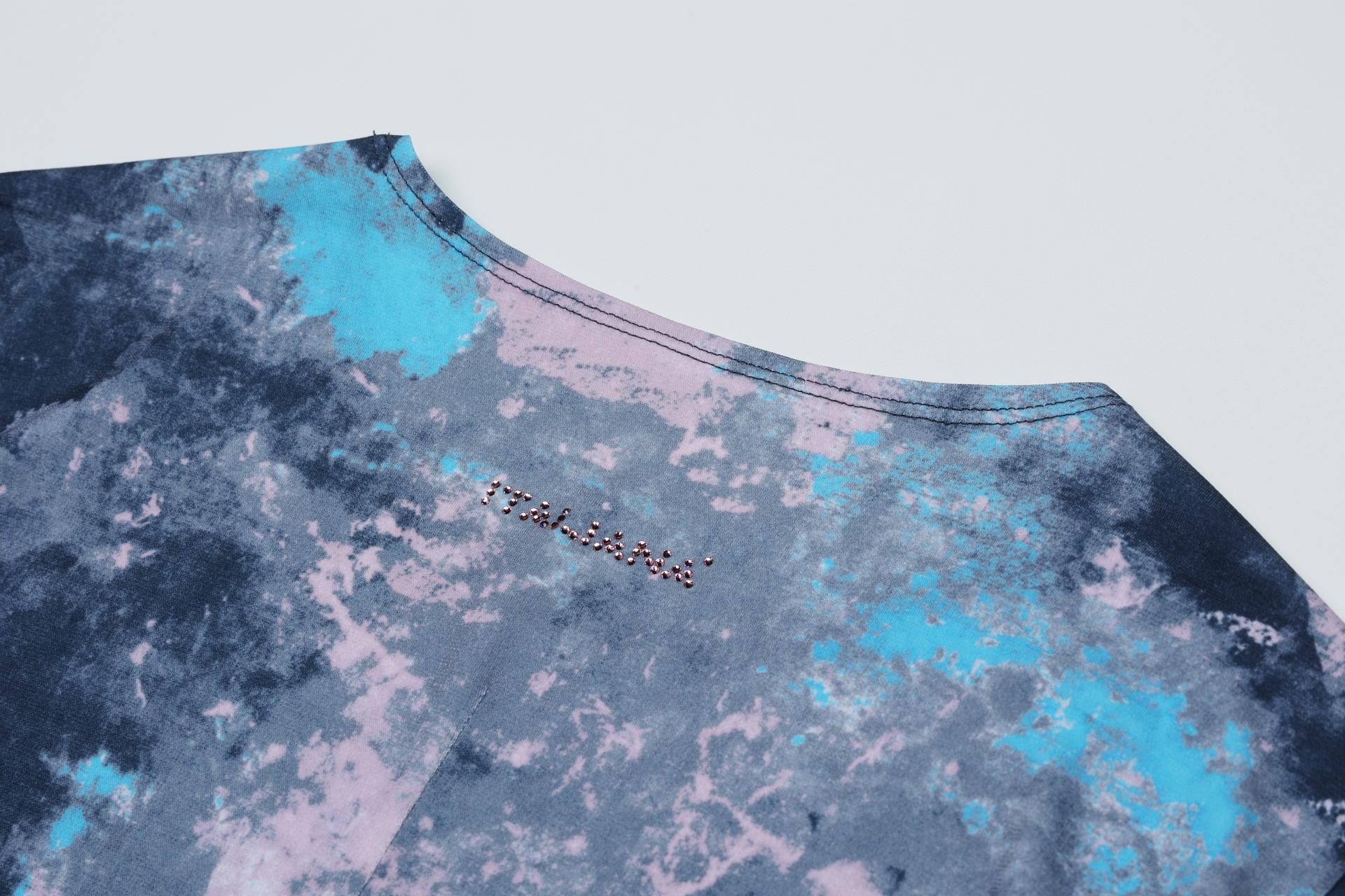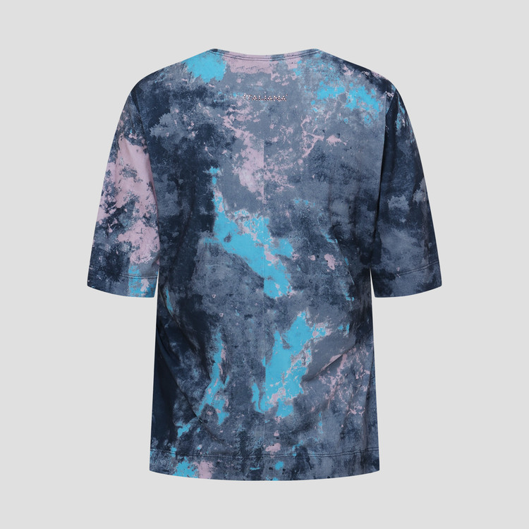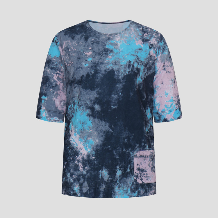 폴리 스판 져지 바닥의 추상적인 변형 페인트 패턴의 프린트물 티셔츠입니다.