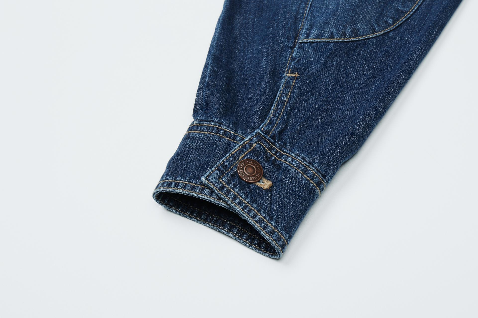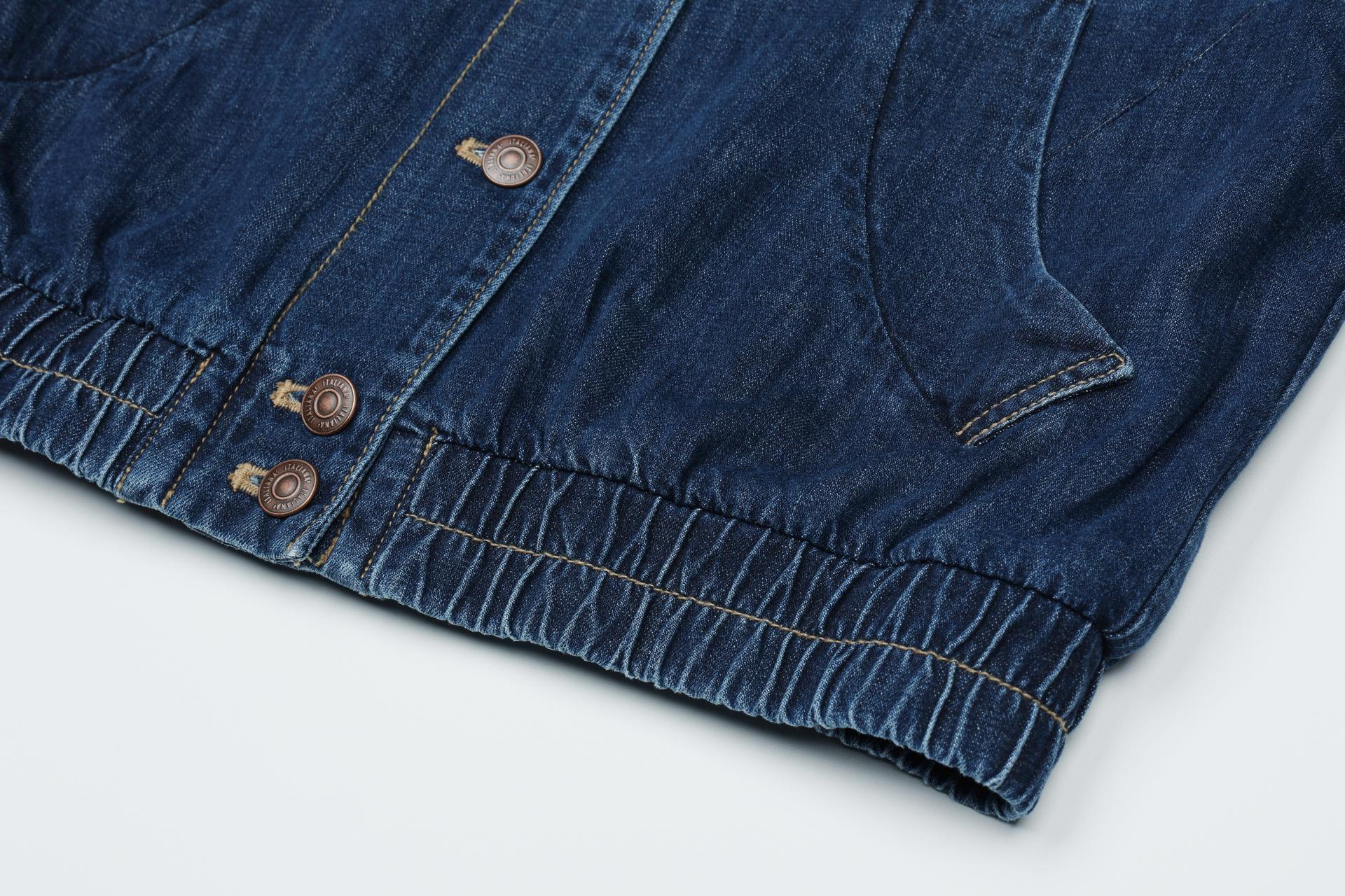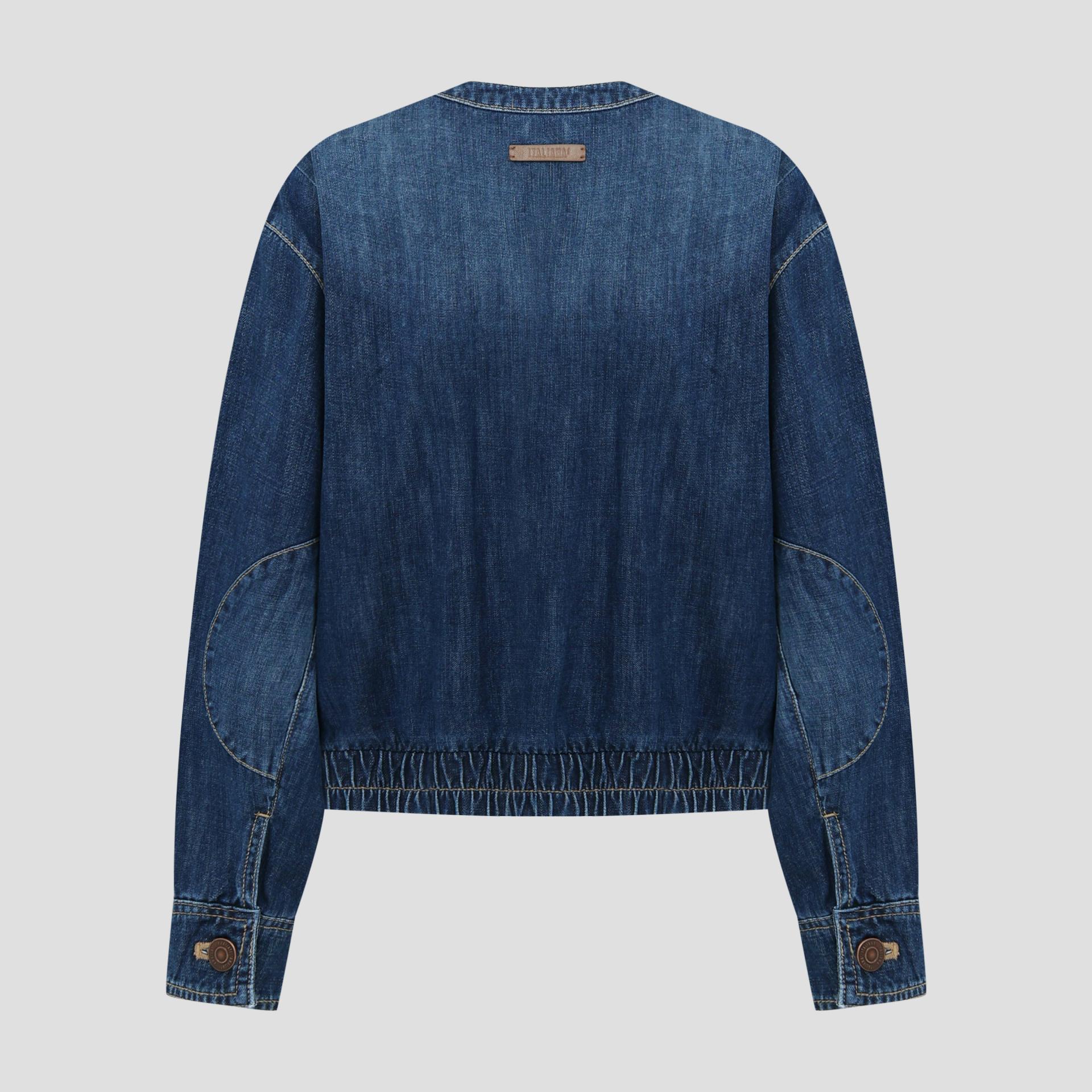 깔끔한 칼라리스 디자인과 크롭한 기장감이 어우러지는 데님 자켓입니다.