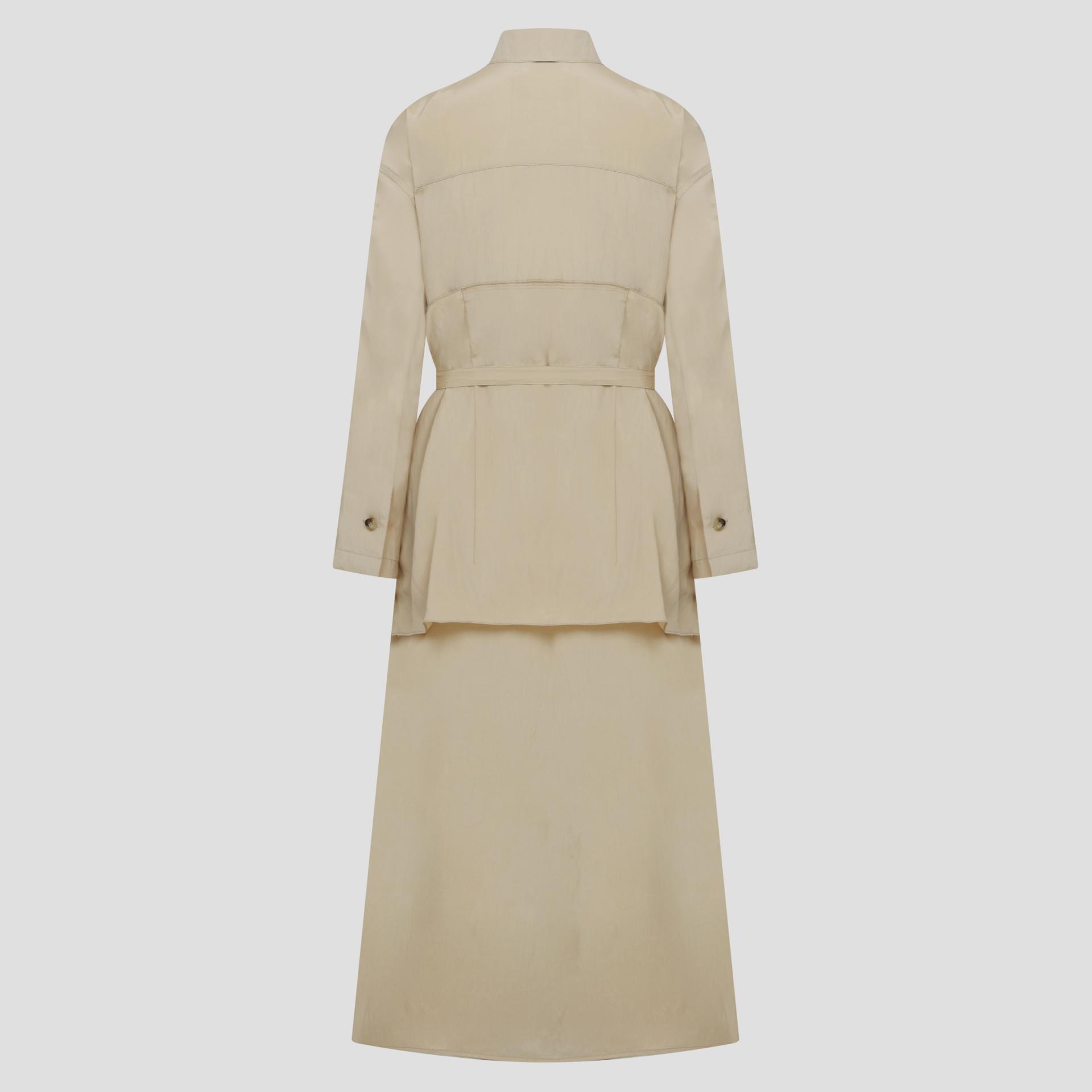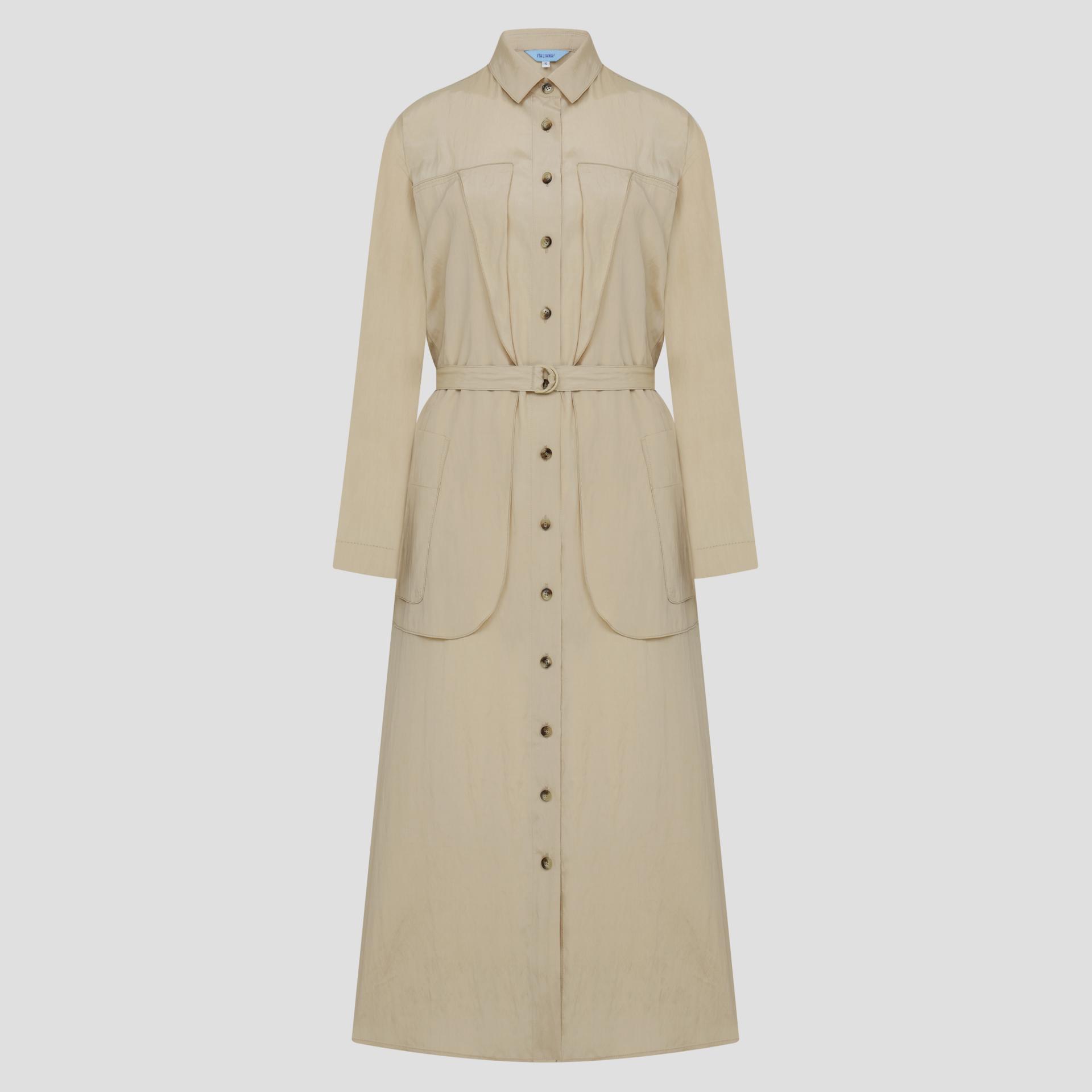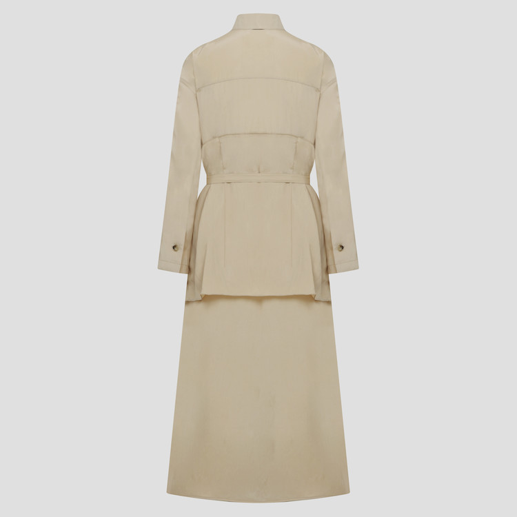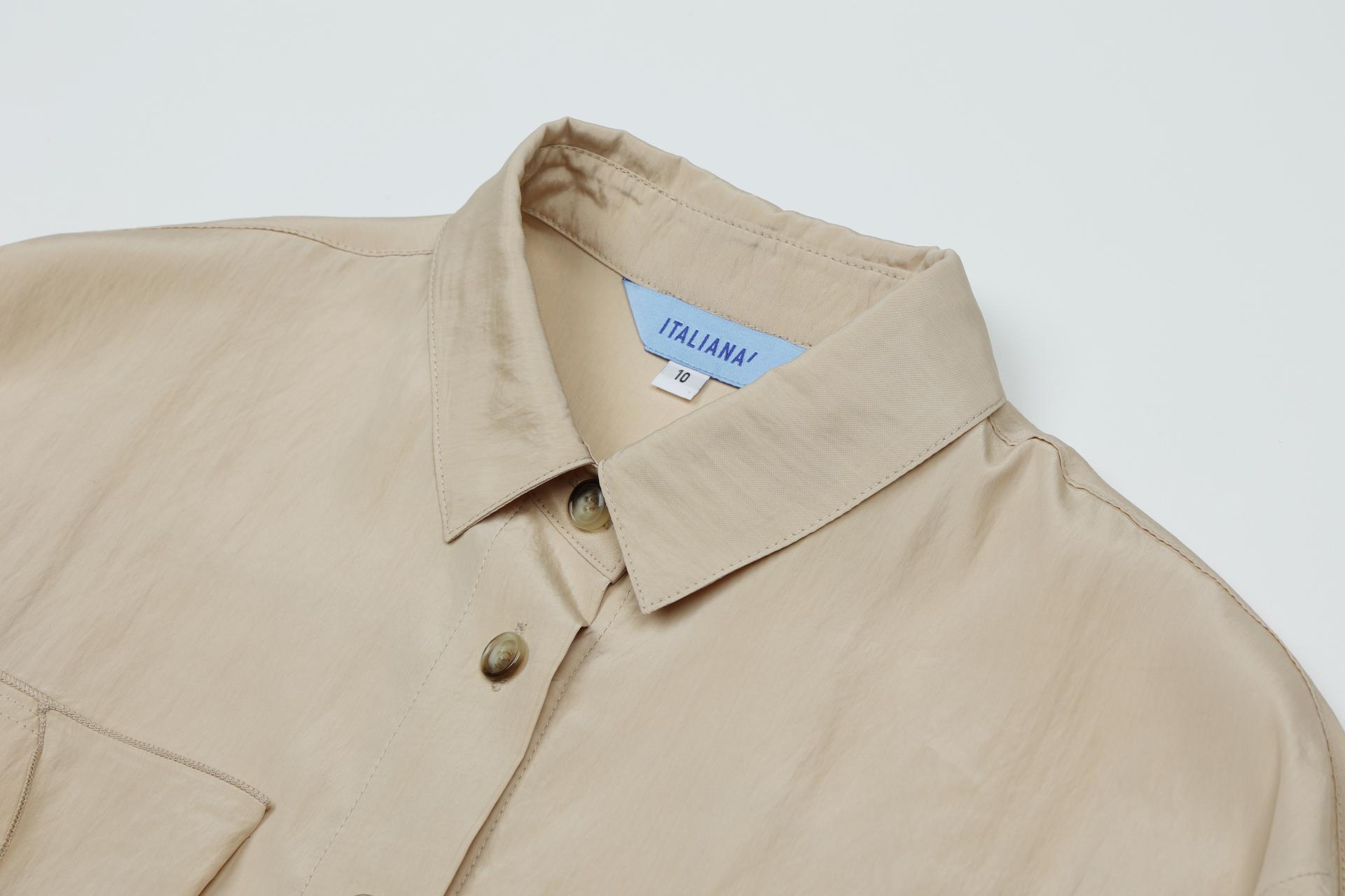 광택감이 돋보이는 비스코스&나일론 혼방의 셔츠형 바바리로 앞 오픈 및 클로즈를 통해 바바리 느낌으로 혹은 원피스 느낌으로 착용하실 수 있습니다.