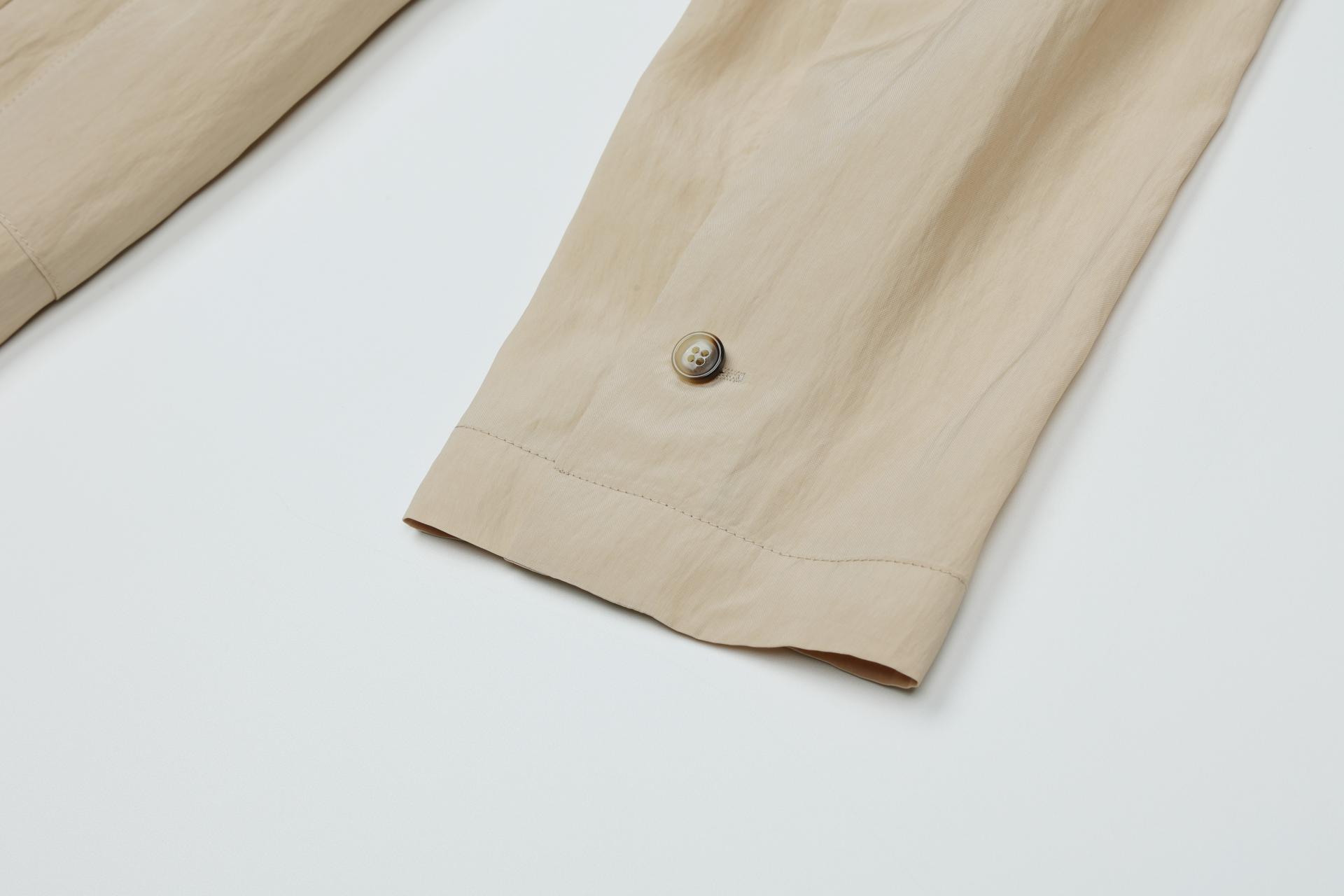 비스코스 혼방의 원단으로 비스코스 원단의 특유의 광택감과 시원한 터치감이 여름까지 착용 가능한 소재입니다.