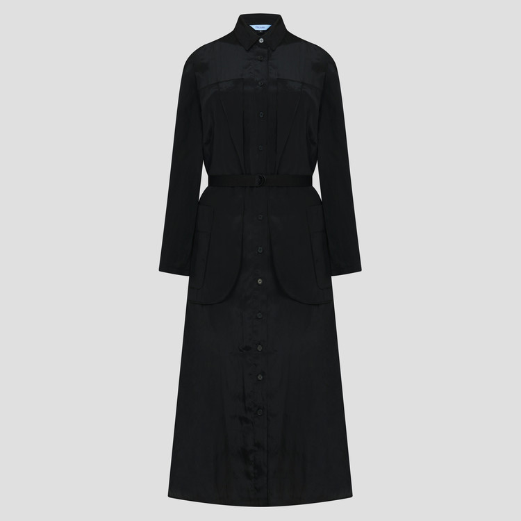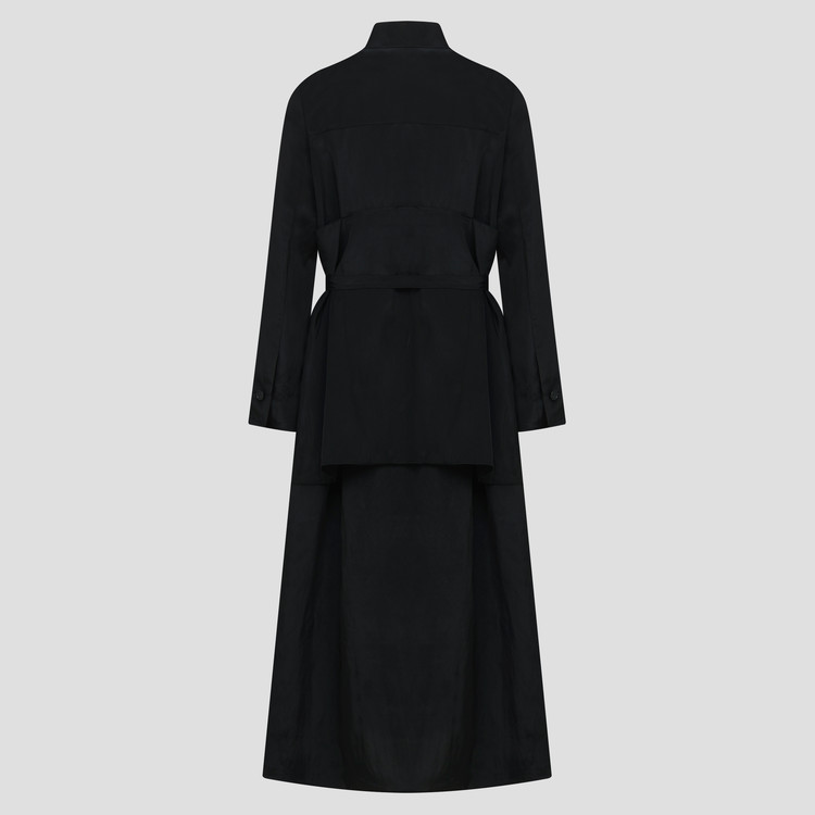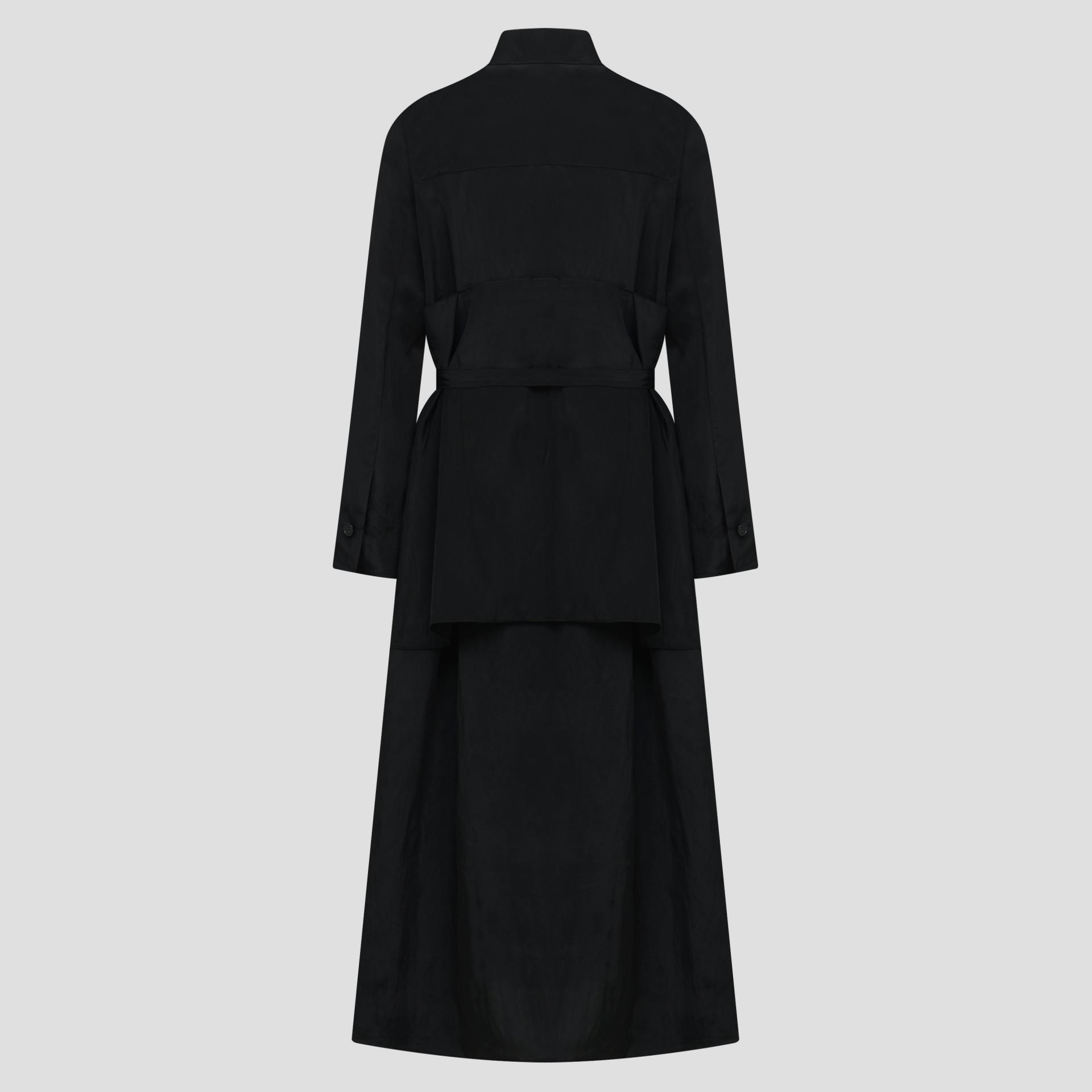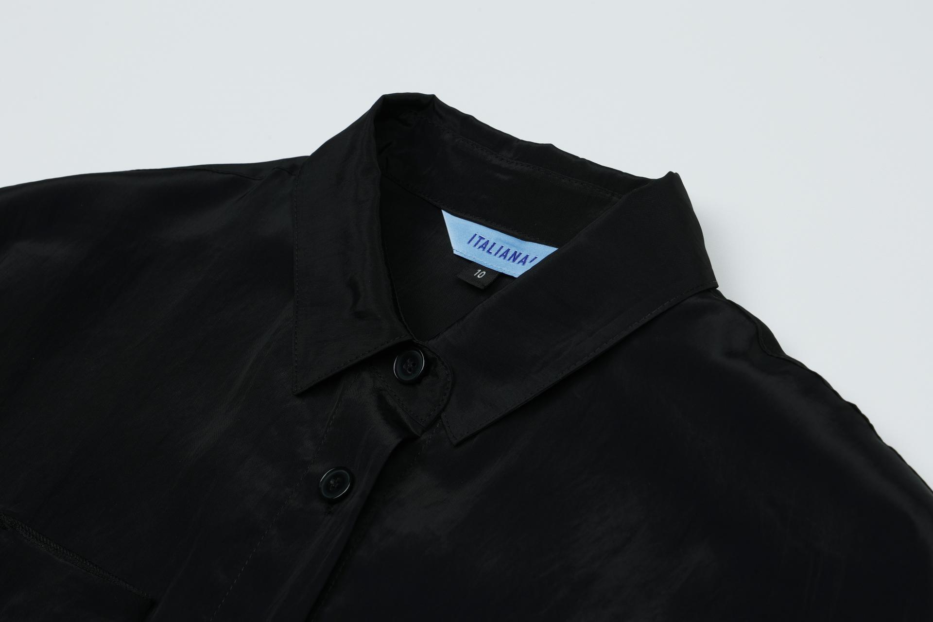 광택감이 돋보이는 비스코스&나일론 혼방의 셔츠형 바바리로 앞 오픈 및 클로즈를 통해 바바리 느낌으로 혹은 원피스 느낌으로 착용하실 수 있습니다.