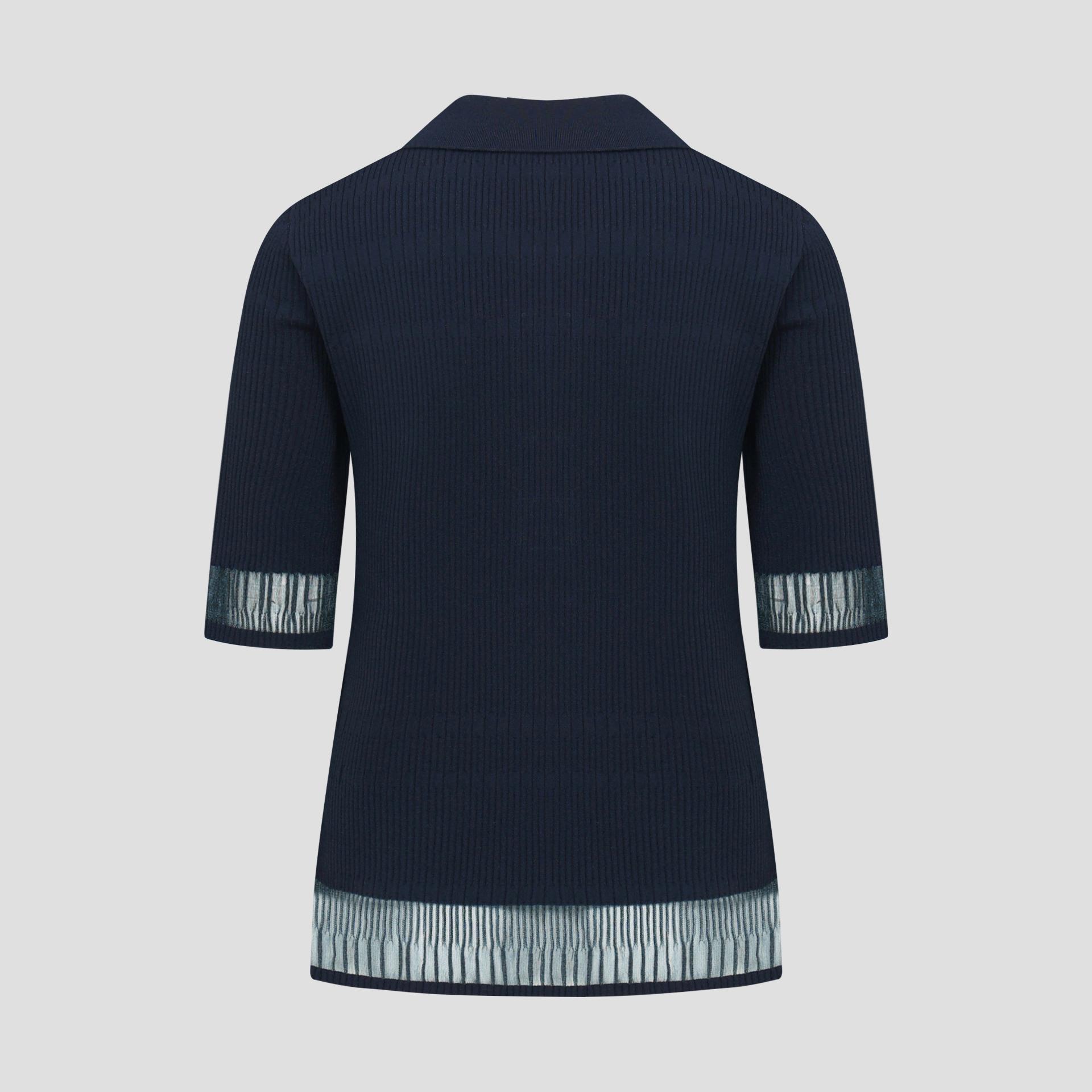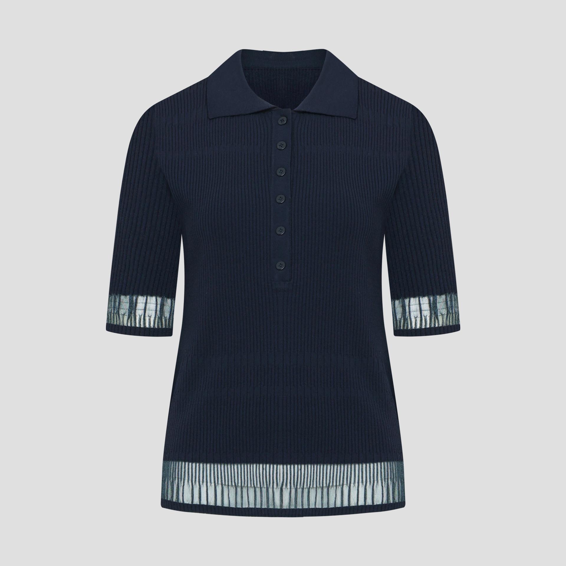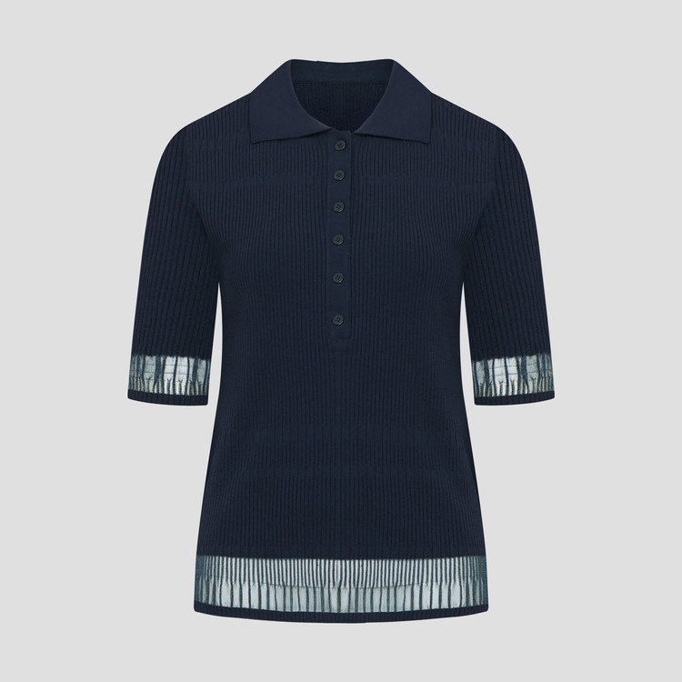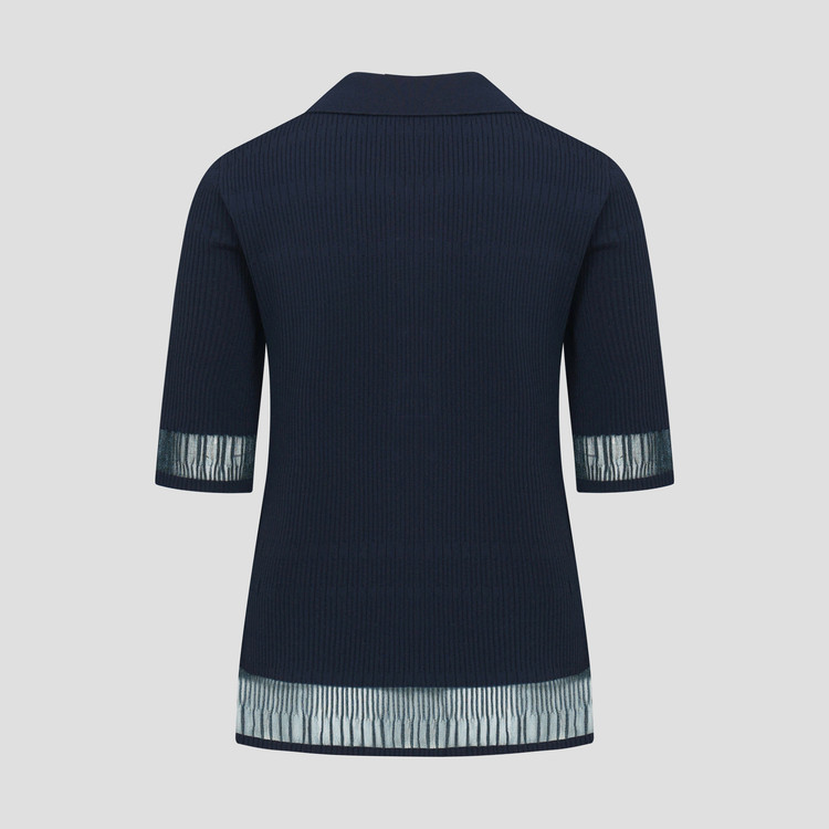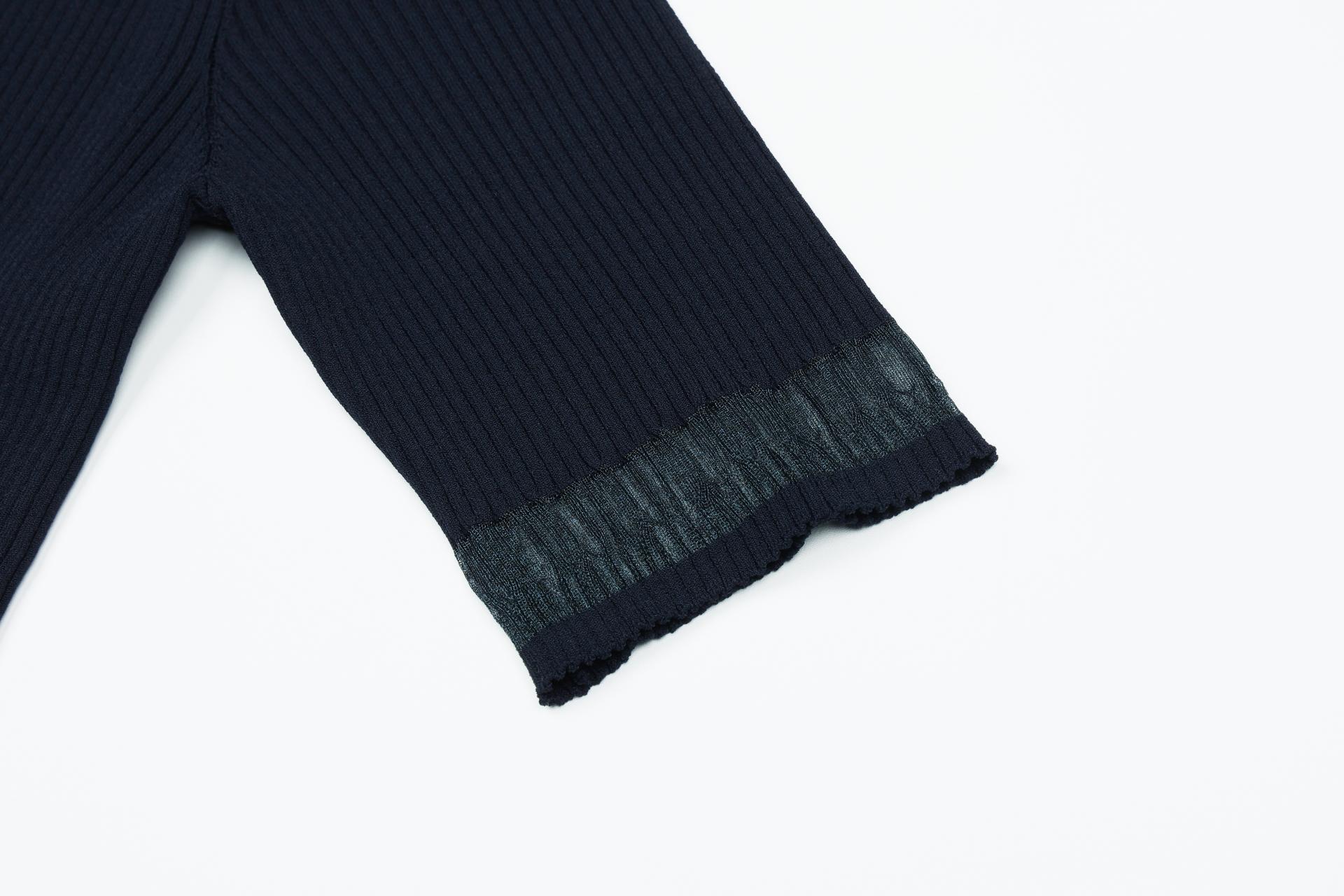 팔꿈치까지 오는 안정적인 소매장으로 투명사가 소맷단과 밑단에 위치하며 여성스러운 무드를 자아냅니다