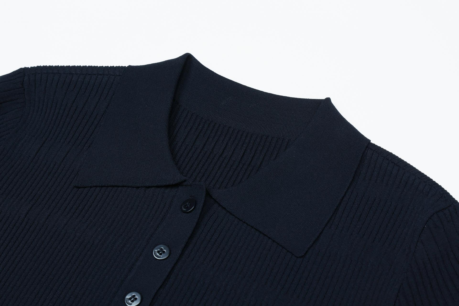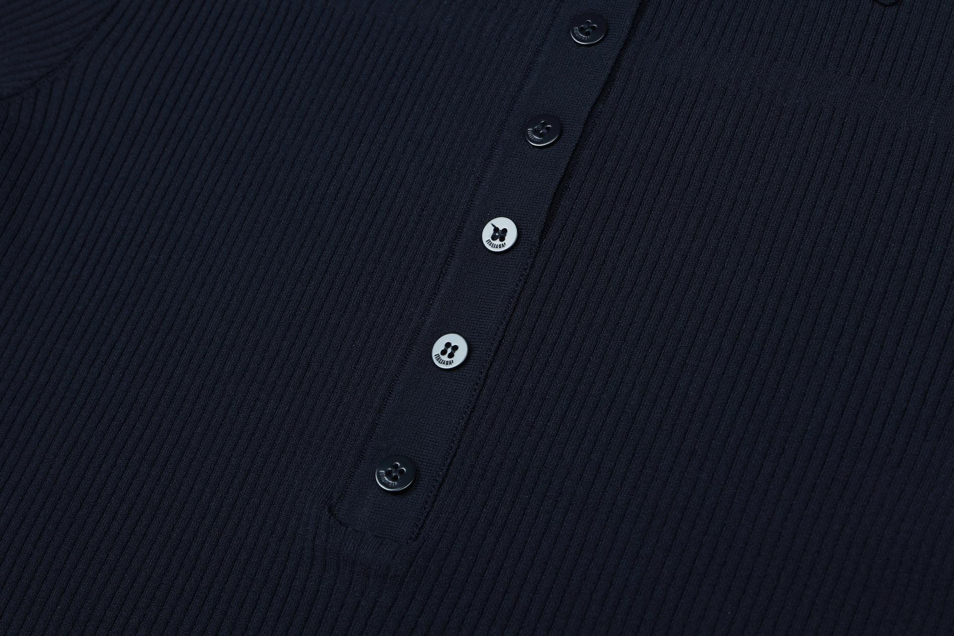 반 오픈 형식의 버튼과 카라 디테일, 부드러운 골조직과 과하지 않은 슬림한 형태의 디자인으로