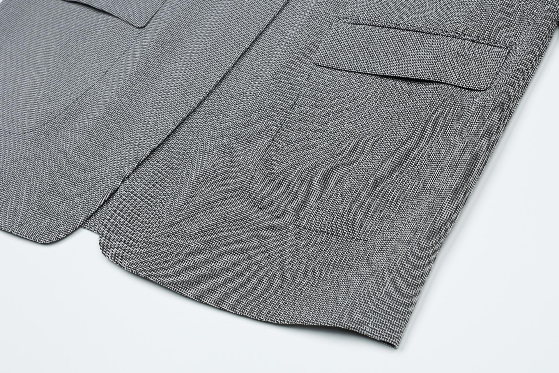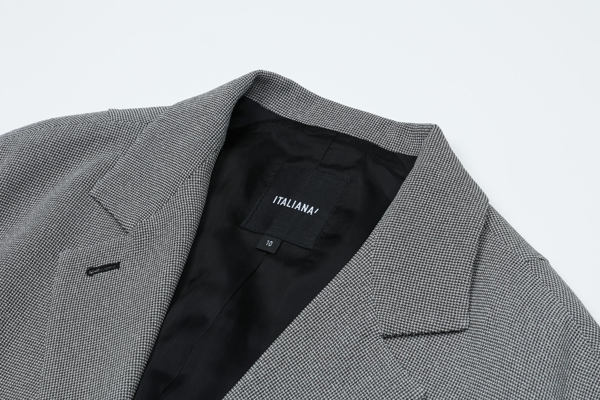 톡톡한 엠보감이 느껴지는 소재감을 사용하여 고급스러운 분위기를 자아내는 자켓입니다.