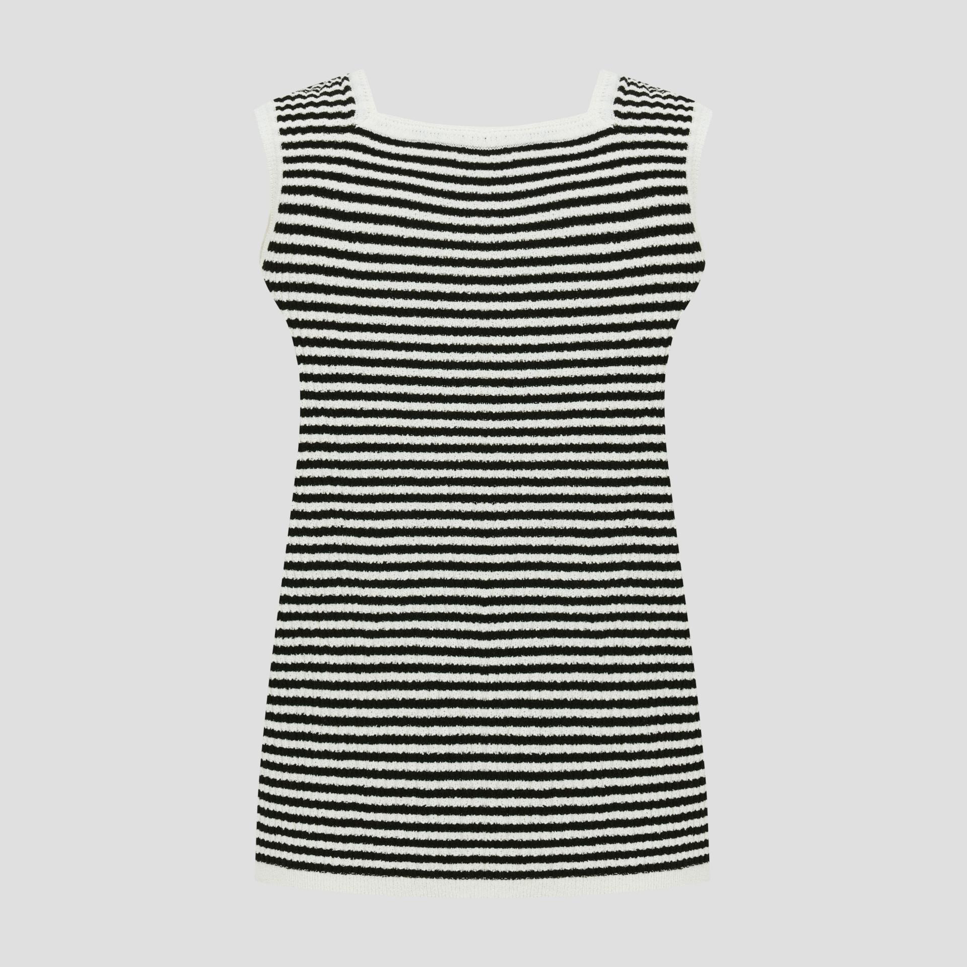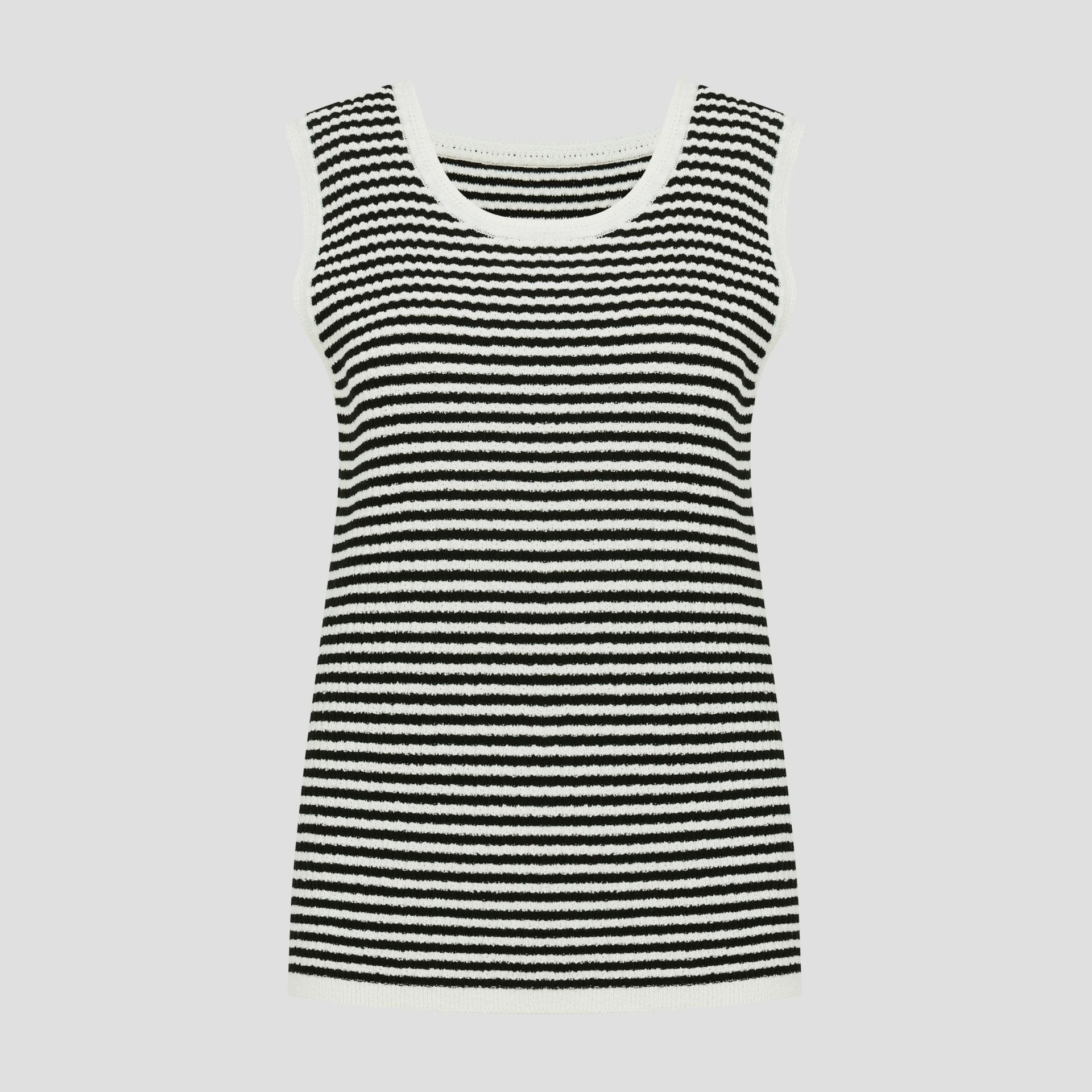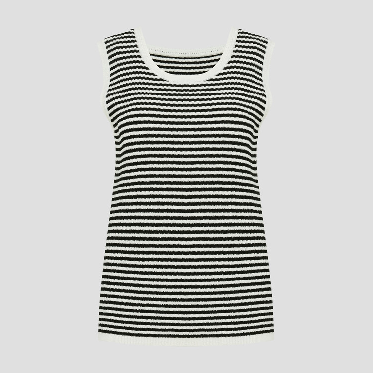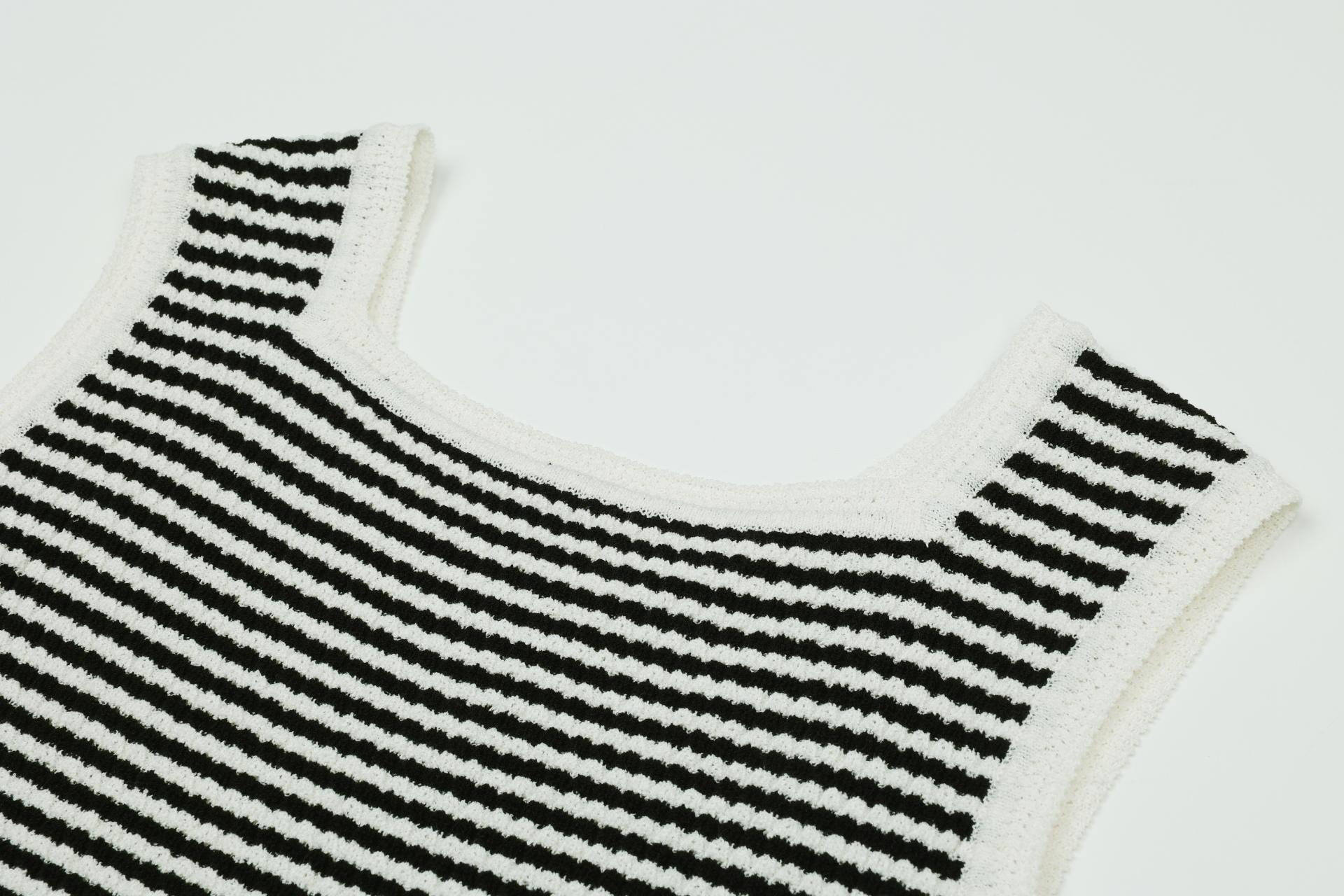 부클 텍스처의 스트라이프 패턴이 돋보이는 니트 탑입니다.