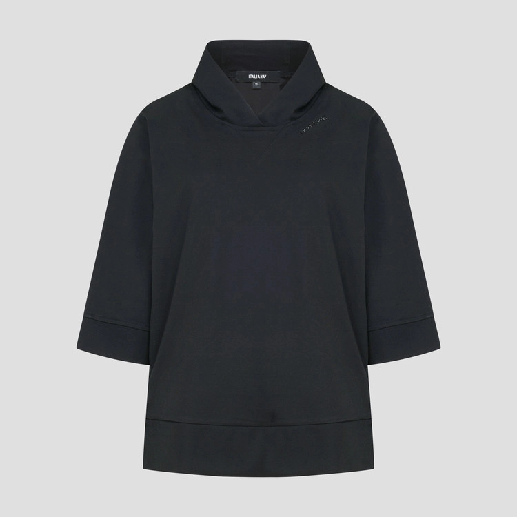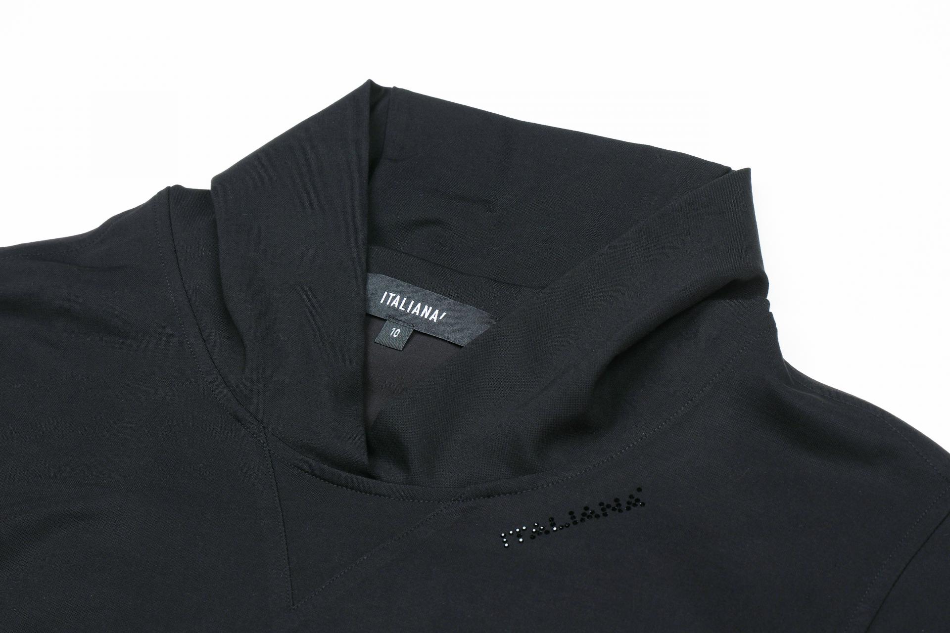 네크라인에 은은한 톤온톤 매칭의 핫픽스 로고 장식으로 가치를 주었습니다.