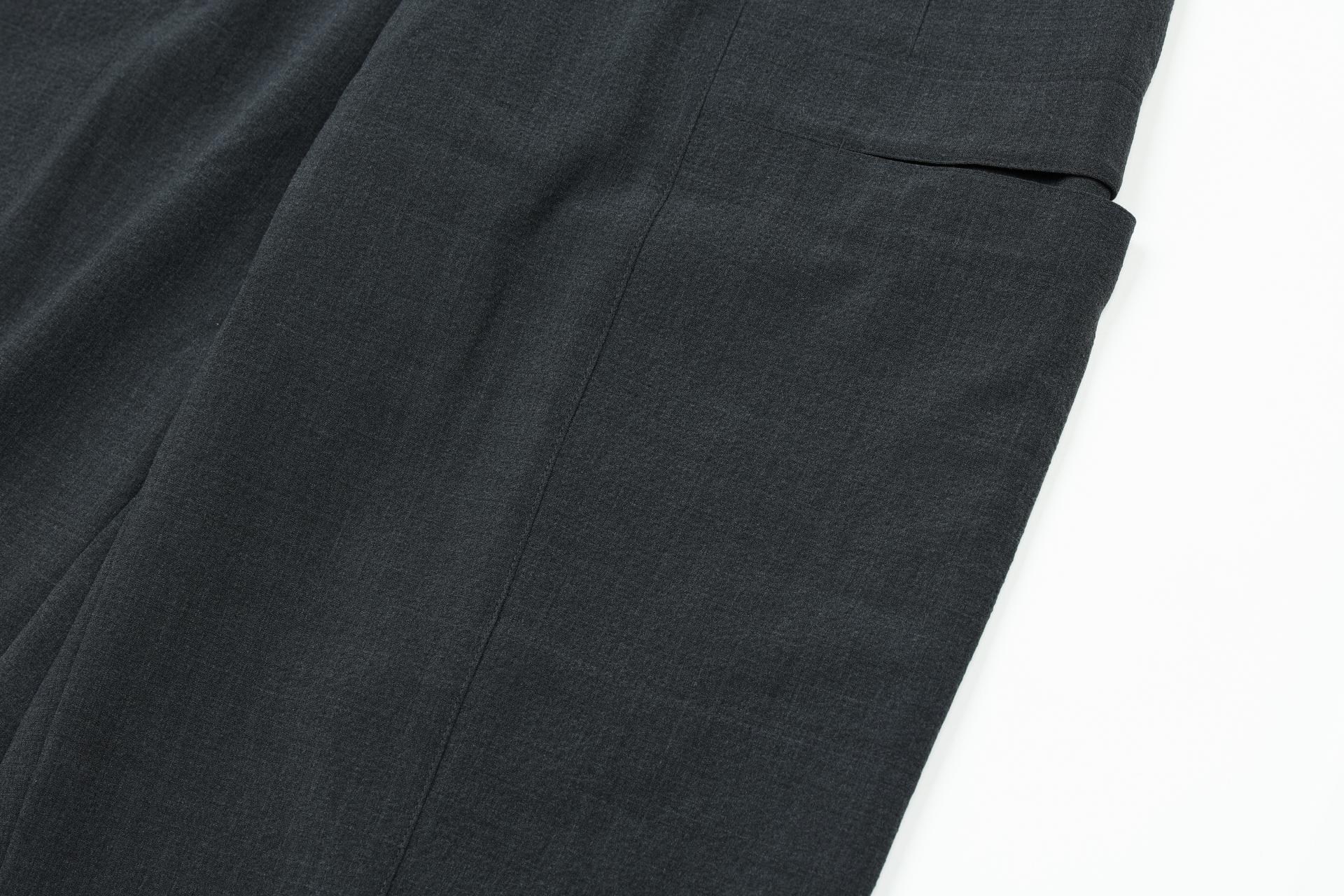 일본 수입 폴리-울 혼방으로 표면의 잔잔한 텍스쳐가 특징적인 소재입니다.