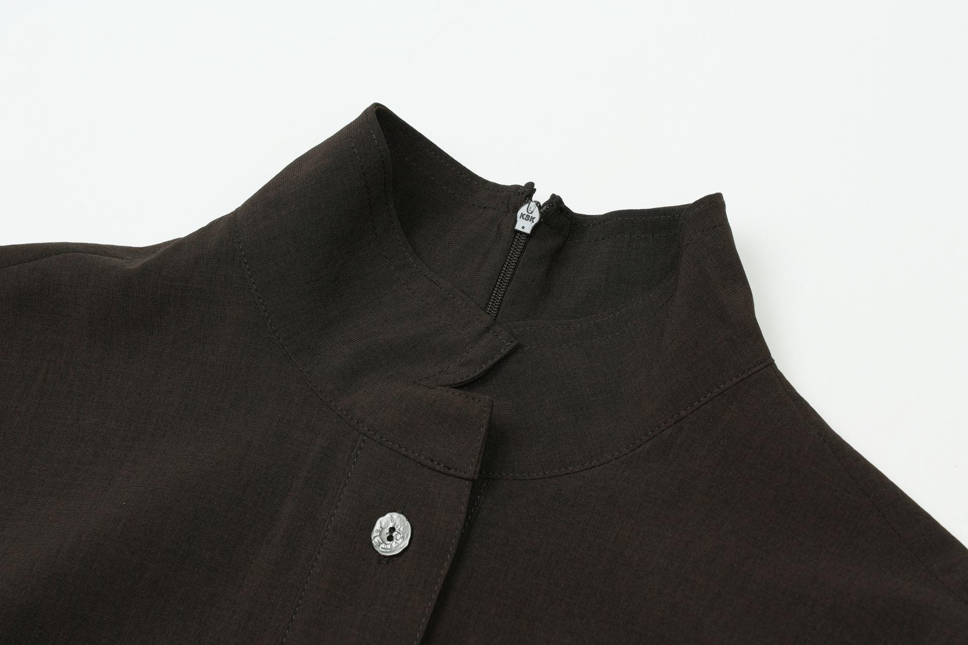 살짝 올라오는 하프넥 디자인으로 착용의 편리를 위해 뒷 지퍼 디테일을 추가했습니다.