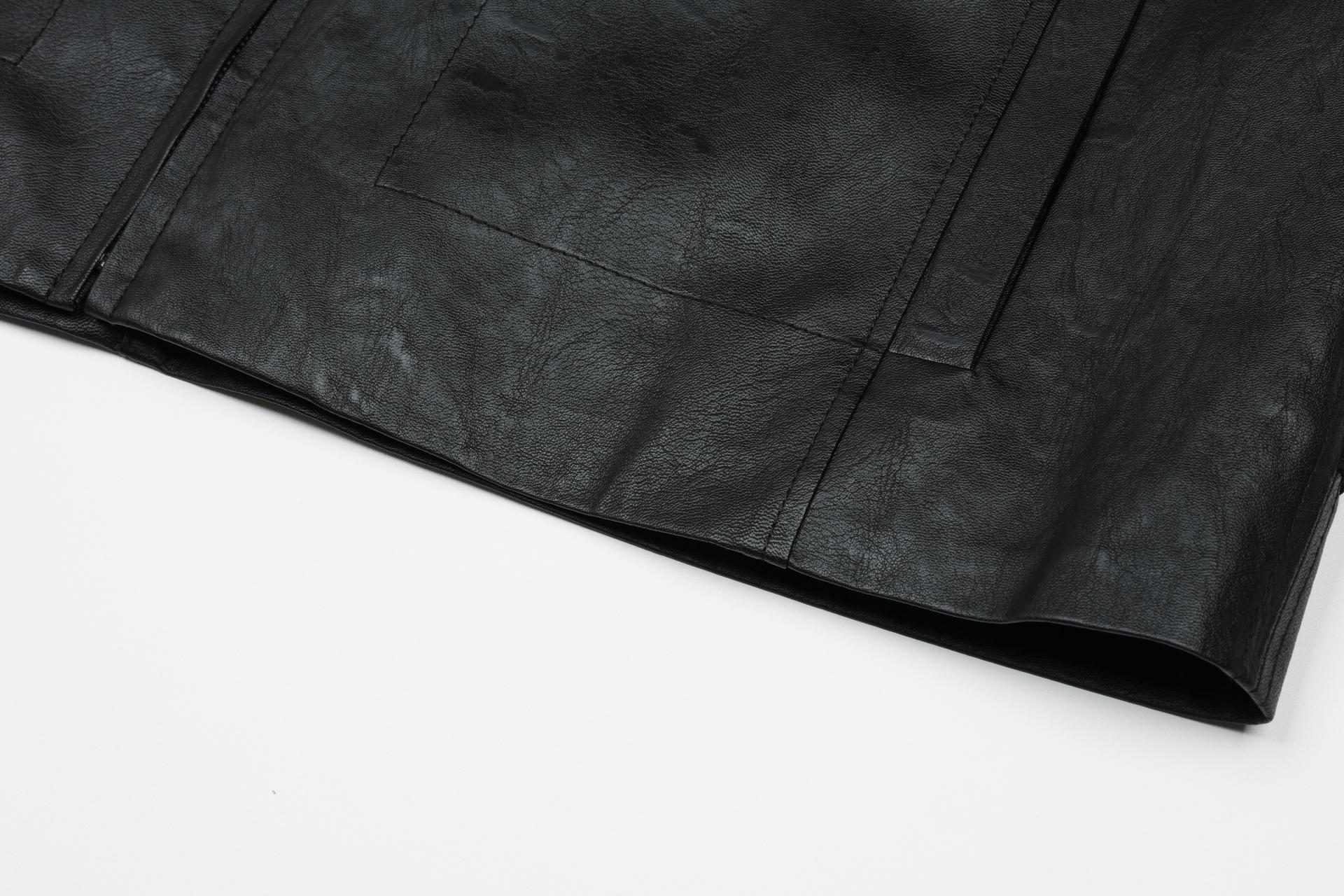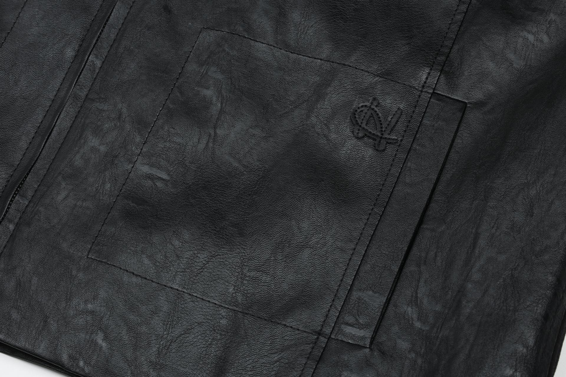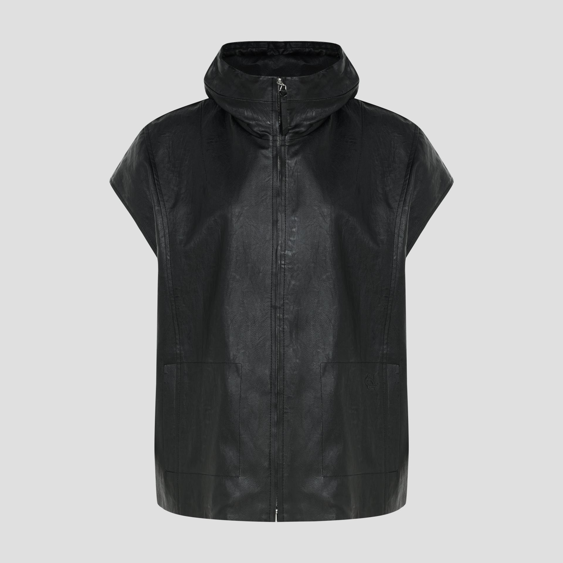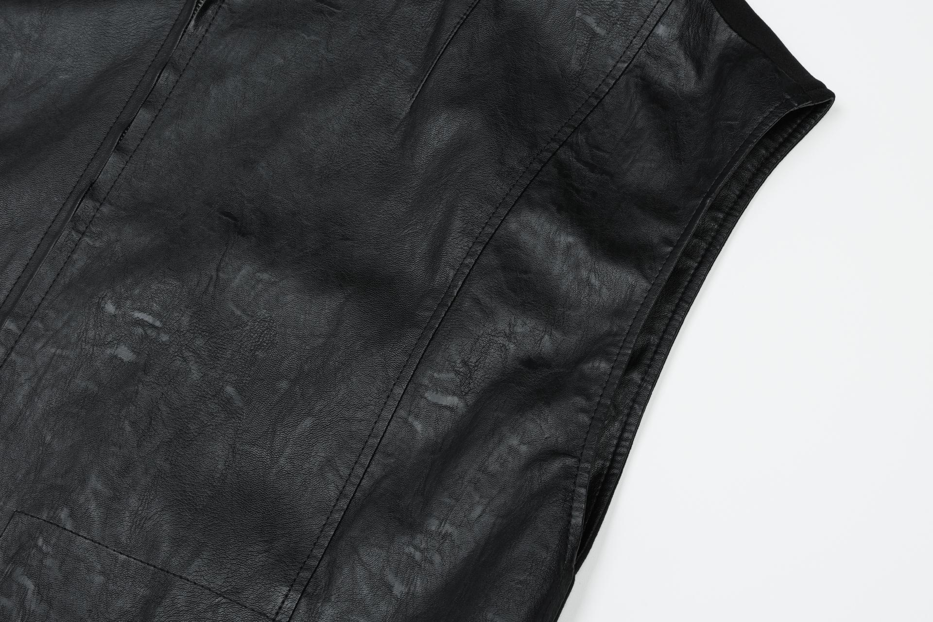 친환경적으로 가공된 페이크 레더 소재를 사용한 베스트입니다.