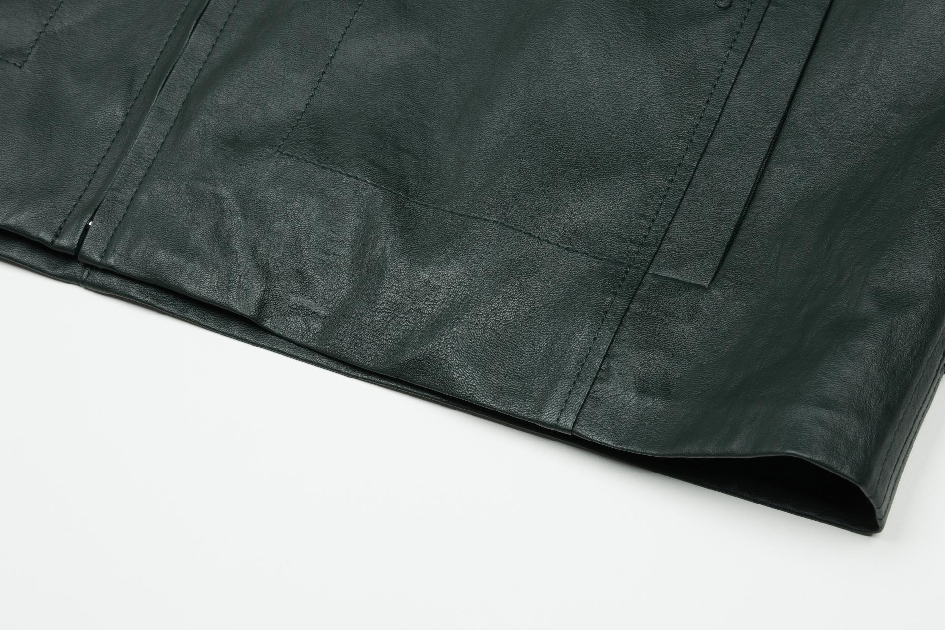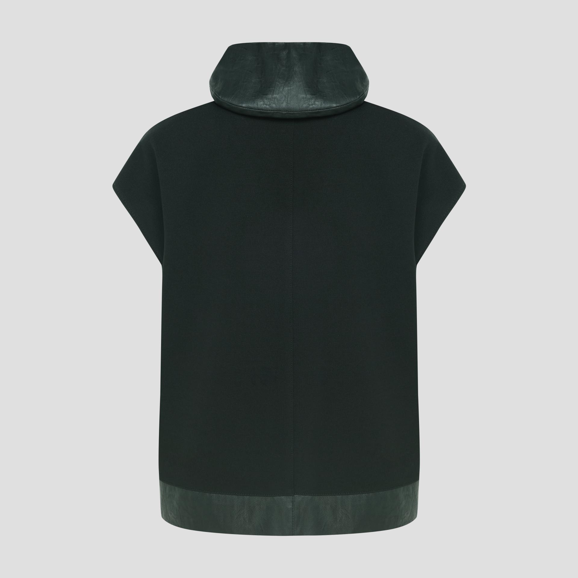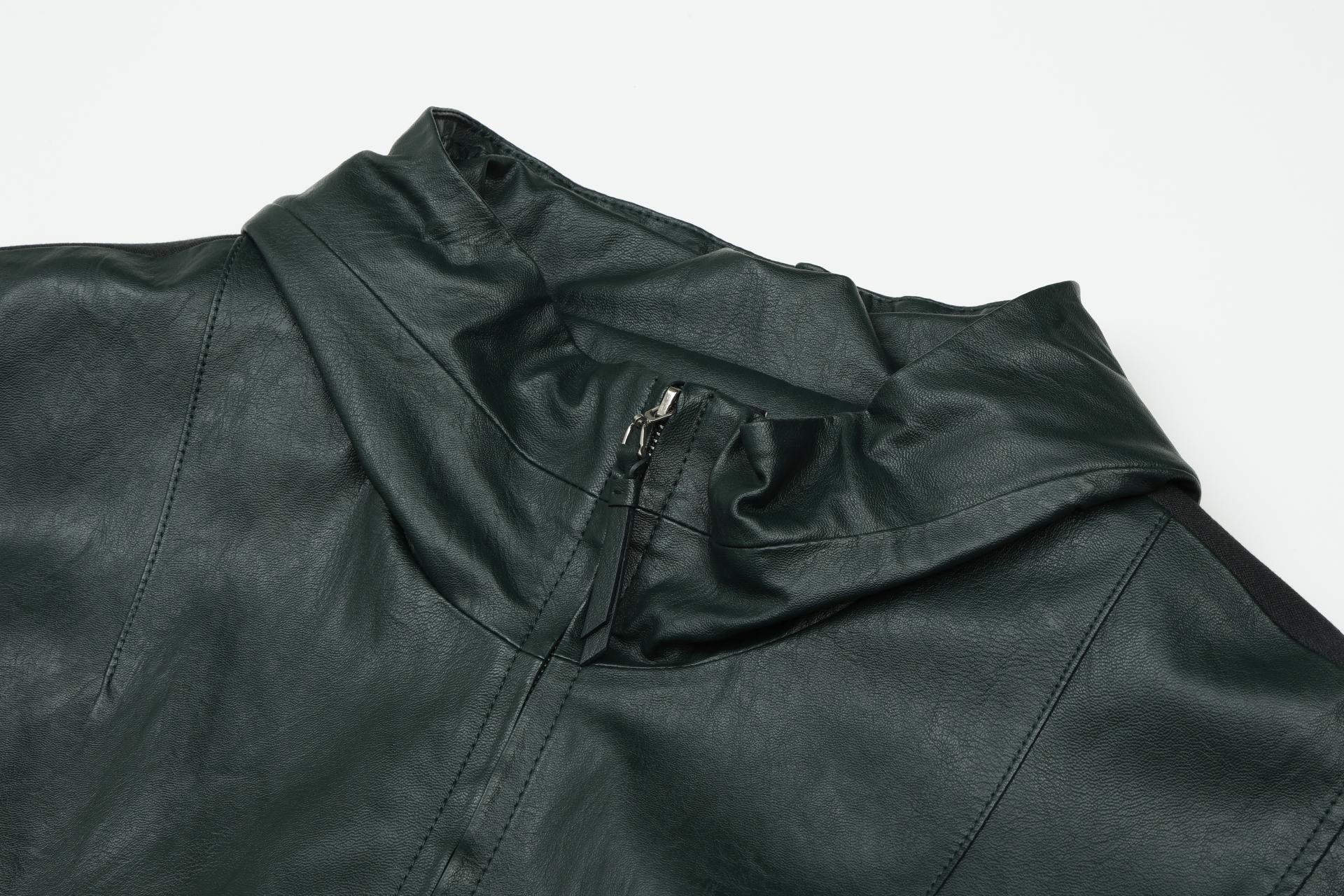 친환경적으로 가공된 페이크 레더 소재를 사용한 베스트입니다.