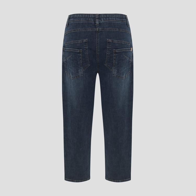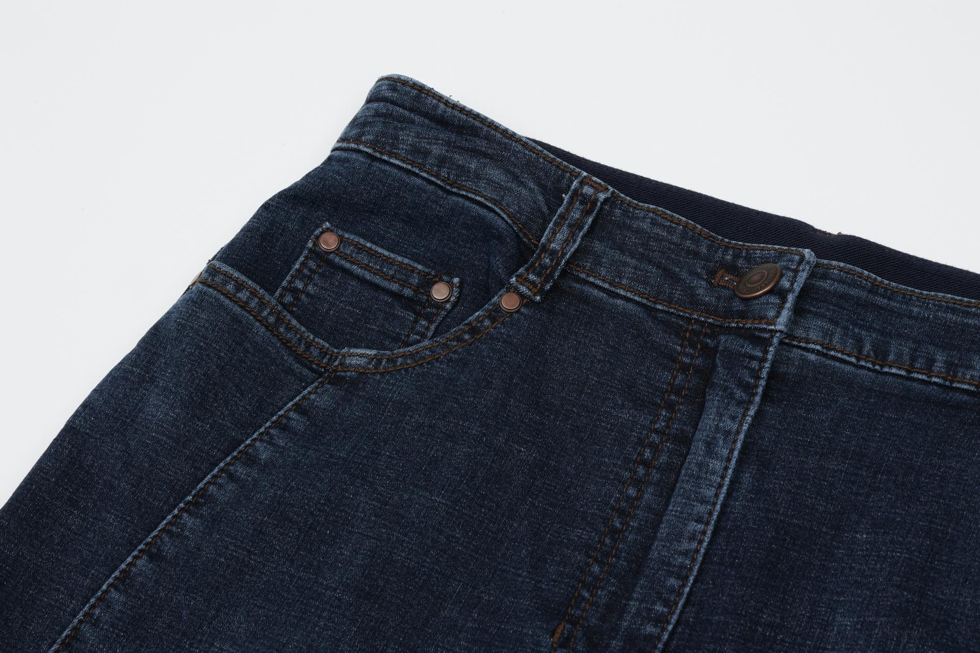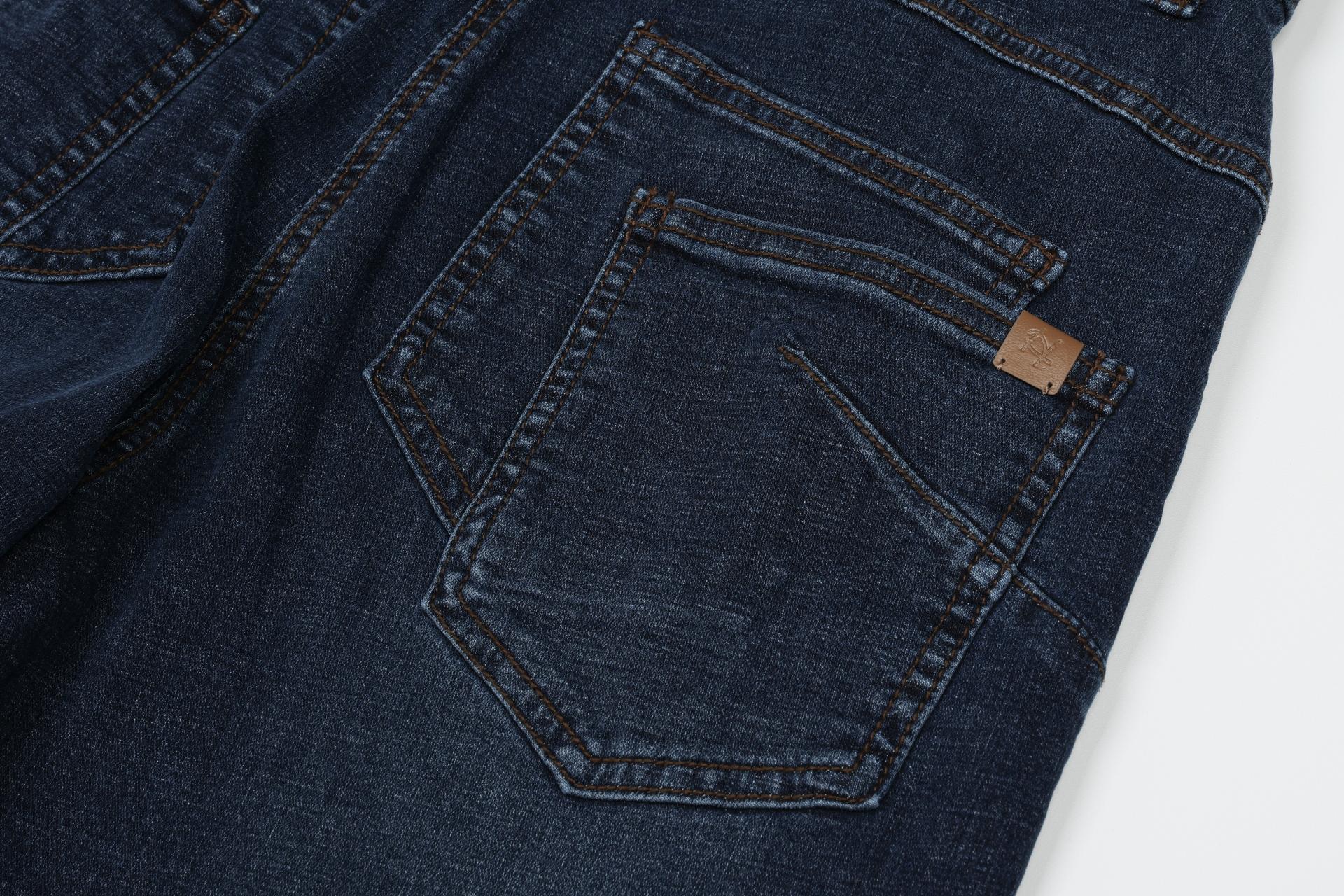다크한 컬러감과 허벅지와 힙 상단부에 워싱효과를 더 했으며, 후면부 허리에 고무밴드를 함께 봉제해 착용에 편안함을 더했습니다.