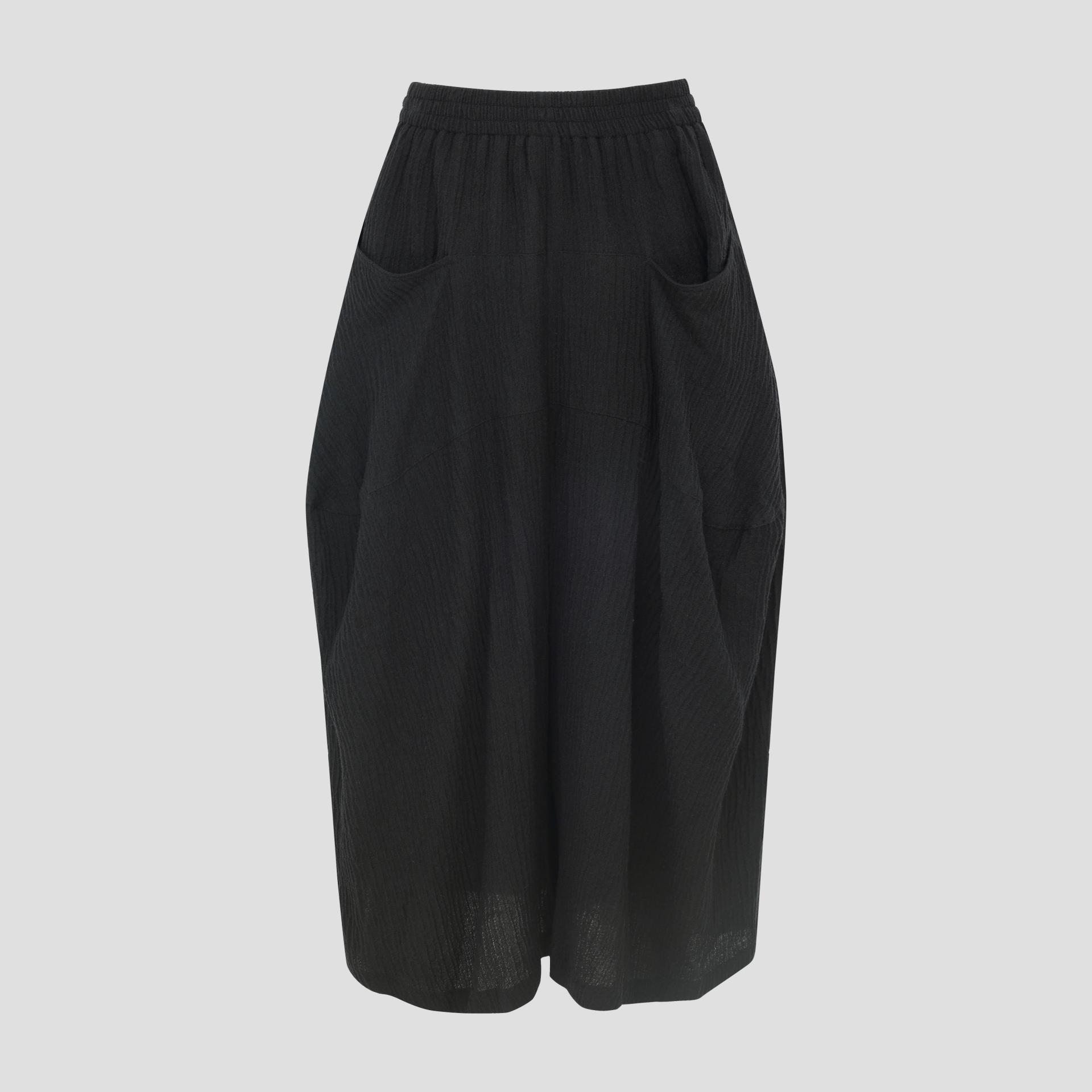 밴딩 소재의 허리로 더욱 편안하게 착용이 가능하고, 주머니 라인부터 멋스럽게 떨어지는 훌이 마치 스커트처럼 보이게도 연출이 가능합니다.