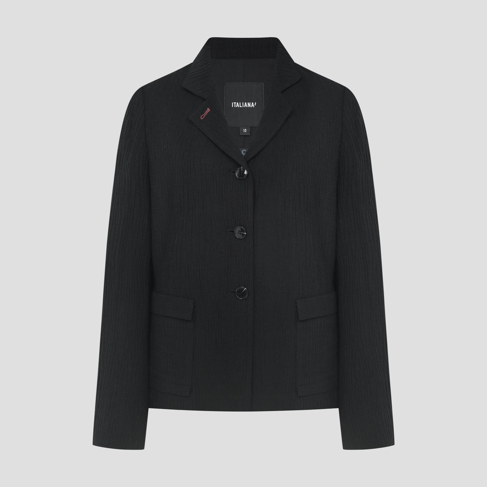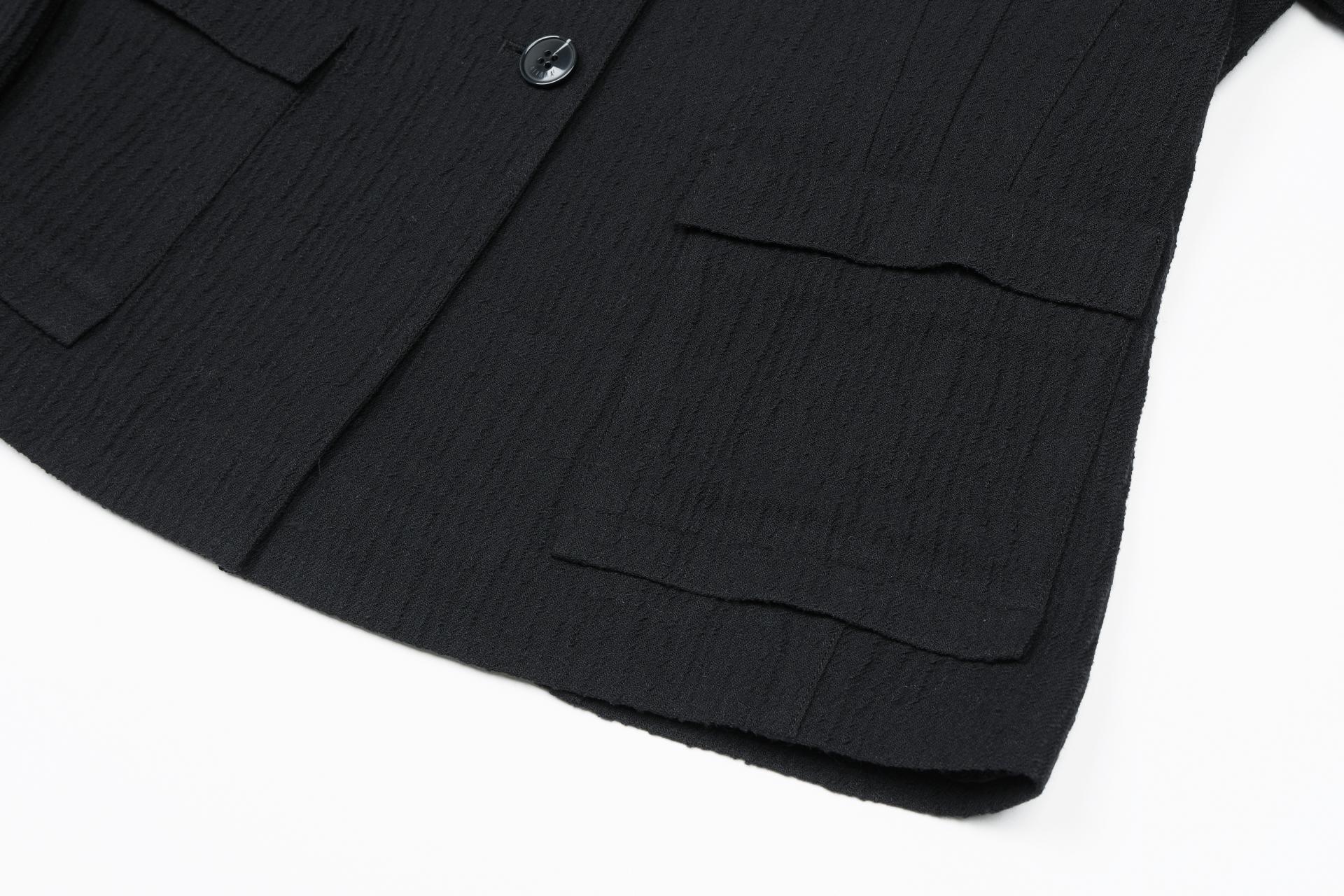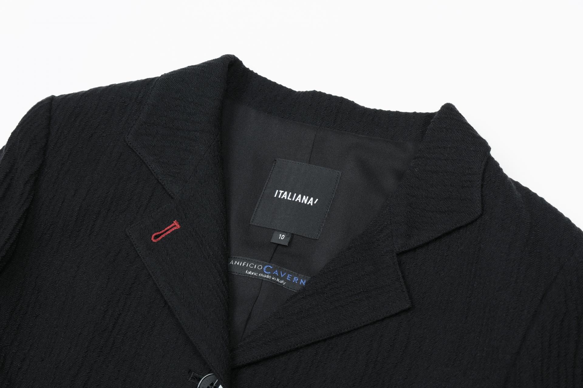 허리의 섬세한 다트 라인과 프린세스 절개 라인으로 슬림하게 핏 되어 허리 실루엣을 강조하는 자켓입니다.