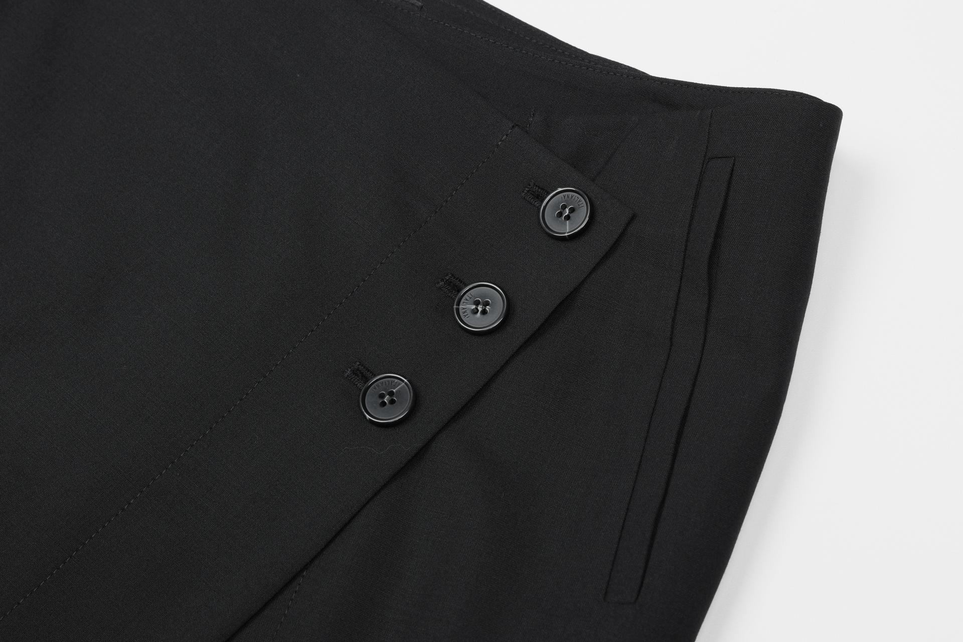 랩 스커트는 탈부착이 가능하며, 기본 실루엣의 슬랙스 단벌로 착용 가능합니다.