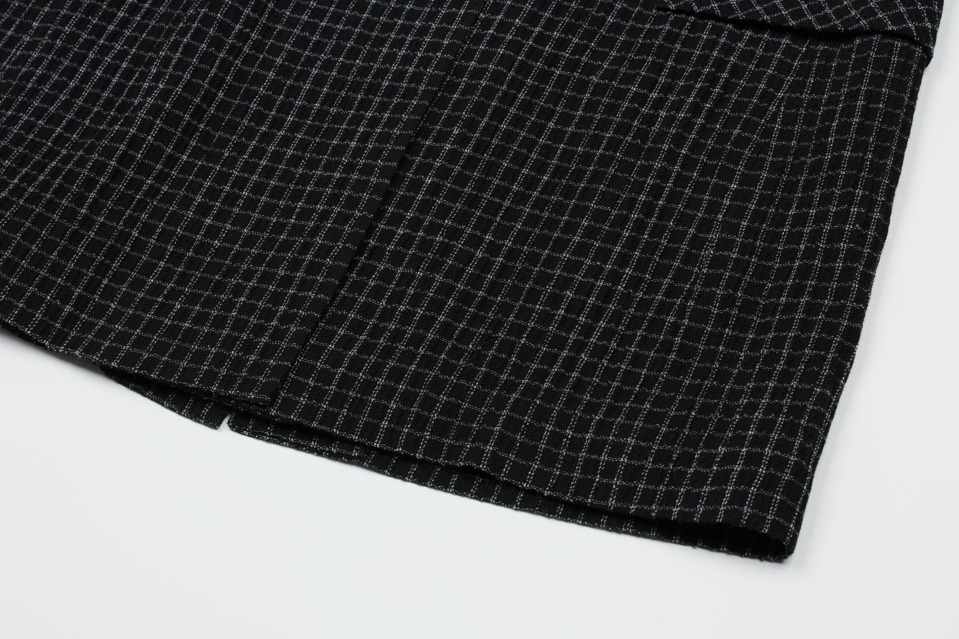 허리 라인은 살짝 핏되고, 밑단은 H라인으로 떨어져 클래식한 실루엣을 보여줍니다.