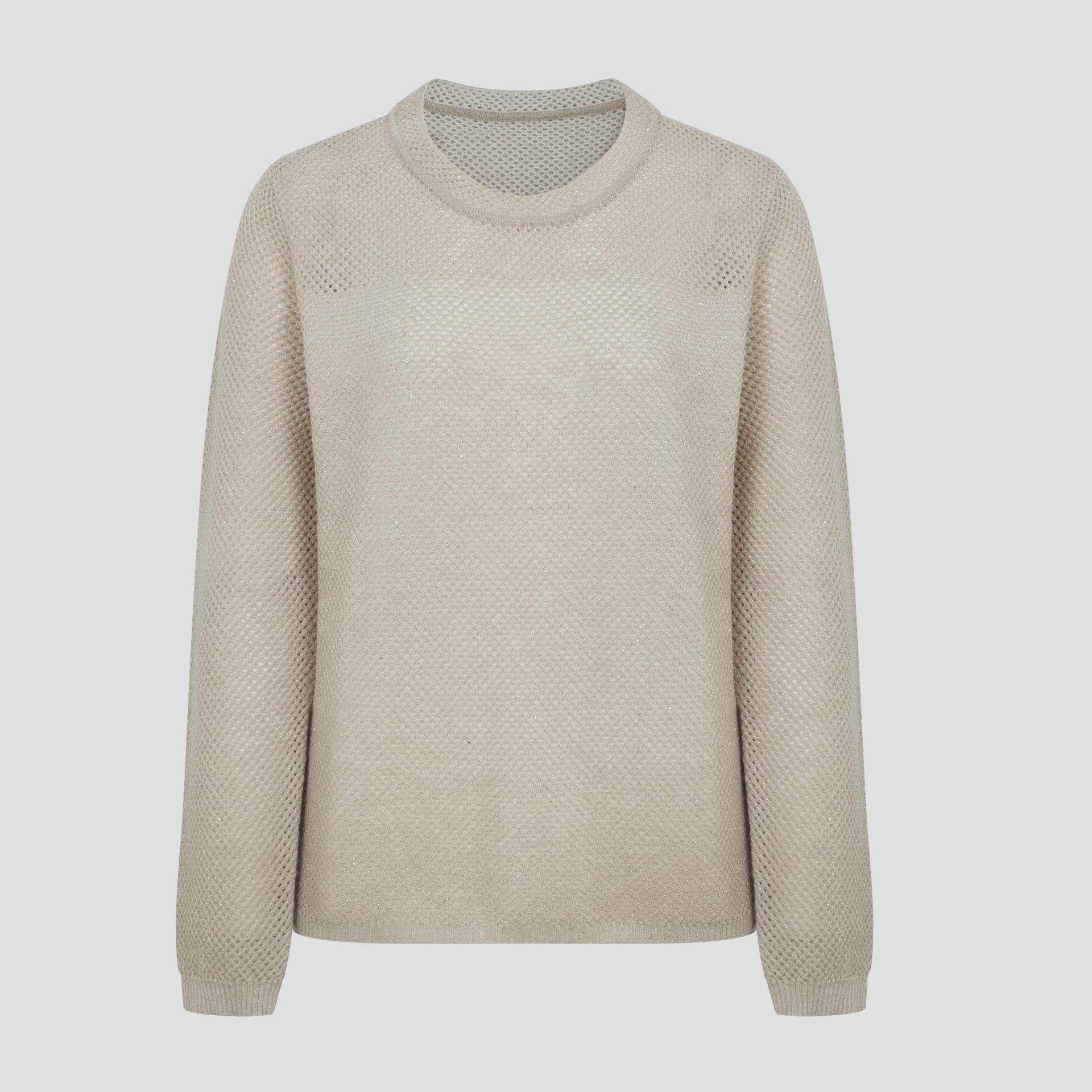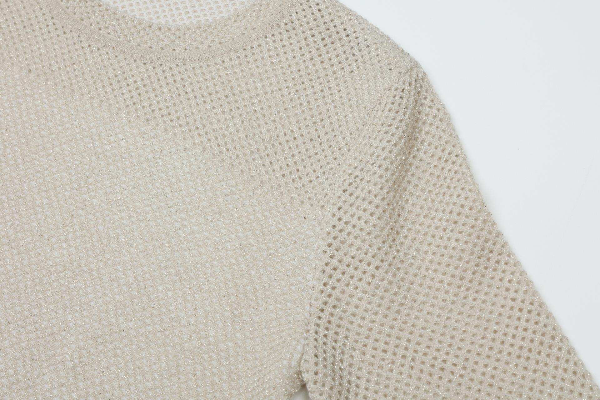 글리터 원사를 믹스해 은은한 반짝임을 더한 니트 풀오버입니다.