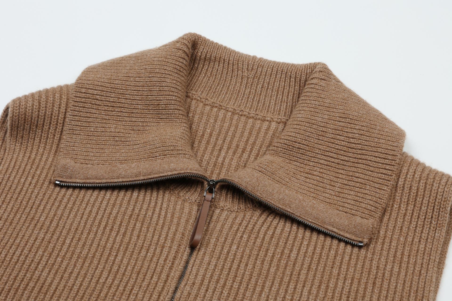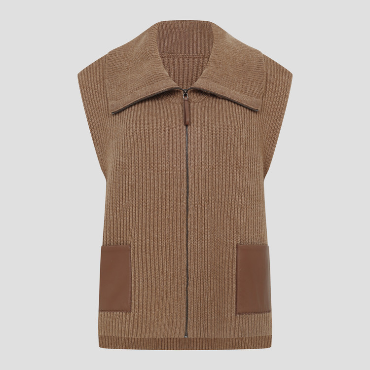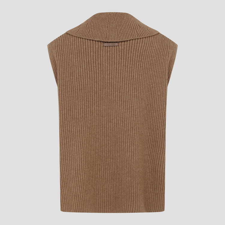 캐시미어/울 혼방의 부드러운 소재로 제작된 베스트입니다.