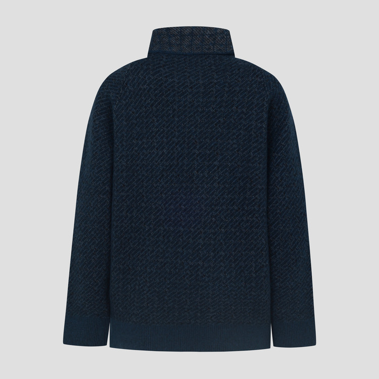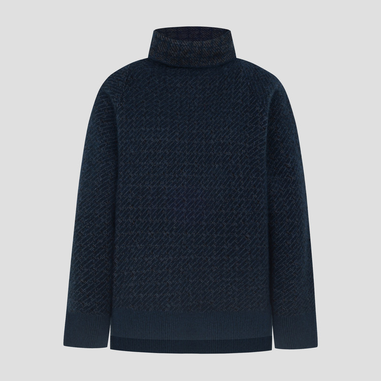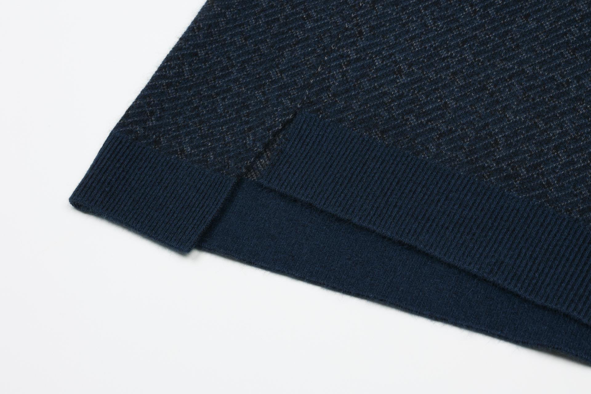 각기 다른 컬러의 3가지 원사가 혼합되어 잔잔한 프린트 효과가 있으며 넥과 밑단의 언발런스 디테일로 유니크한 디자인으로 전개되었습니다.