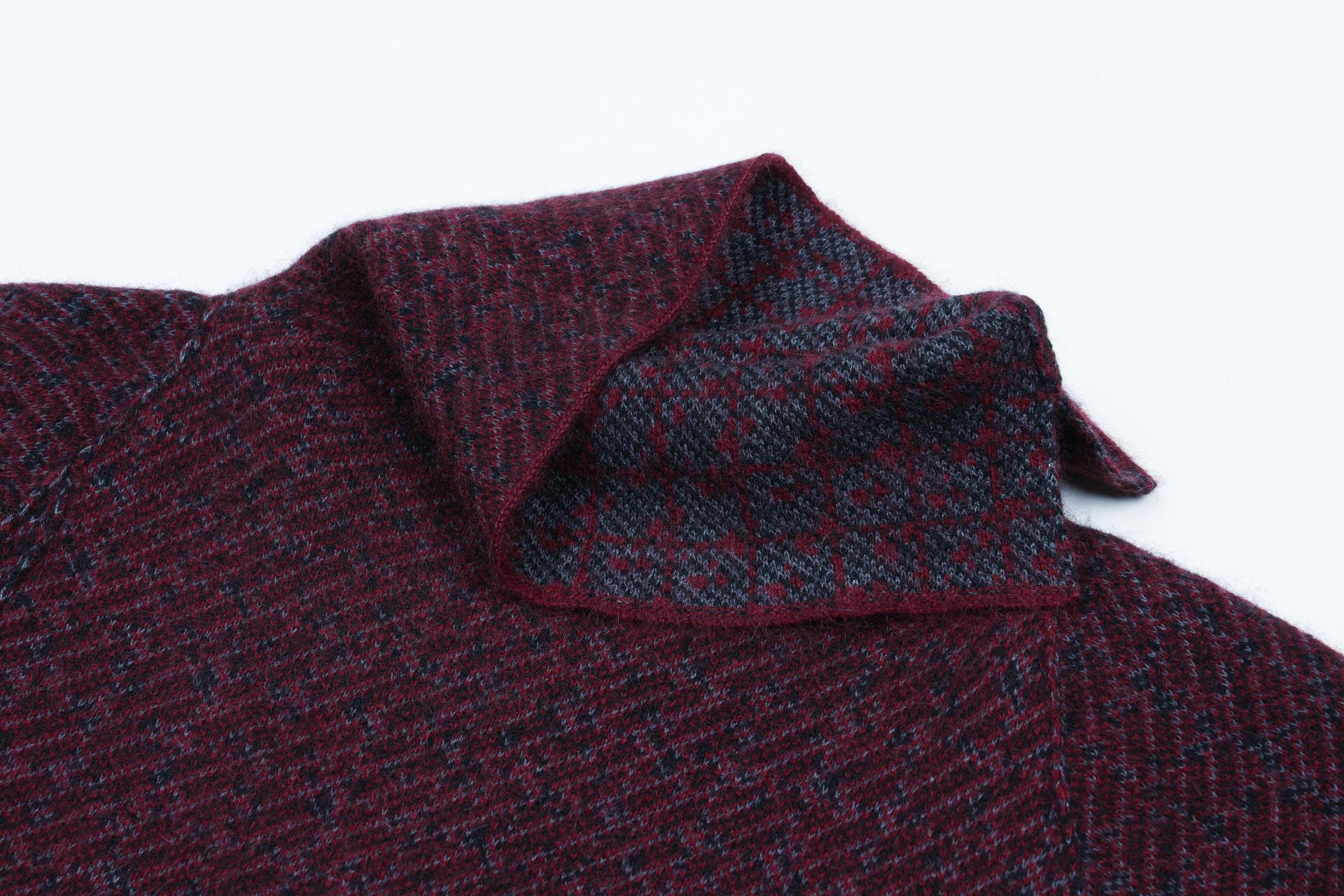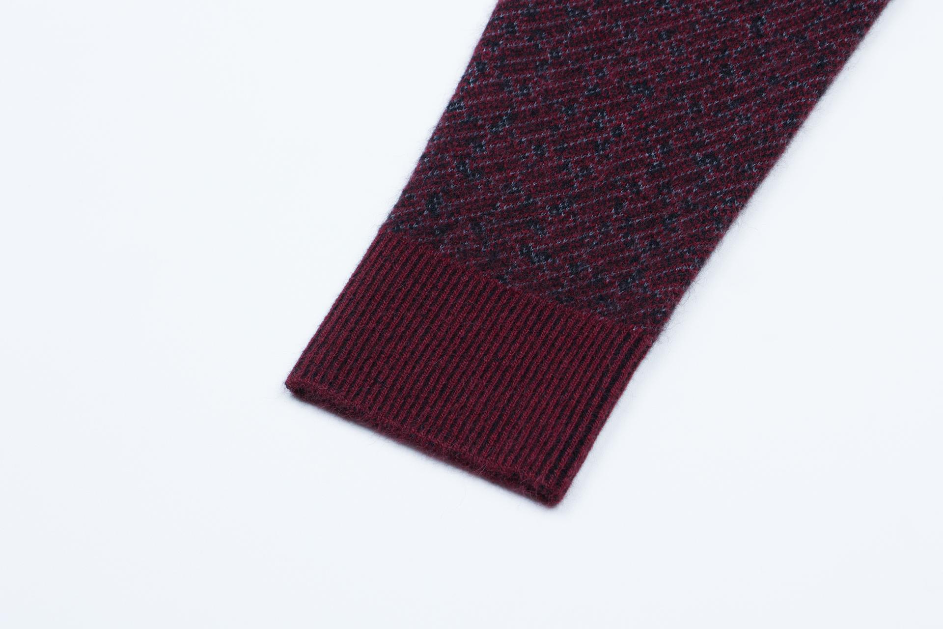 3가지 원사 혼용으로 라쿤과 울 혼용의 자가드 니트 탑 입니다.