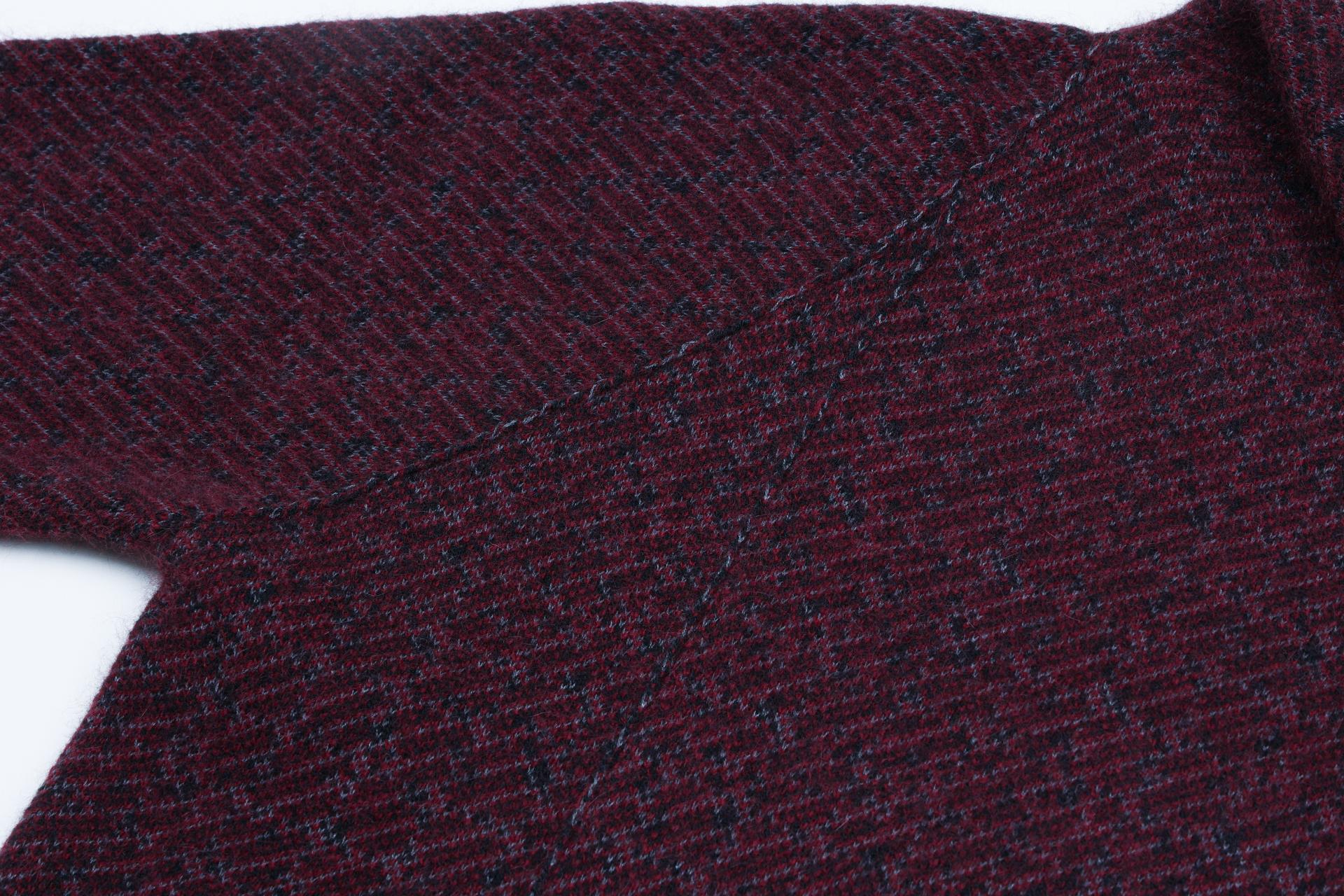 각기 다른 컬러의 3가지 원사가 혼합되어 잔잔한 프린트 효과가 있으며 넥과 밑단의 언발런스 디테일로 유니크한 디자인으로 전개되었습니다.