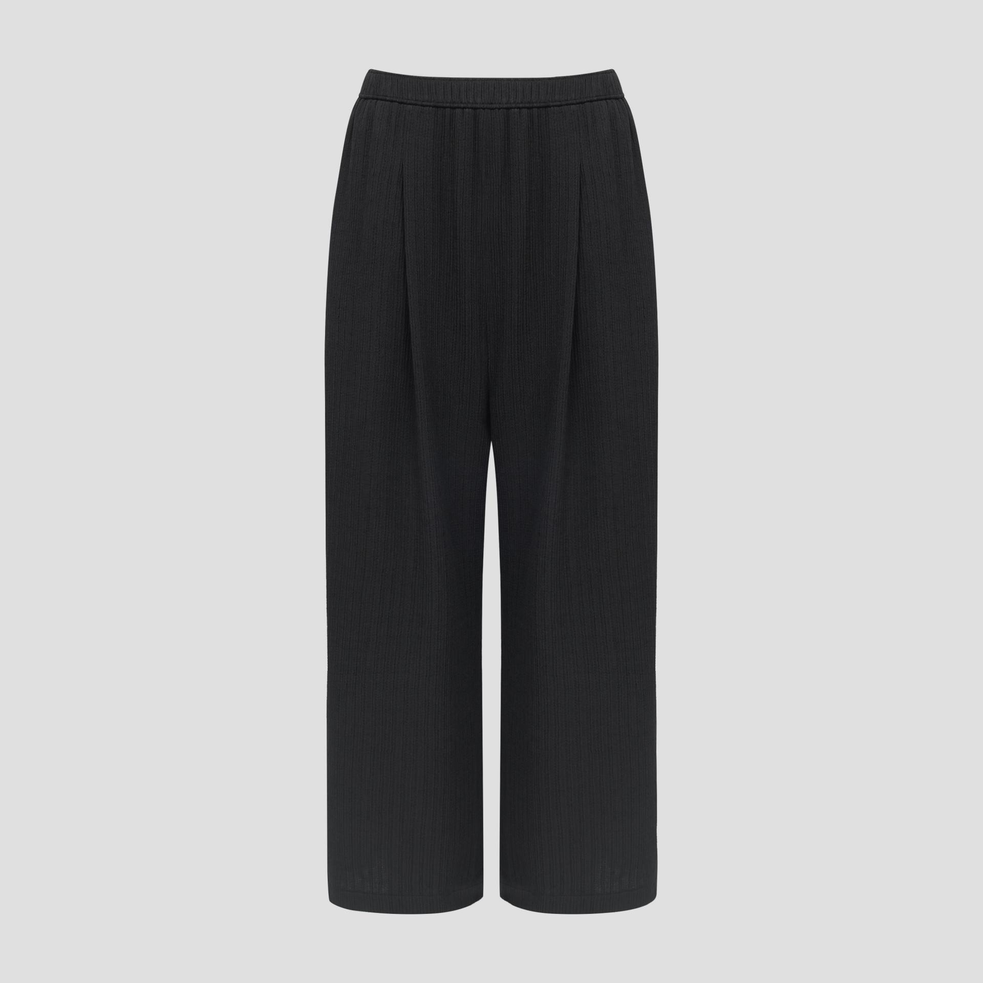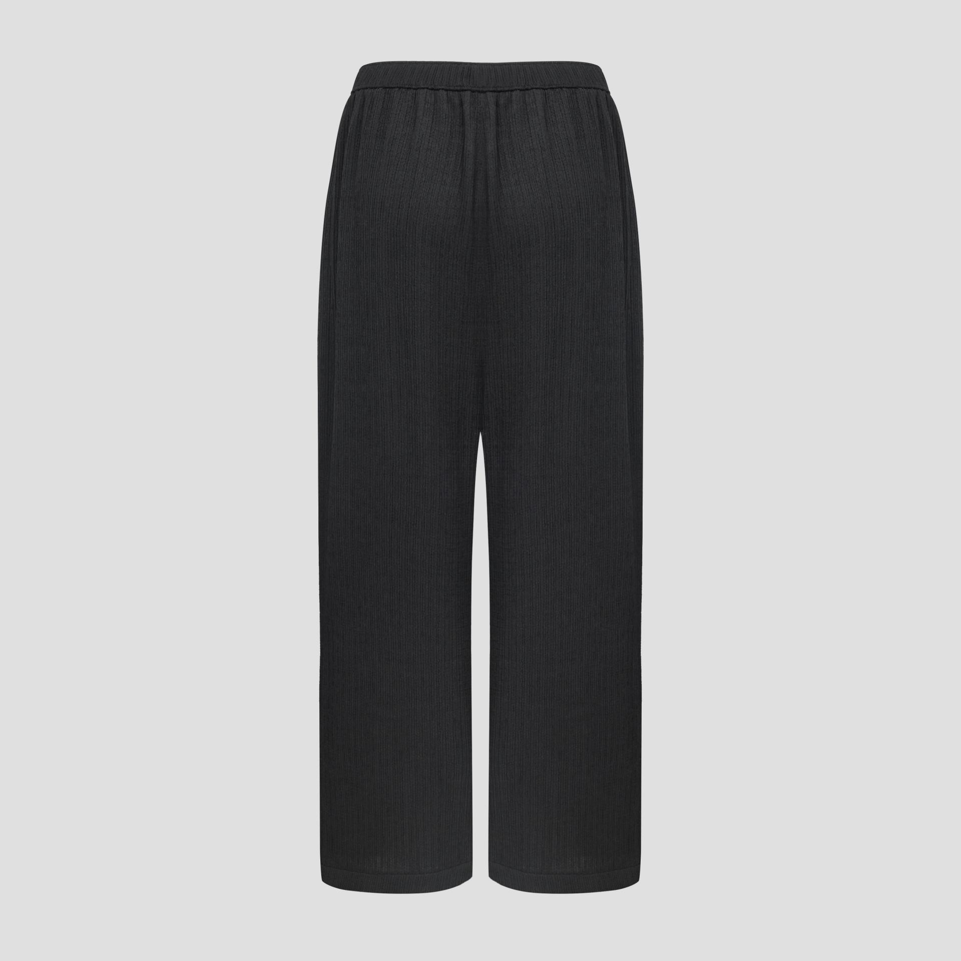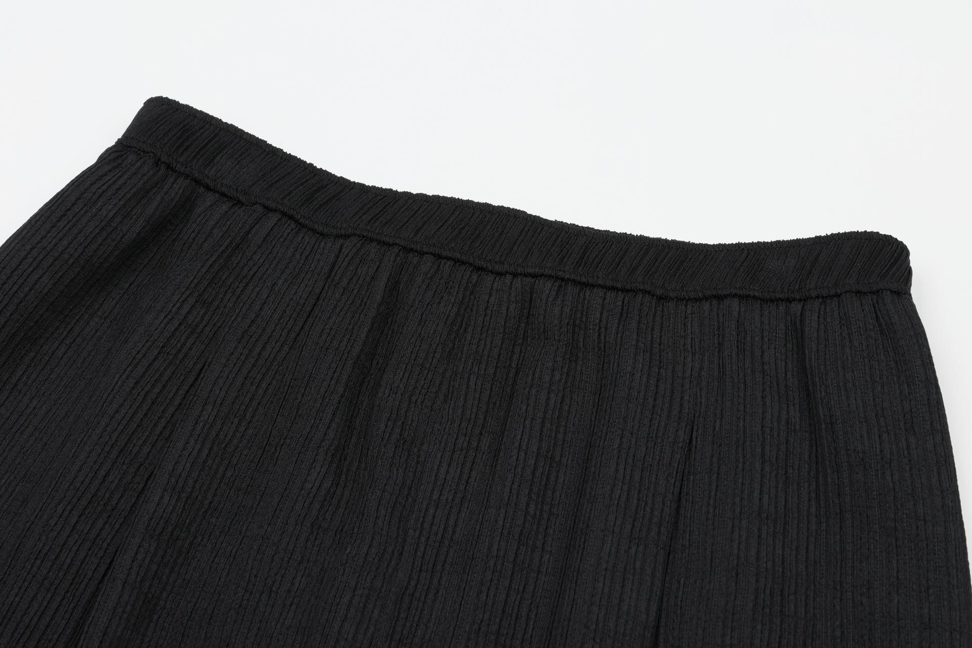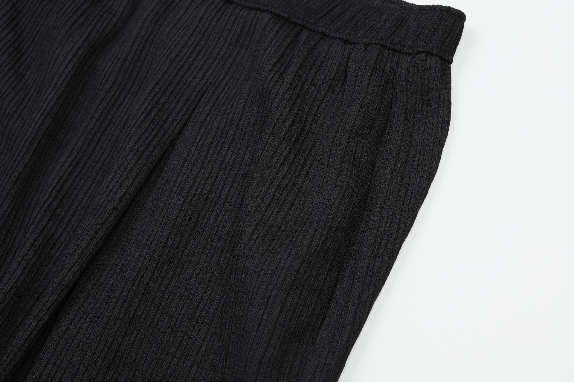 주름 가공이 되어있는 부드러운 폴리 소재로 제작된 팬츠입니다.