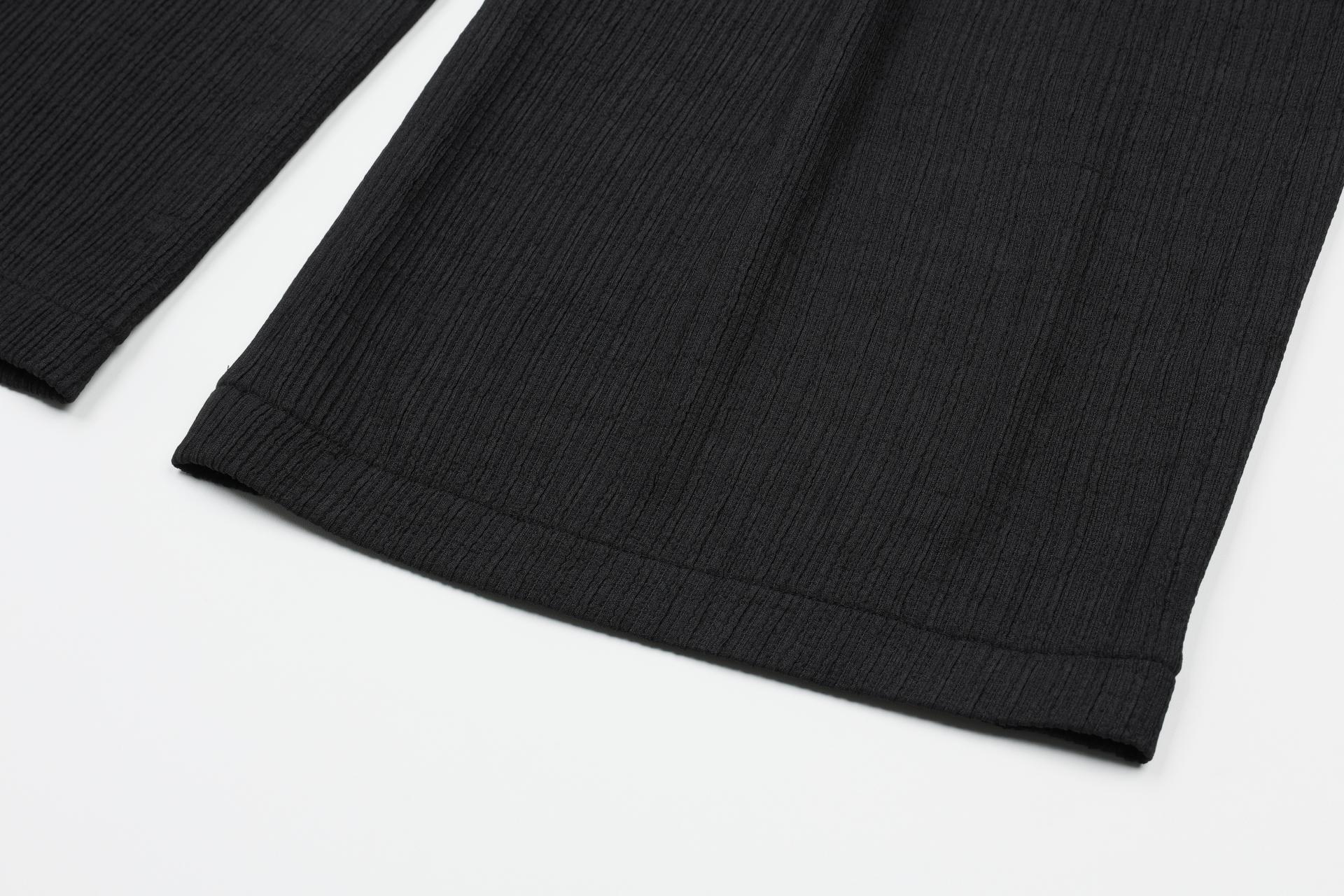 턱 디테일로 허리 라인은 여유로우며 세로 주름 텍스처와 툭 떨어지는 핏으로 슬림한 실루엣을 자아냅니다.