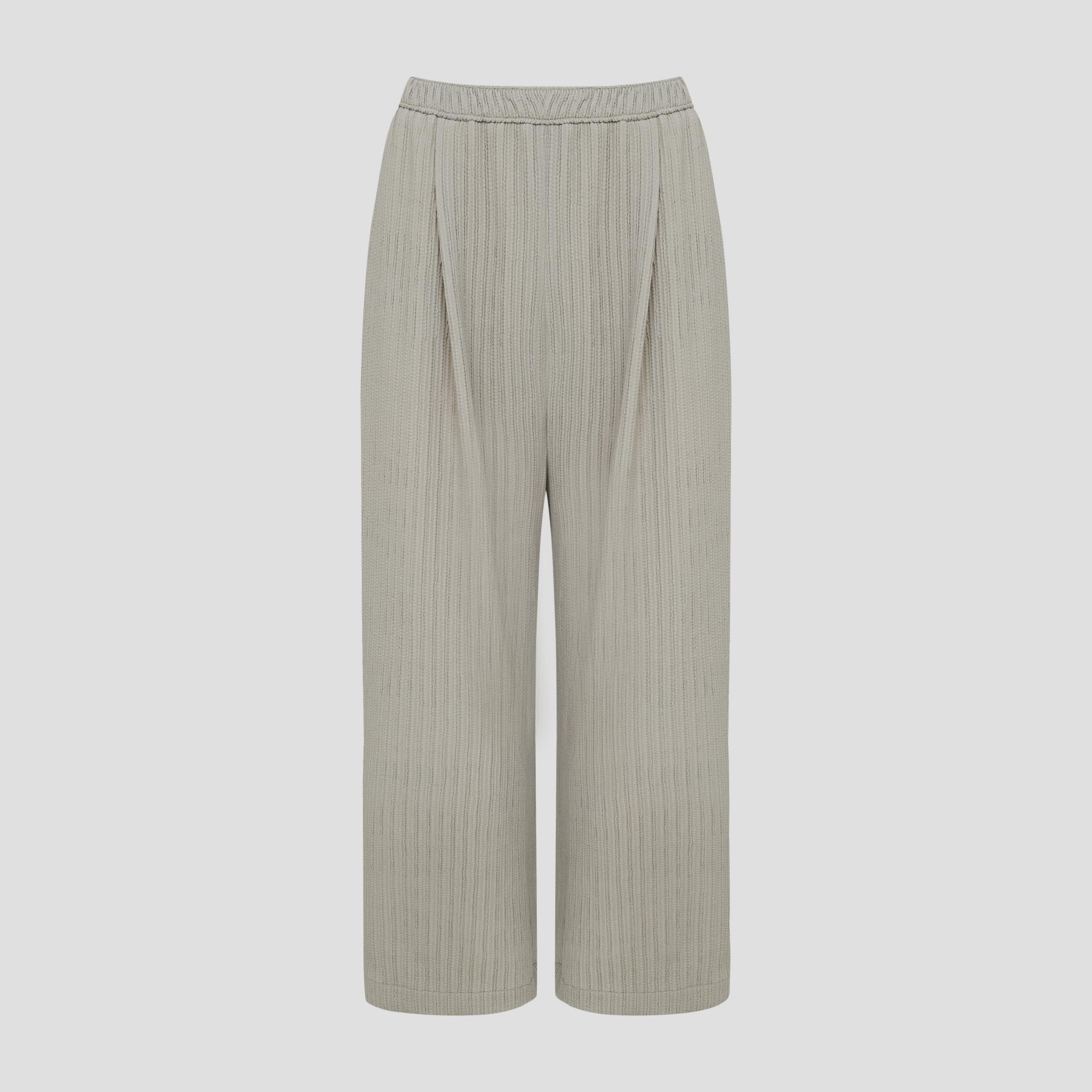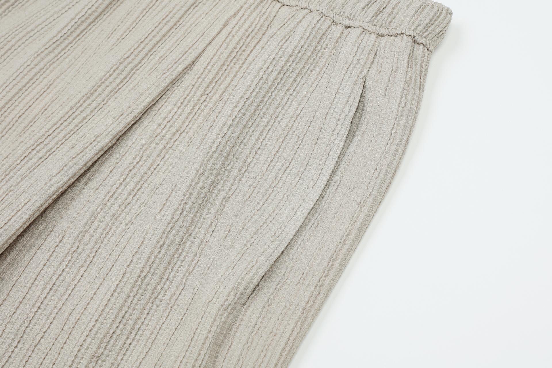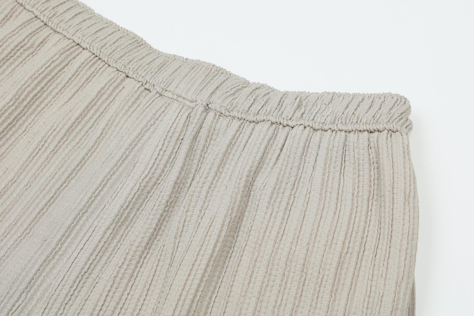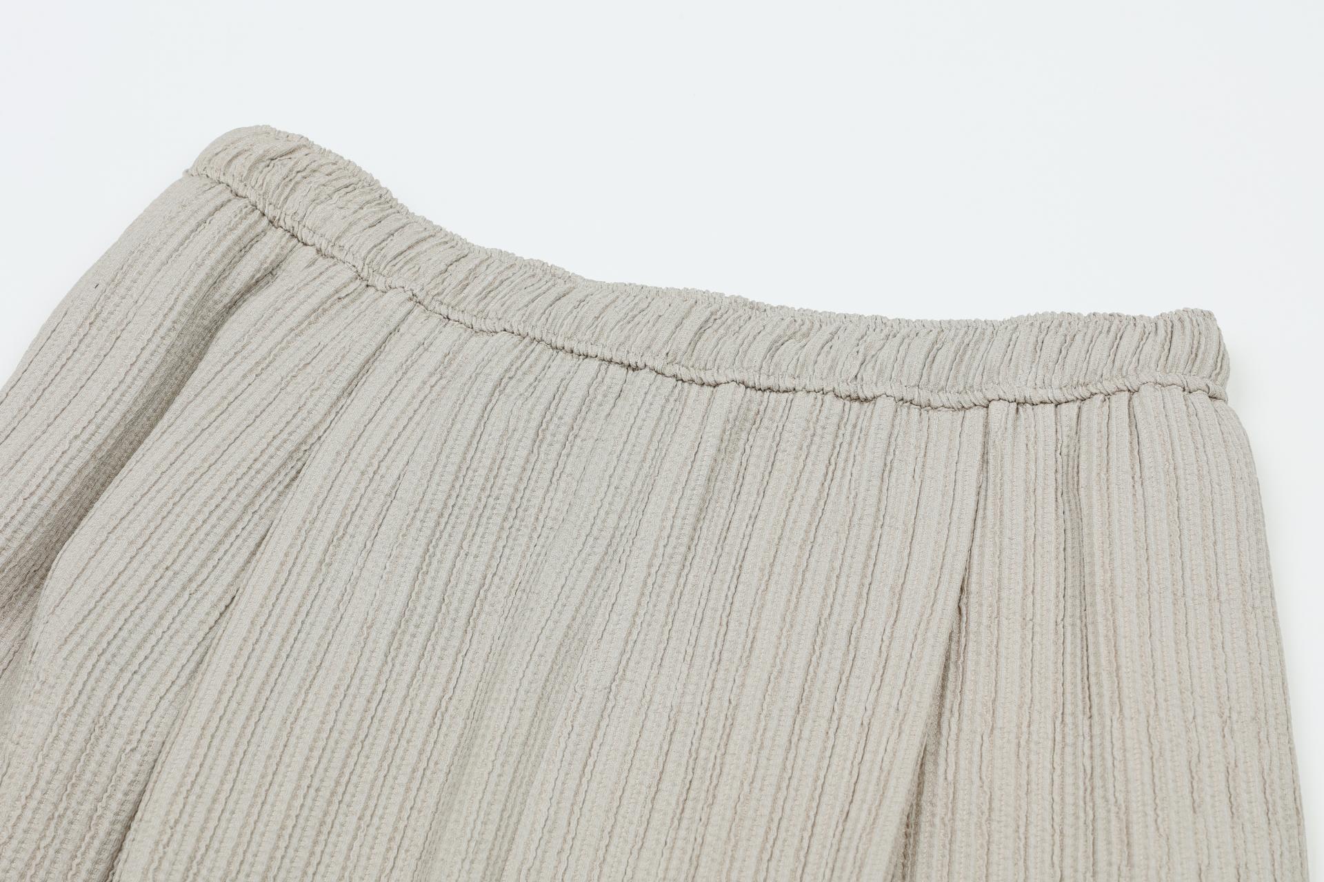 주름 가공이 되어있는 부드러운 폴리 소재로 제작된 팬츠입니다.