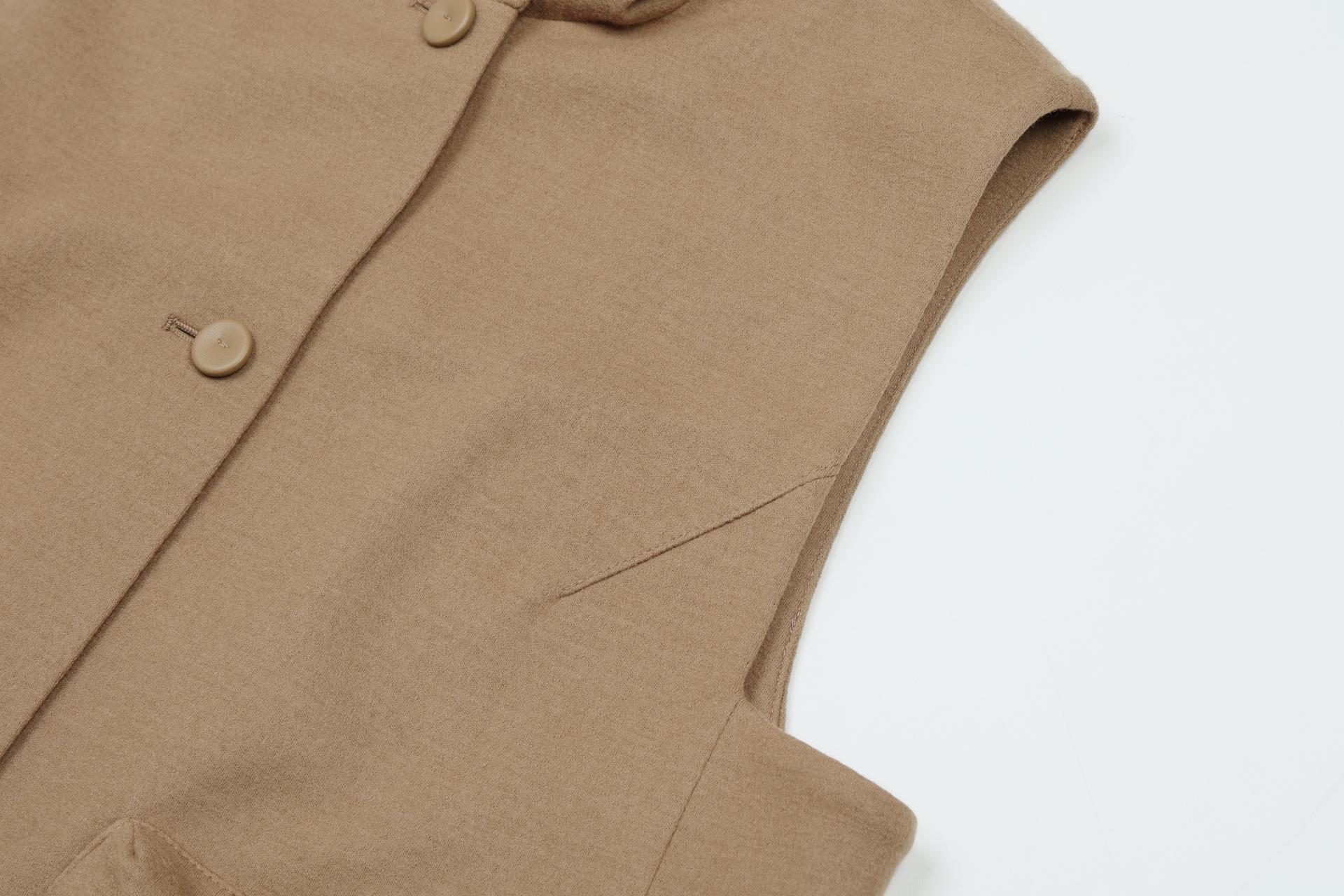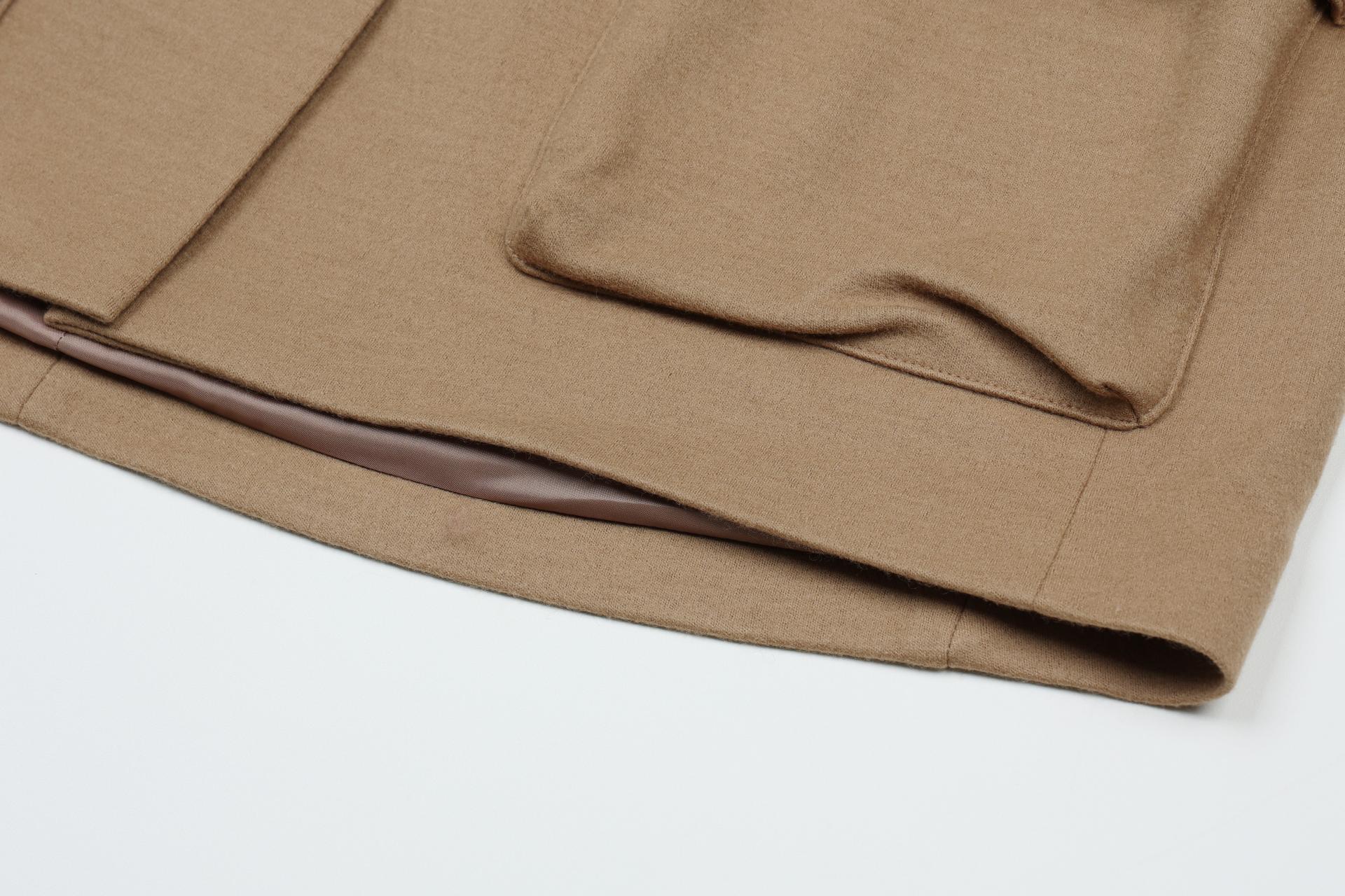 뒷면 하단부로 곡선으로 떨어지는 실루엣 연출을 위해 다트를 추가하고, 가죽 버튼으로 섬세함을 더했습니다.