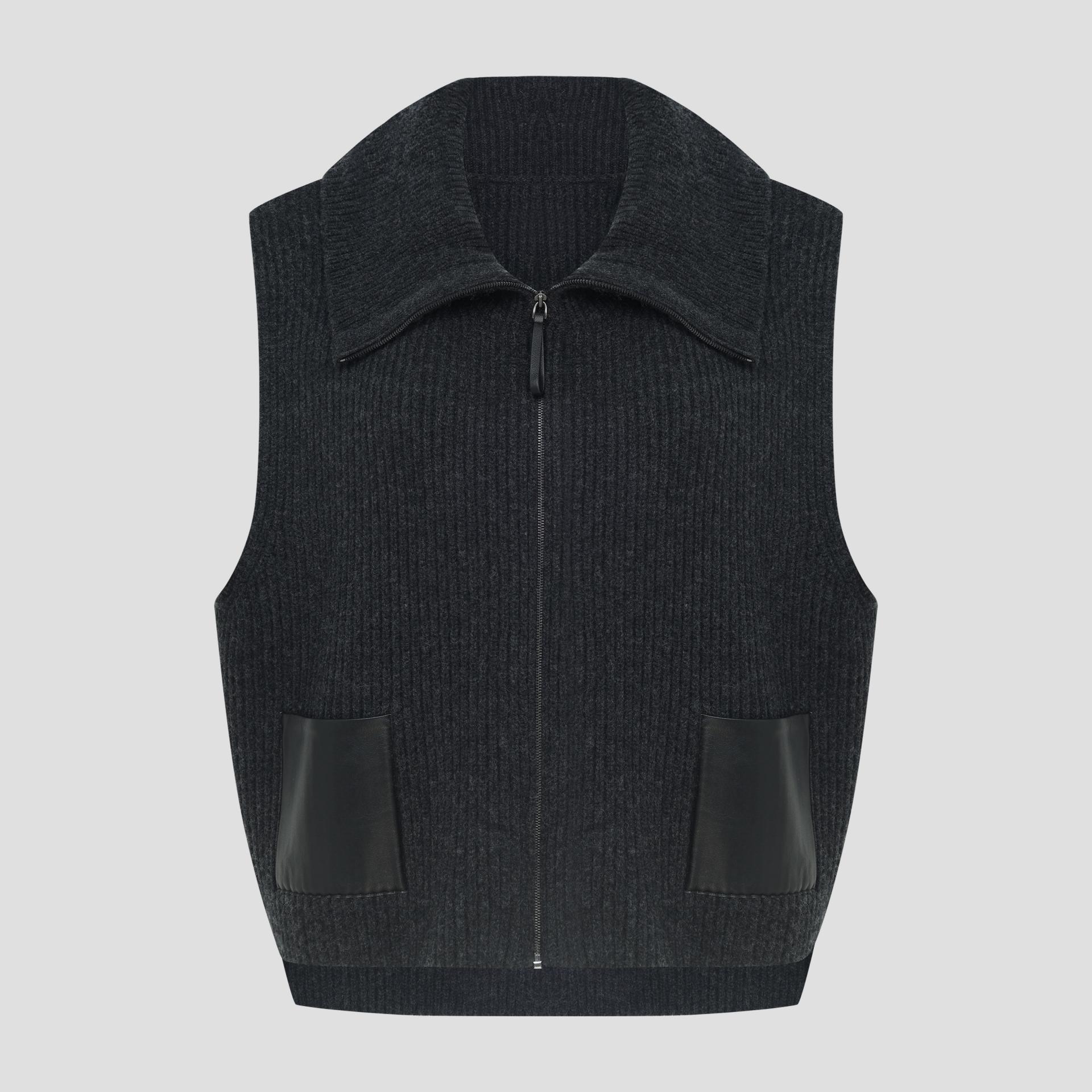 캐시미어/울 혼방의 부드러운 소재로 제작된 베스트입니다.